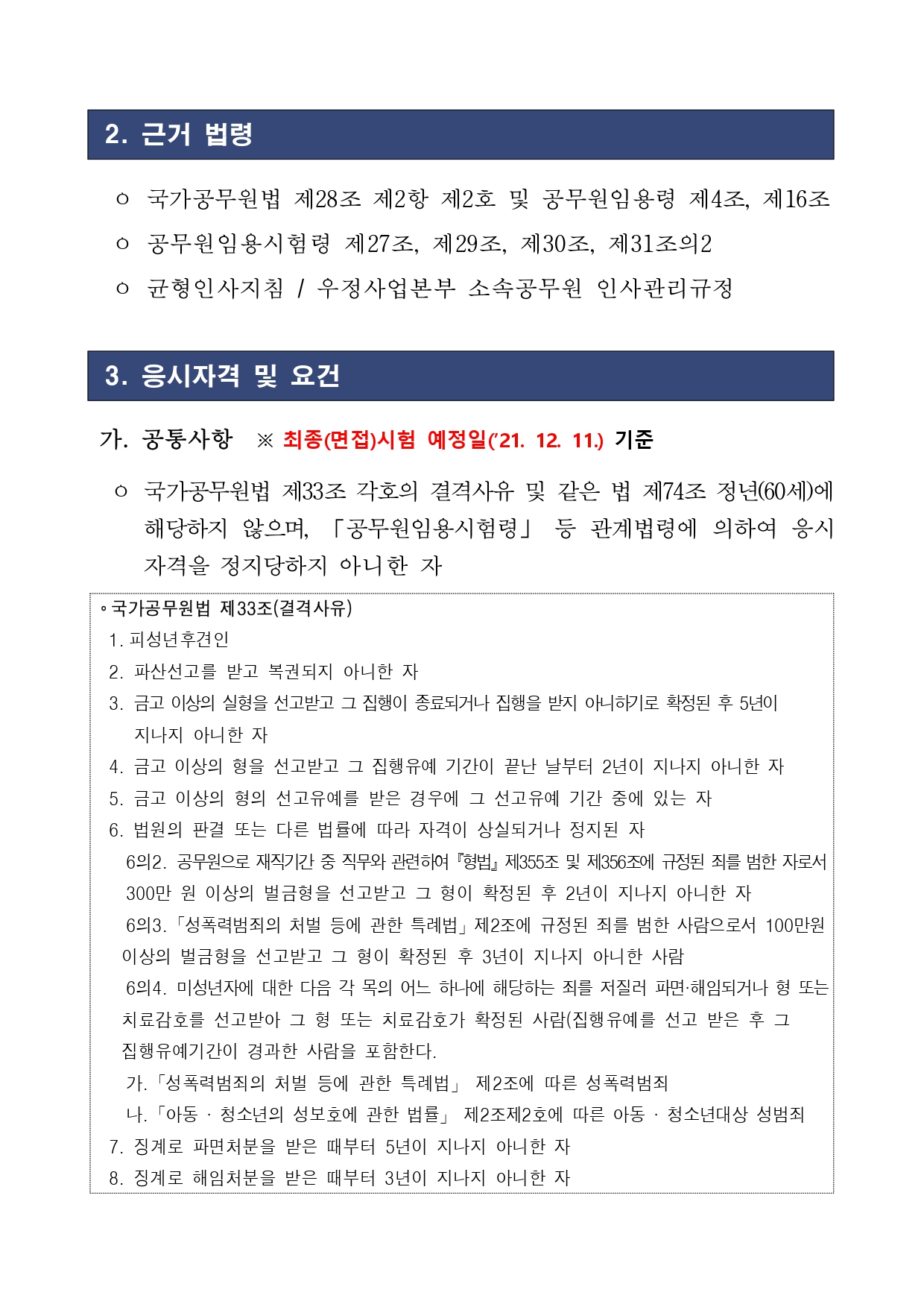 경븍지방우정청에서 시행하는 2021년도 제3회 우정9급(집배)공무원 경력경쟁 채용시험 시행계획을 다음과 같이 공고합니다.
