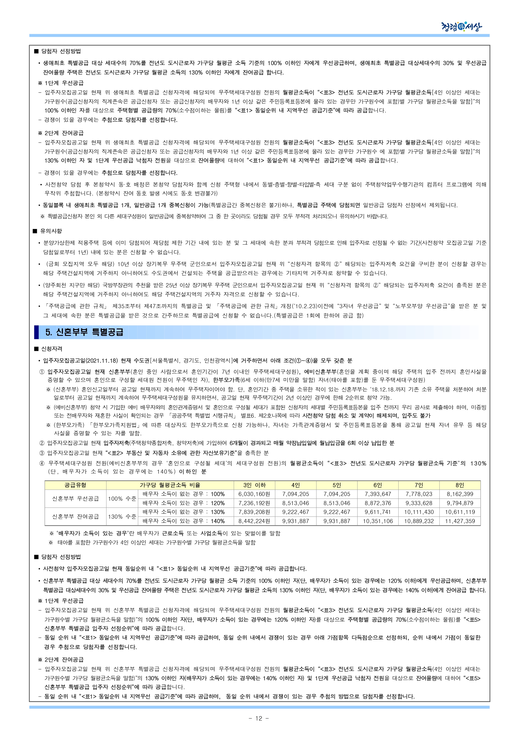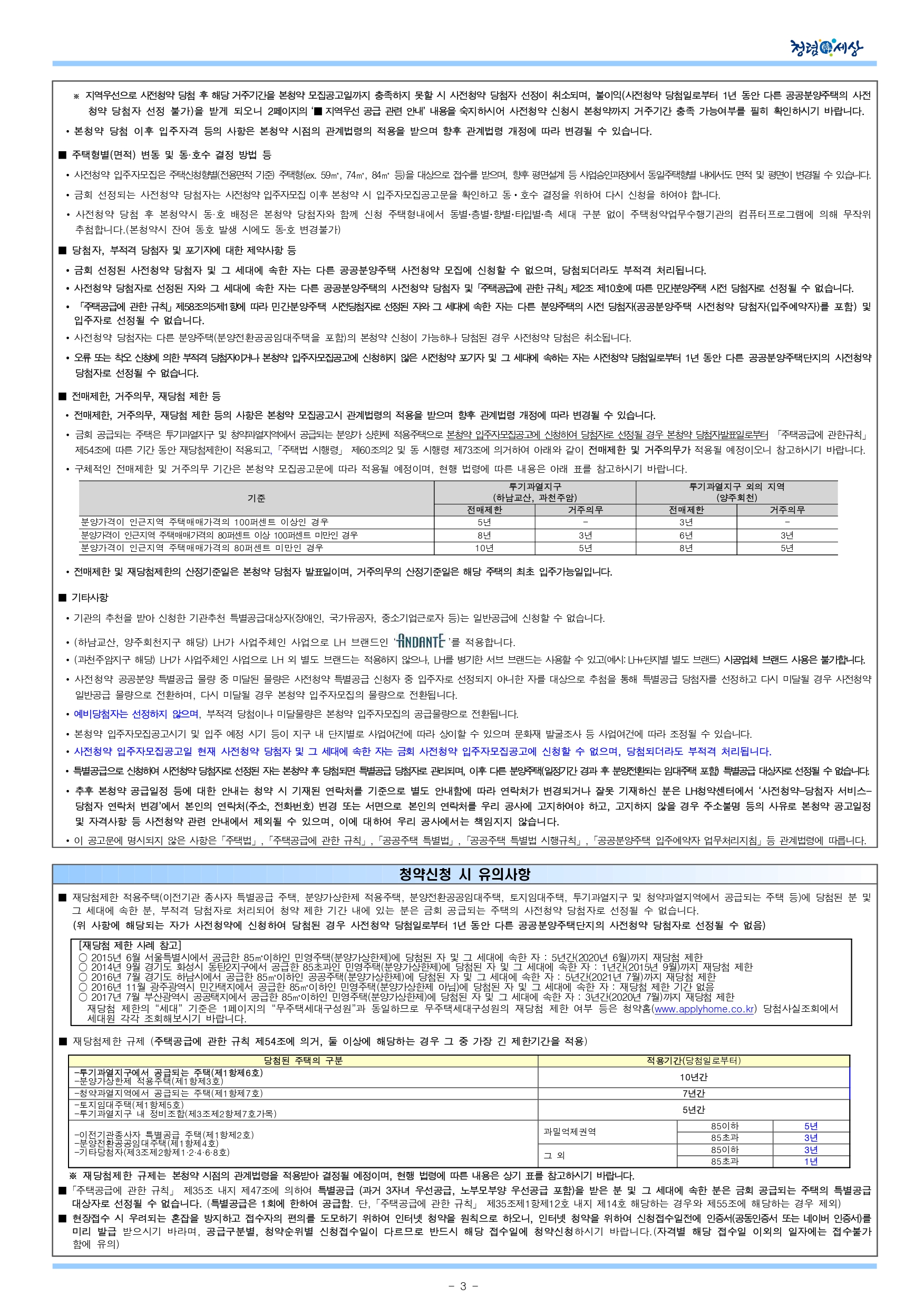 이 공고문은 주택건설사업계획이 확정되지 않은 상태에서 사전청약을 위하여 건설호수, 주택공급면적, 추정분양가격, 세대평면(팸플릿 참조) 등 기본적인 사항을 개략적으로 추정하여 안내 하는 것이므로 본청약 모집공고시 제반 내용이 변경될 수 있음을 충분히 인지하고 신청하시기 바라며, 사업지구 및 단지의 주변 생활여건, 시공관련 사항 등 현재 시점에서 알 수 없거나 확정되지 않은 사항에 대하여 향후 이의를 제기할 수 없습니다.