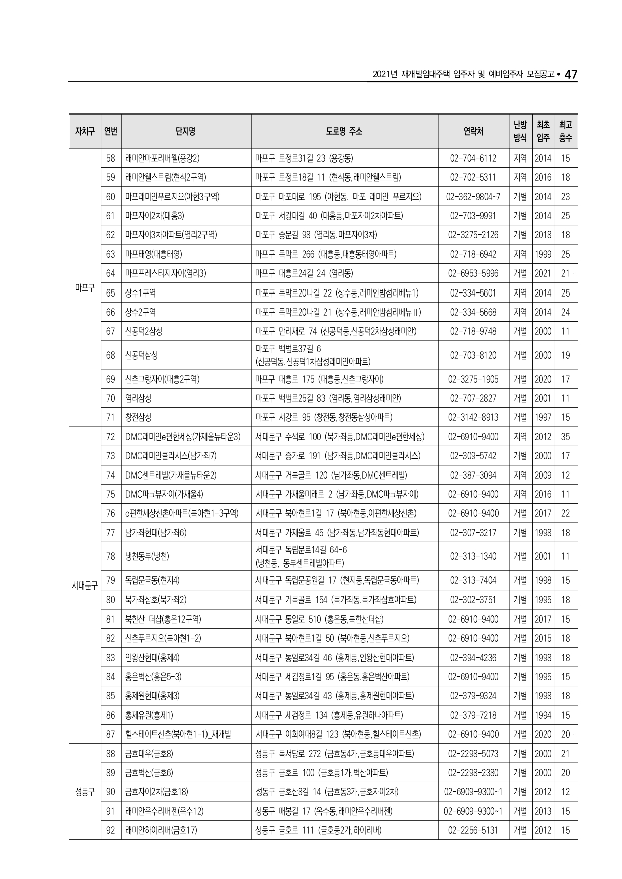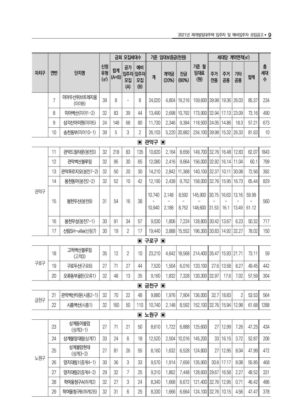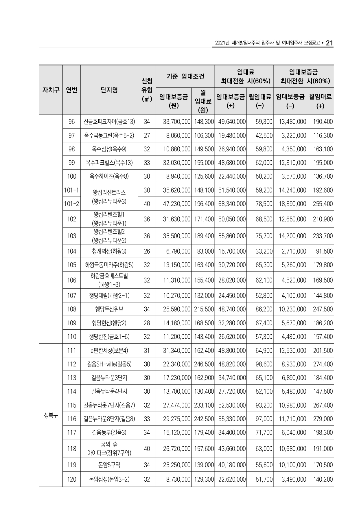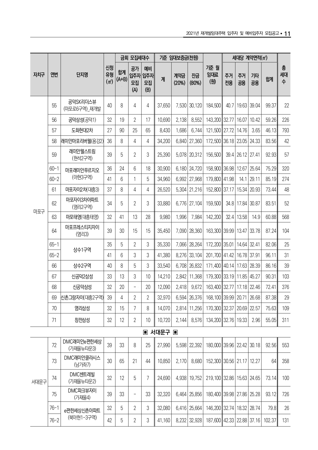 2021년 재개발임대주택 잔여공가 입주자 모집 안내입니다.