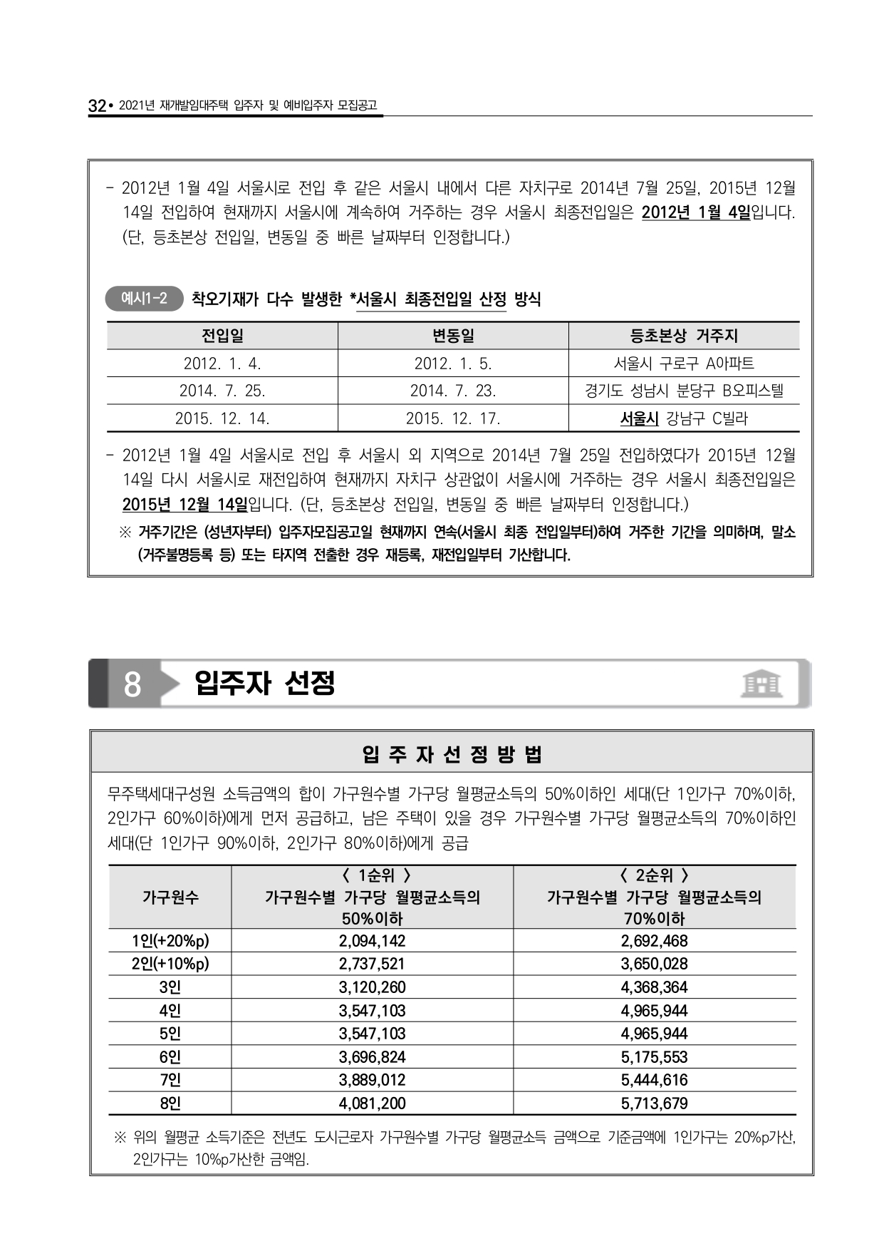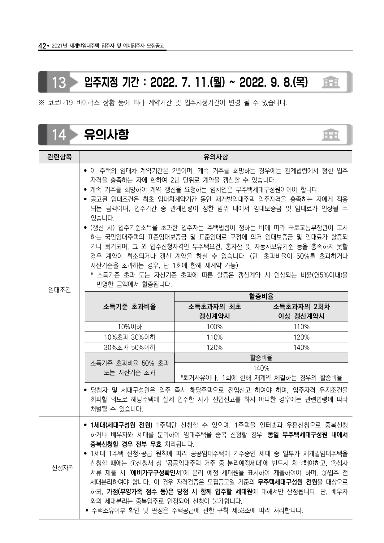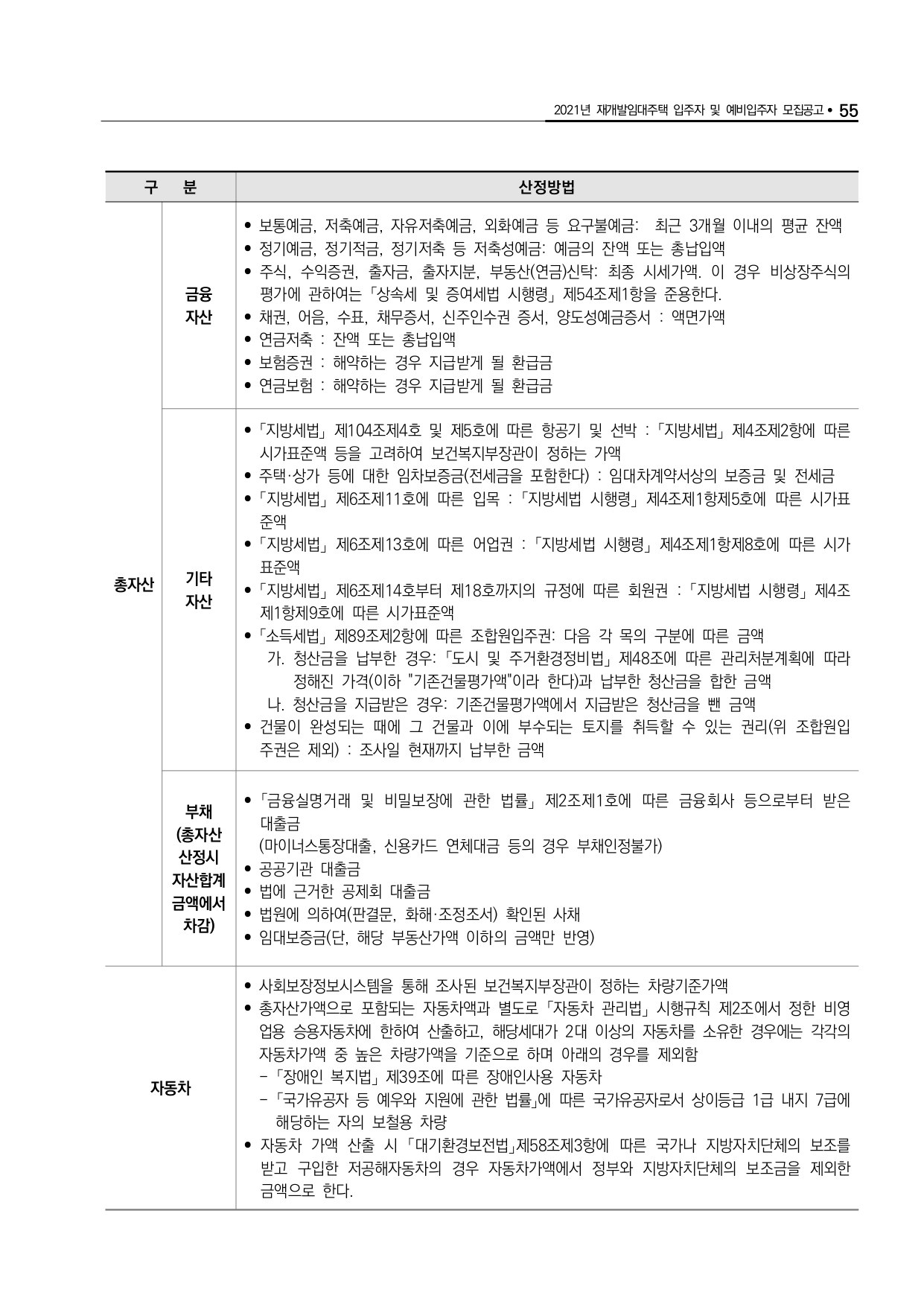 □ 입주자격 중 주택소유여부, 소득, 자동차, 부동산 등의 자격기준 산정 시점은 입주자 모집공고일입니다. 다만, 사업주체가 입주대상자 확정을 목적으로 사회보장정보시스템을 통해 확인한 입주자격은 입주자 모집공고일에 산정된 것으로 간주합니다. 입주자격 조사 결과 부적격 사유에 대한 소명 의무는 신청자에게 있습니다.