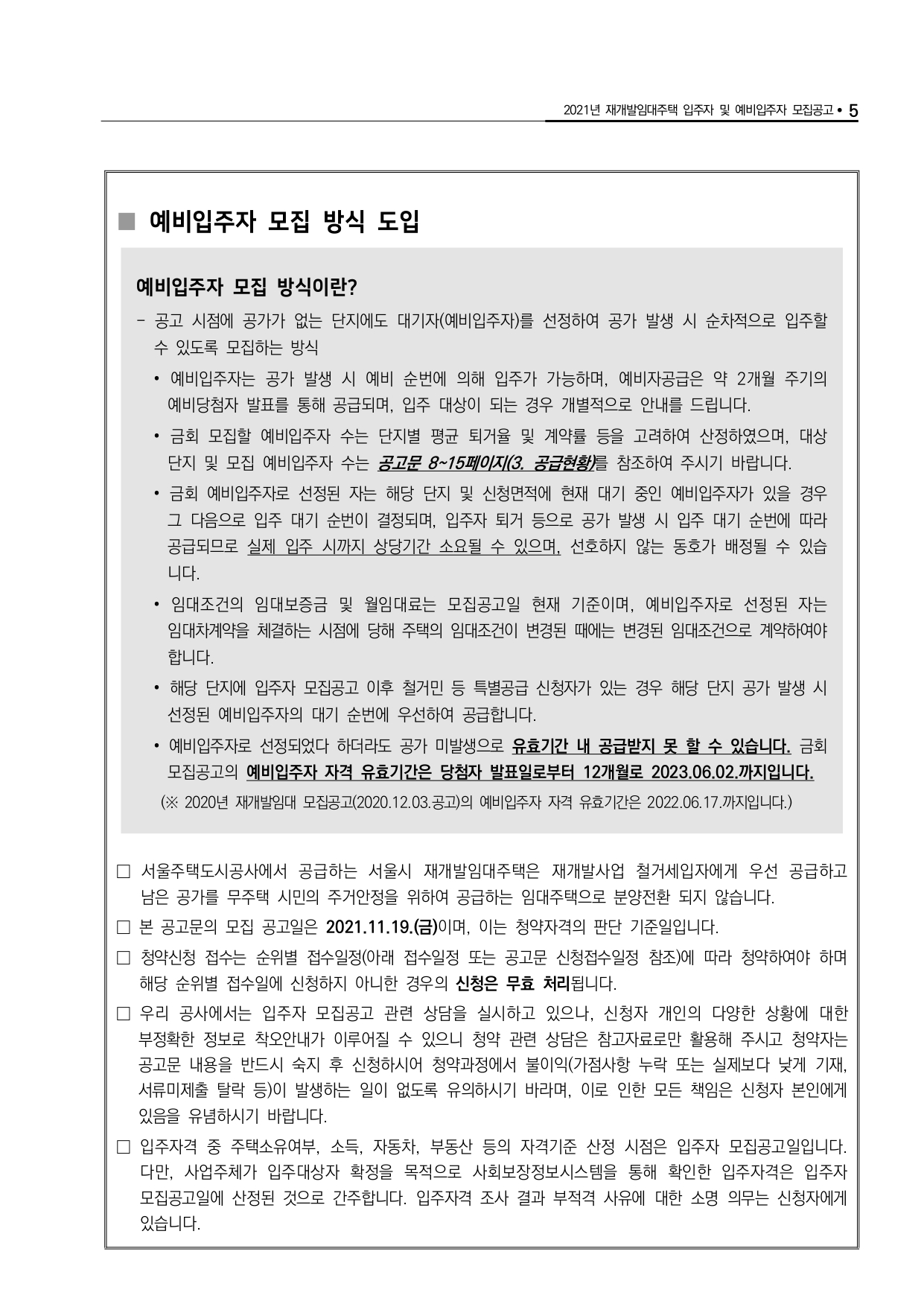 □ 본 공고문의 모집 공고일은 2021.11.19.(금)이며, 이는 청약자격의 판단 기준일입니다.