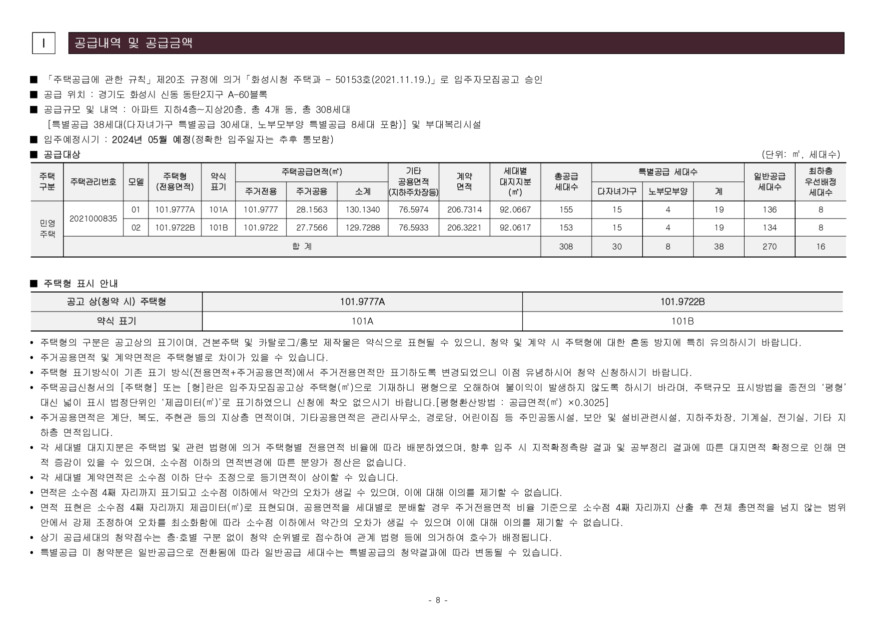 ■ 본 아파트의 최초 입주자모집공고일은 2021.11.24.(수)입니다.(청약자격조건의 기간, 나이, 지역우선, 세대구성원, 무주택기간 등의 청약자격조건 판단기준일입니다.)