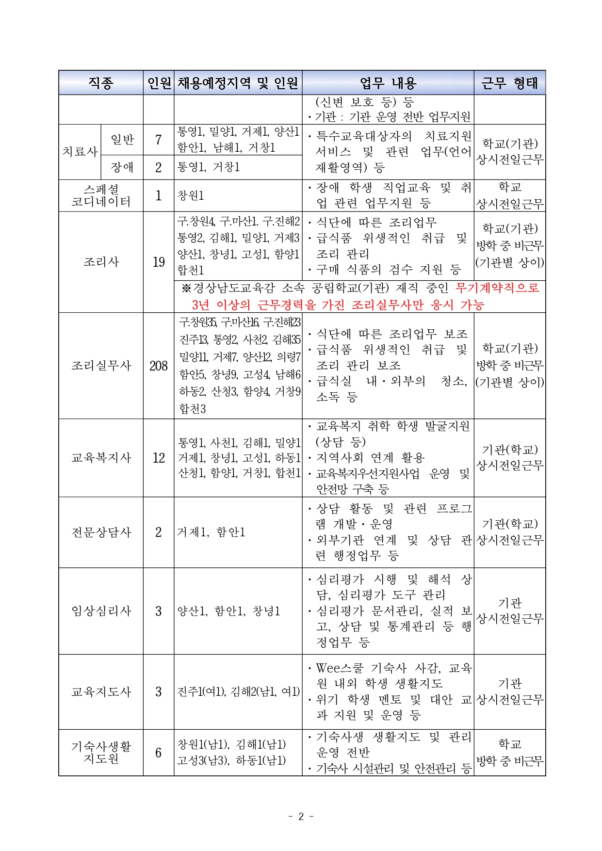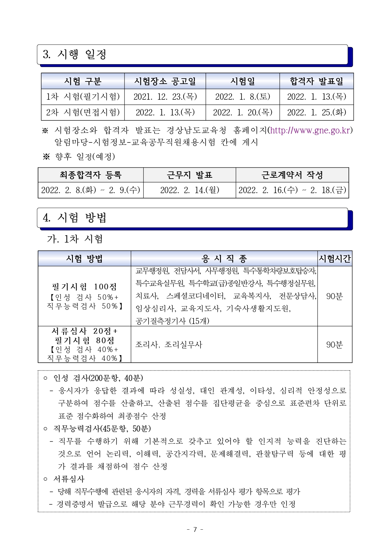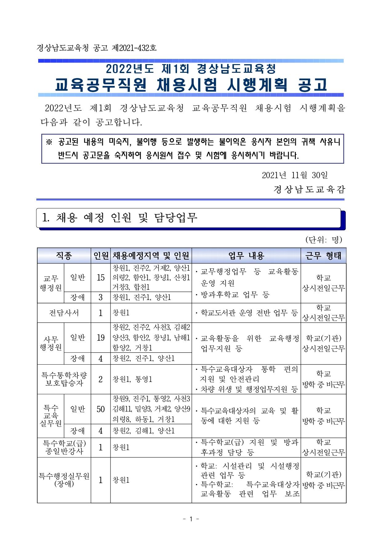 2022 1 년도 제 회 경상남도교육청교육공무직원 채용시험 시행계획 공고입니다.