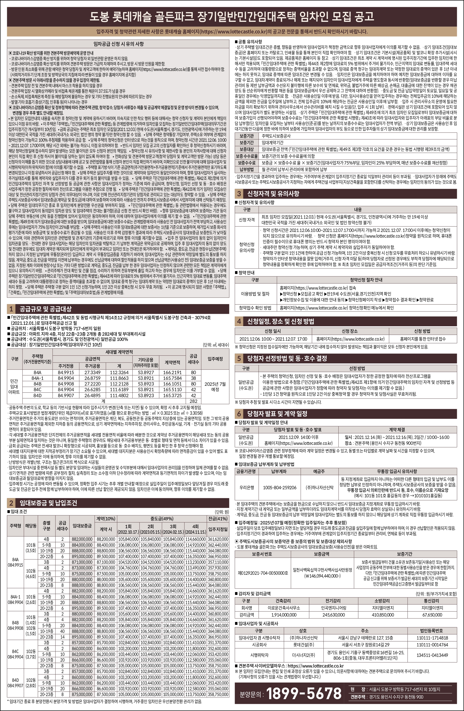 도봉 롯데캐슬 골든파크 장기일반민간임대주택 임차인 모집 공고입니다.