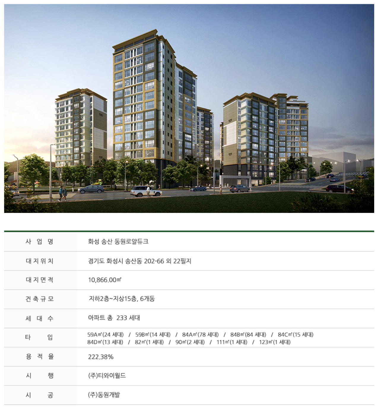 <화성 송산 동원로얄듀크 파크 입주자 모집공고>
