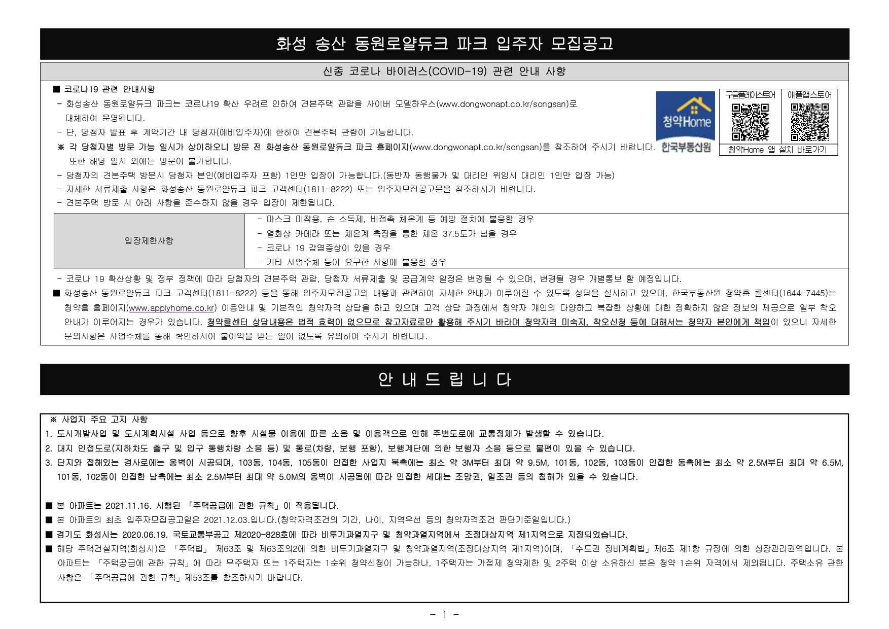 - 본 아파트는 2021.11.16. 시행된 「주택공급에 관한 규칙」이 적용됩니다.