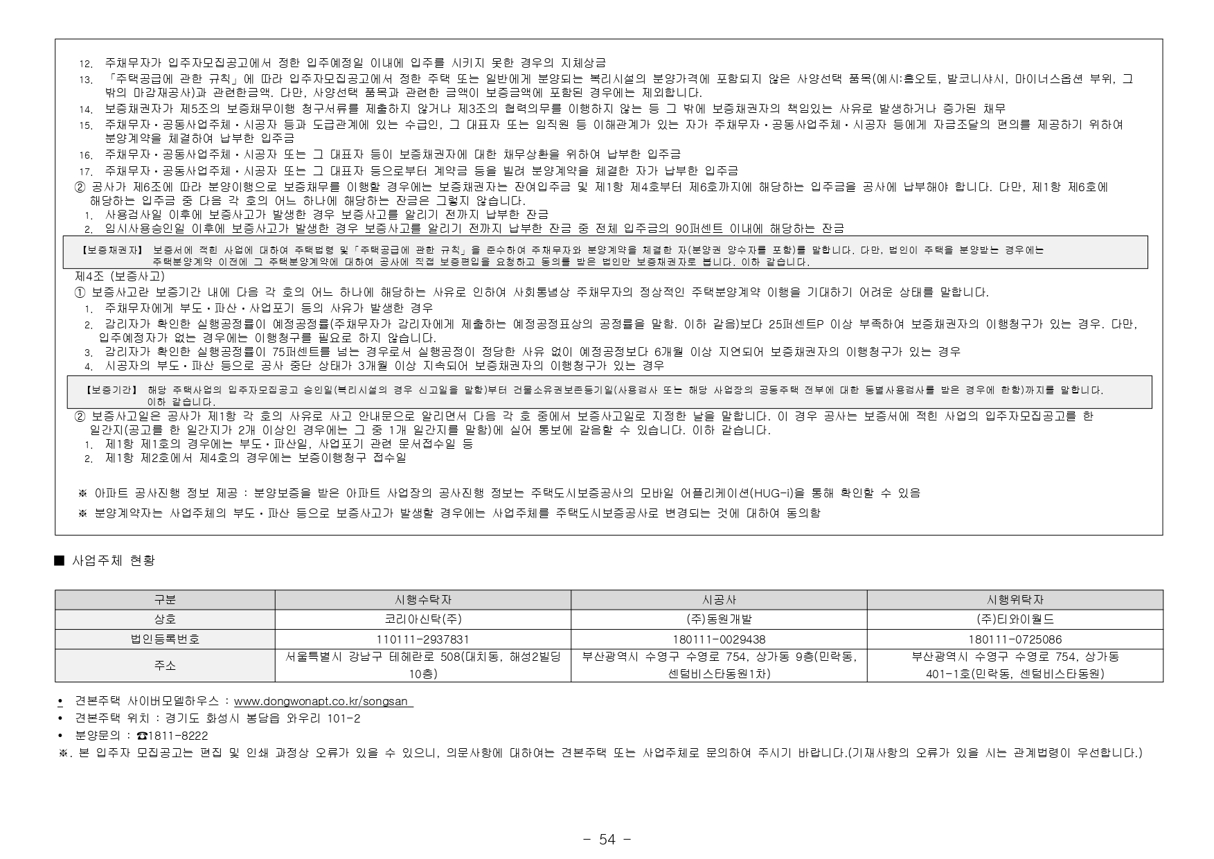 <화성 송산 동원로얄듀크 파크 입주자 모집공고>