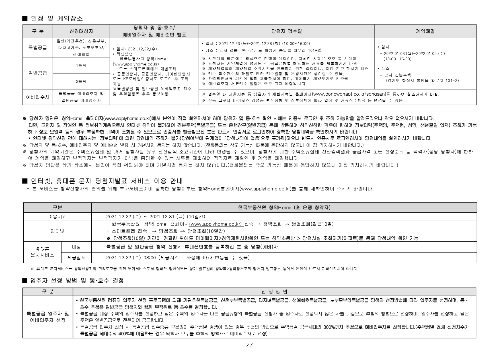 - 본 아파트의 최초 입주자모집공고일은 2021.12.03.입니다.(청약자격조건의 기간, 나이, 지역우선 등의 청약자격조건 판단기준일입니다.)