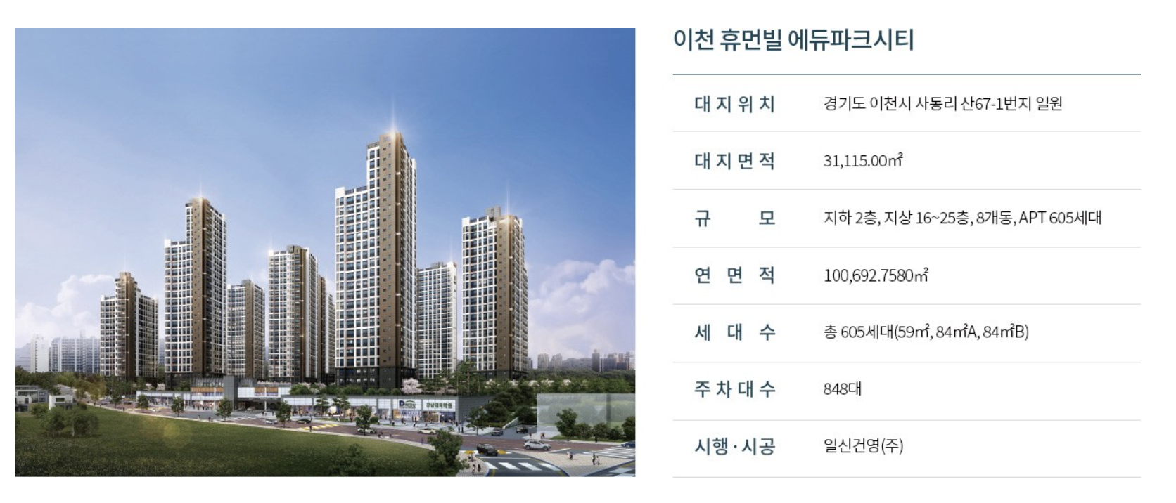 이천 휴먼빌 에듀파크시티는 경기도 이천시 사동리 일원에 지하 2층, 지상 25층 규모로 건설됩니다.