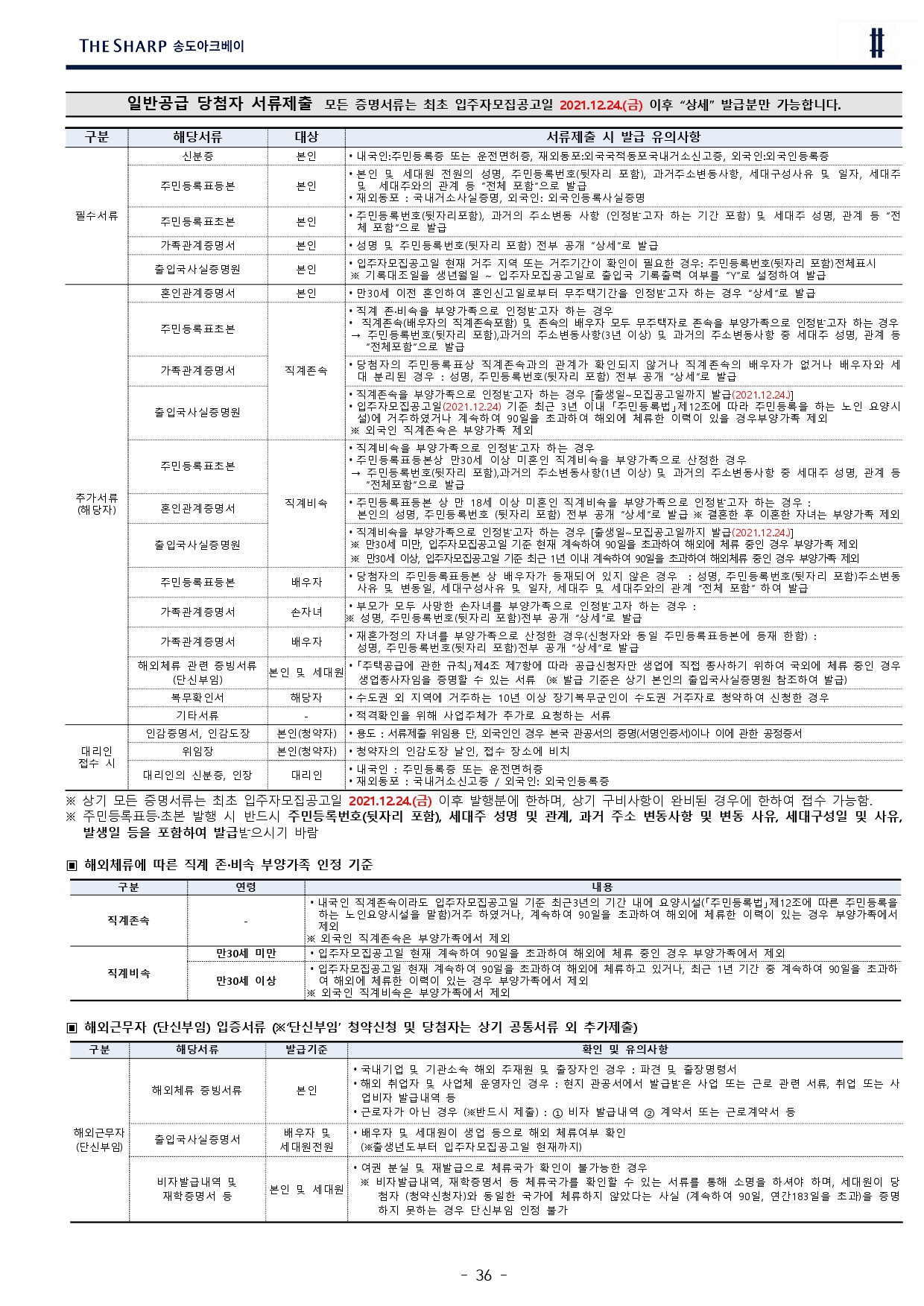 ■ 본 아파트의 최초 입주자모집공고일은 2021.12.24.(금)입니다. (청약자격 조건의 기간, 나이, 지역우선, 주택소유, 세대원 등의 청약자격 조건 판단 기준일입니다.)