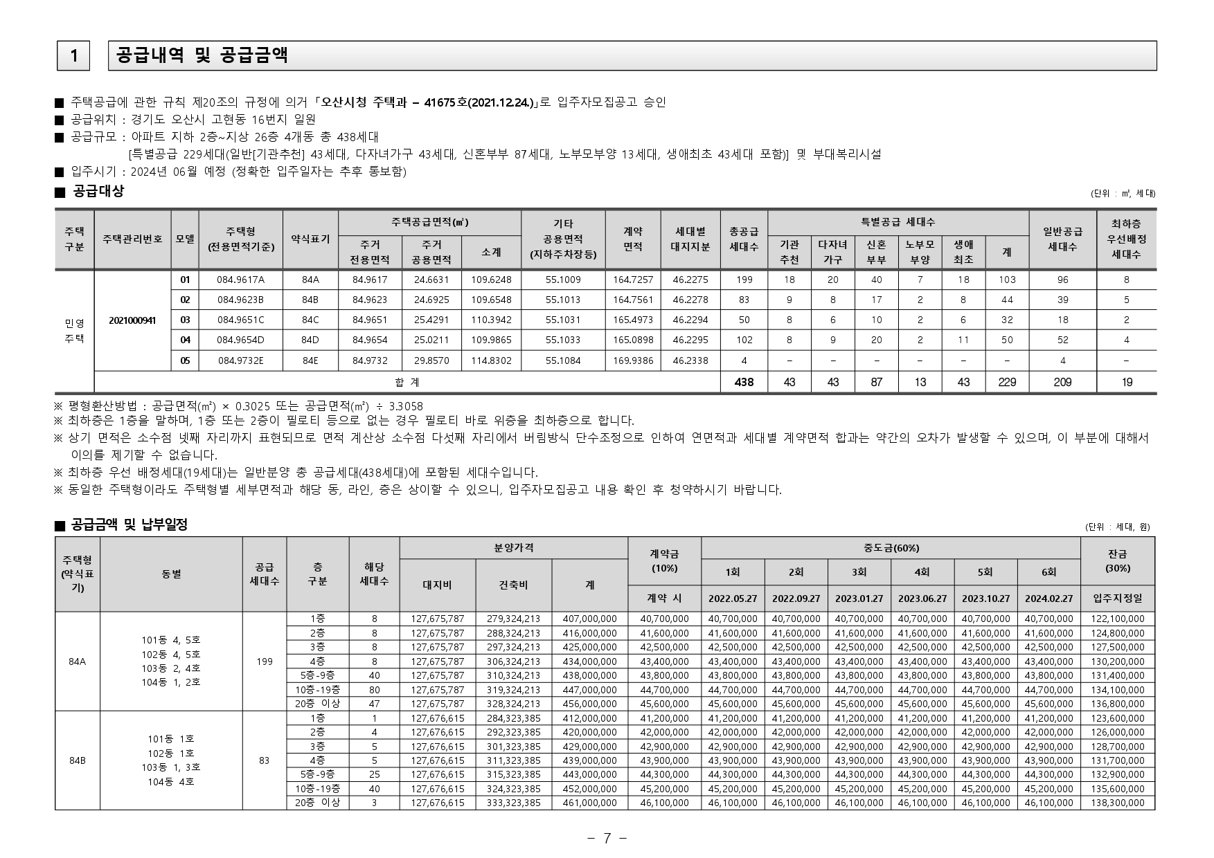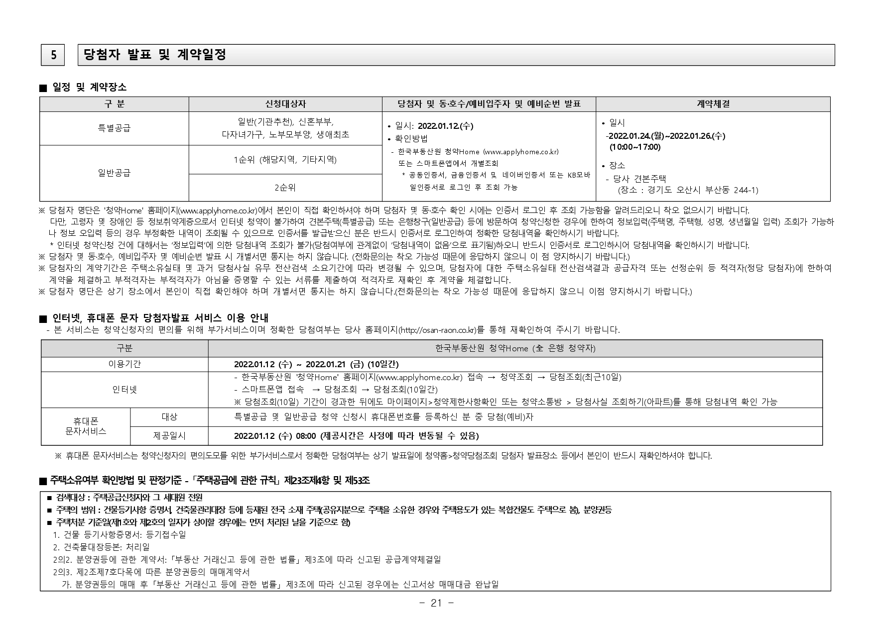 ■ 본 아파트의 최초 입주자모집공고일은 2021.12.24.입니다.(청약자격조건의 기간, 나이, 지역우선 등의 청약자격조건 판단기준일입니다.)