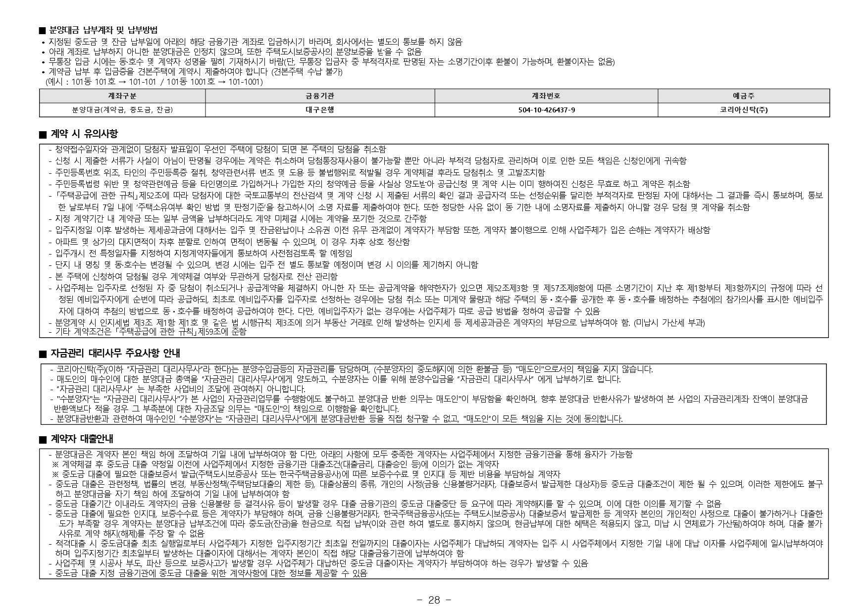청약통장은 계약여부와 관계없이 재사용이 불가합니다.)