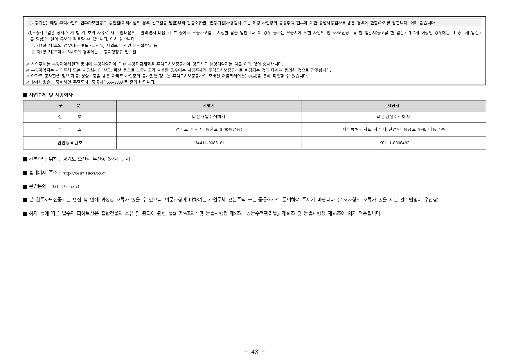 오산 라온프라이빗 스위트 입주자모집공고입니다.