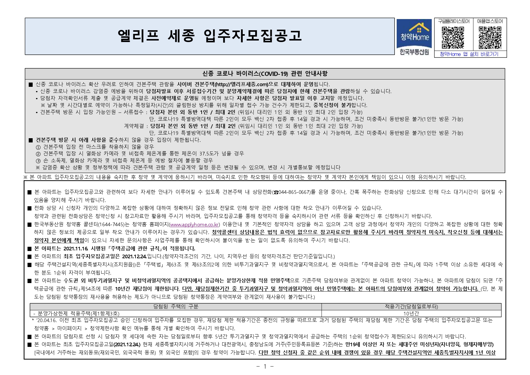 민간분양 엘리프 세종 입주자 모집공고 (2021.12.24)입니다.