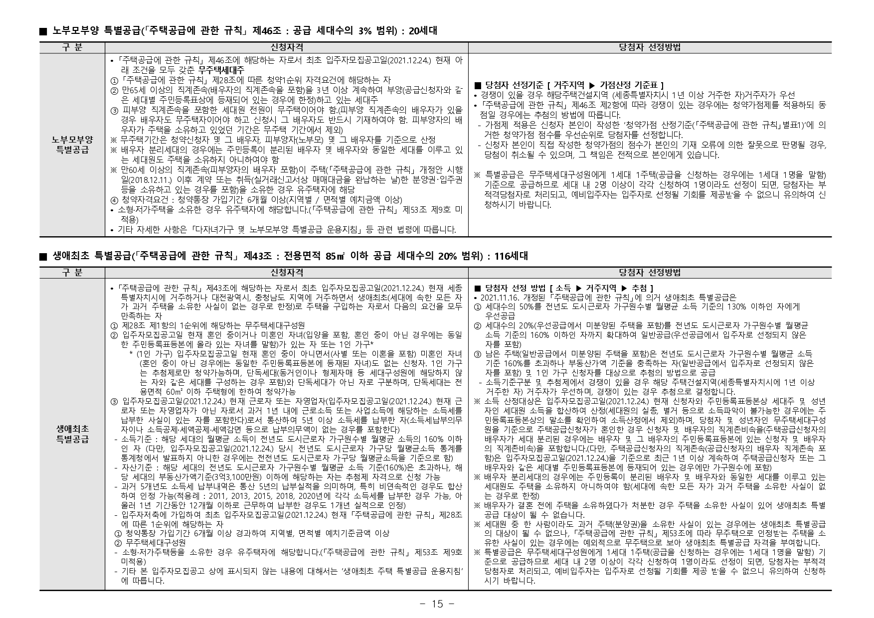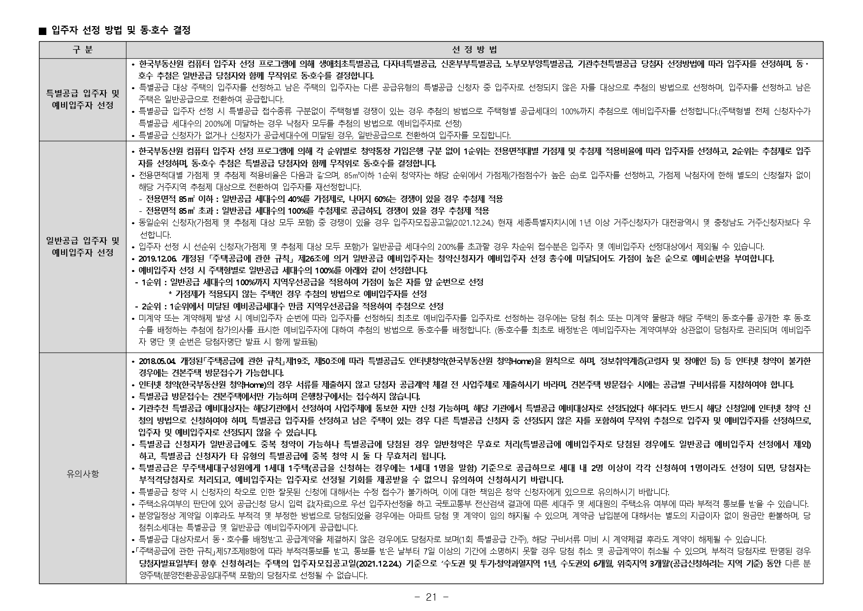 ■ 본 아파트의 최초 입주자모집공고일은 2021.12.24.입니다.(청약자격조건의 기간, 나이, 지역우선 등의 청약자격조건 판단기준일입니다.)