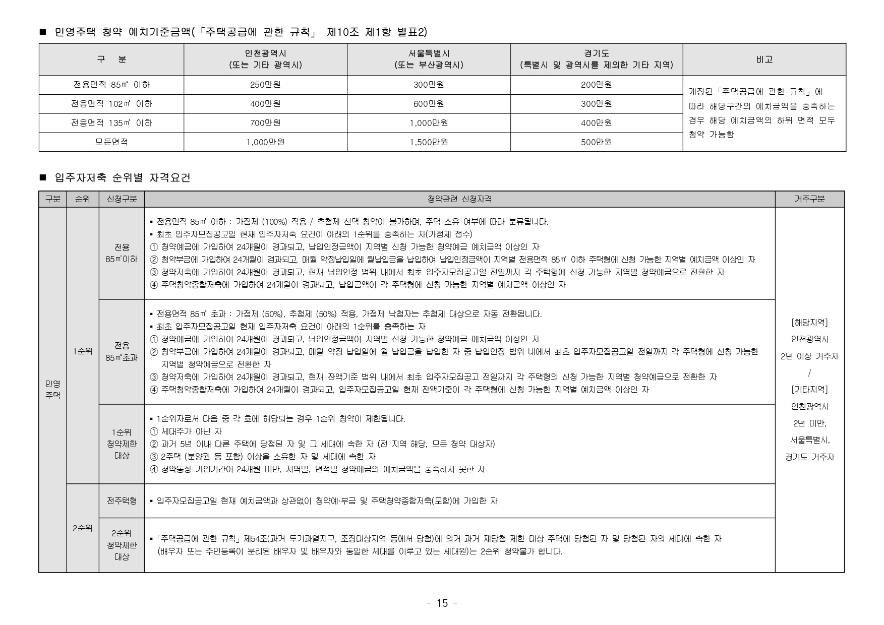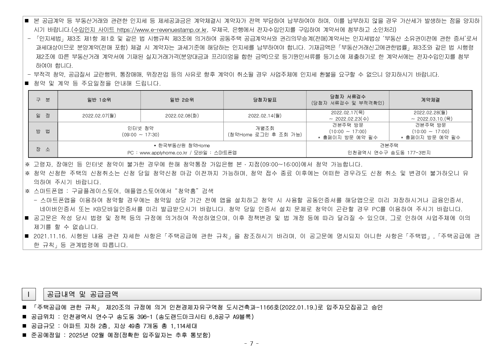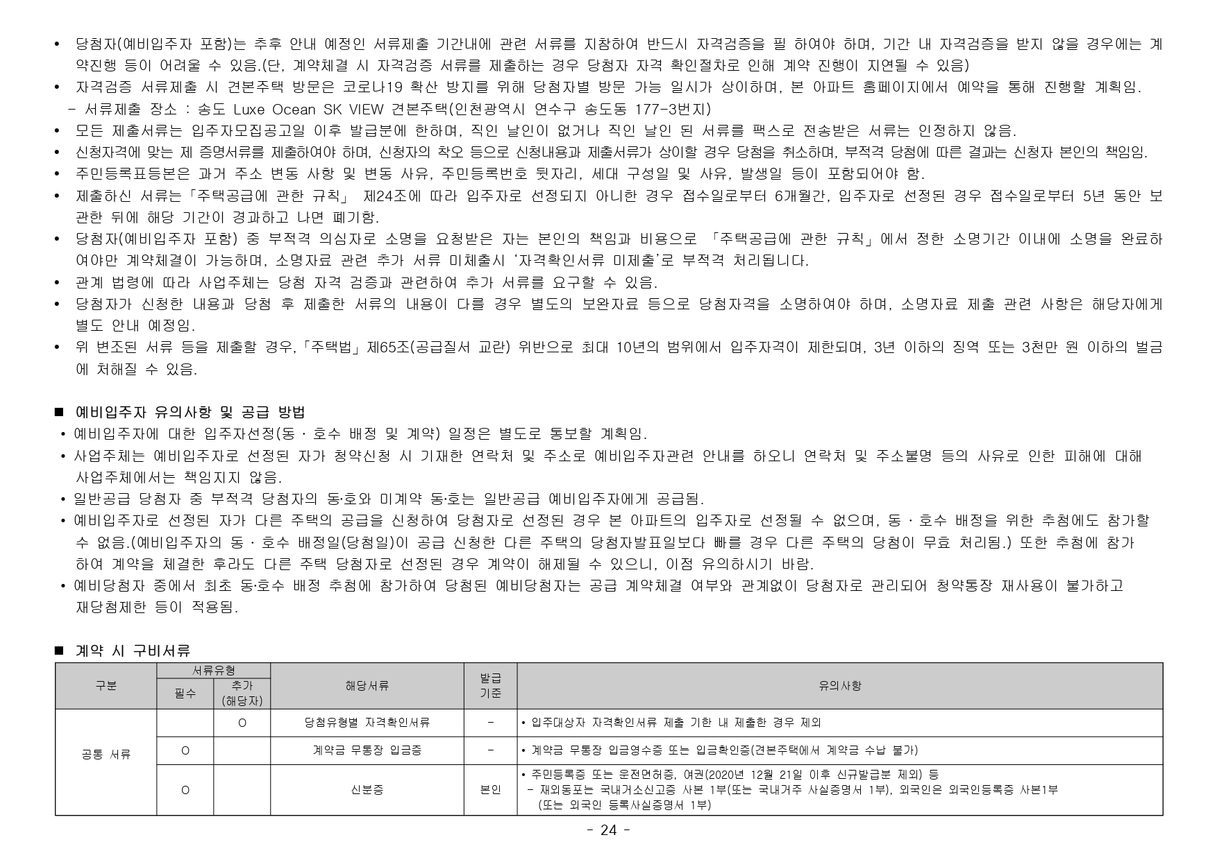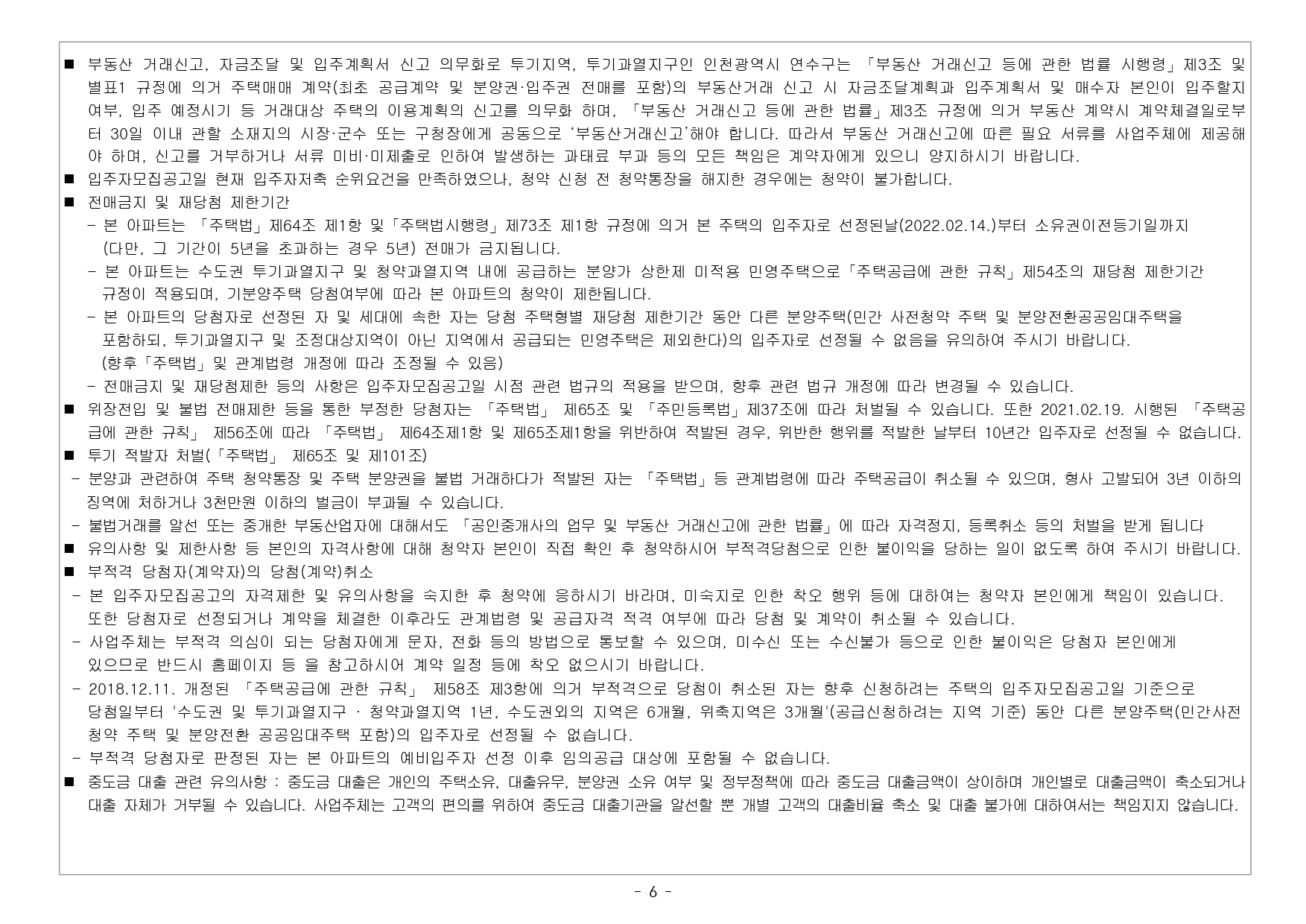 ● 해당 주택건설지역(인천광역시 연수구, 인천 경제자유구역 송도국제도시)은 「수도권정비계획법」제6조 제1항 및 제2항의 규정에 의한 성장관리권역이며, 「주택법」 제63조 및 제63조의2에 의한 투기과열지구 및 청약과열지역으로서 본 아파트는 「주택공급에 관한 규칙」에 따라 1주택 이상 소유한 세대에 속한 분은 1순위 가점제 청약이 불가하며, 2주택 이상 소유한 세대에 속한 분은 1순위 자격에서 제외됩니다. (무주택 세대 또는 1주택을 소유한 세대에 속한 분만 1 순위청약 가능)