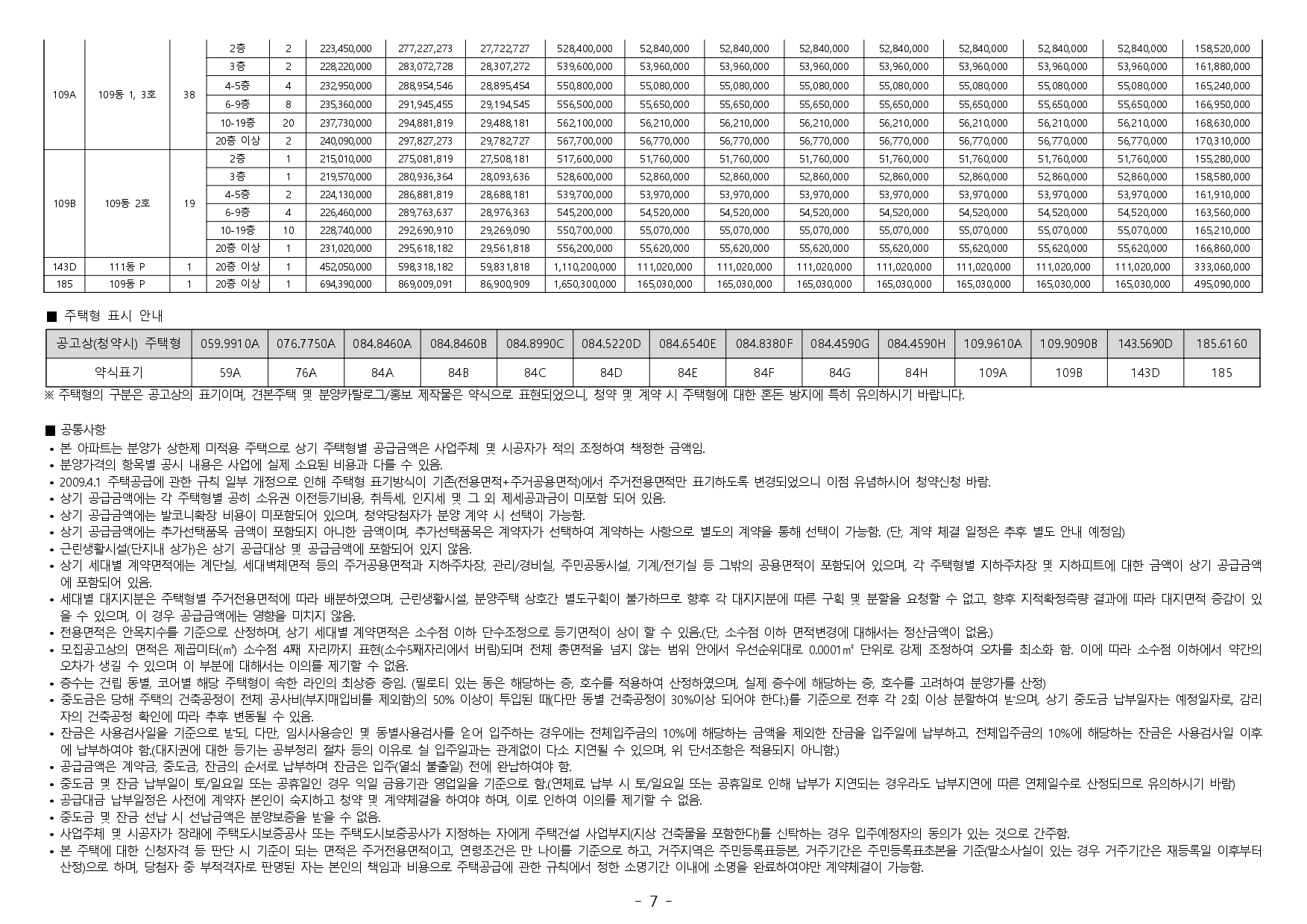 ■ 본 아파트의 당첨자로 선정 시 당첨자 및 세대에 속한 자는 당첨일로부터 향후 5년간 투기과열지구 및 청약과열지역에서 공급하는 주택의 1순위 청약접수가 제한되오니 유의하시기 바랍니다.
