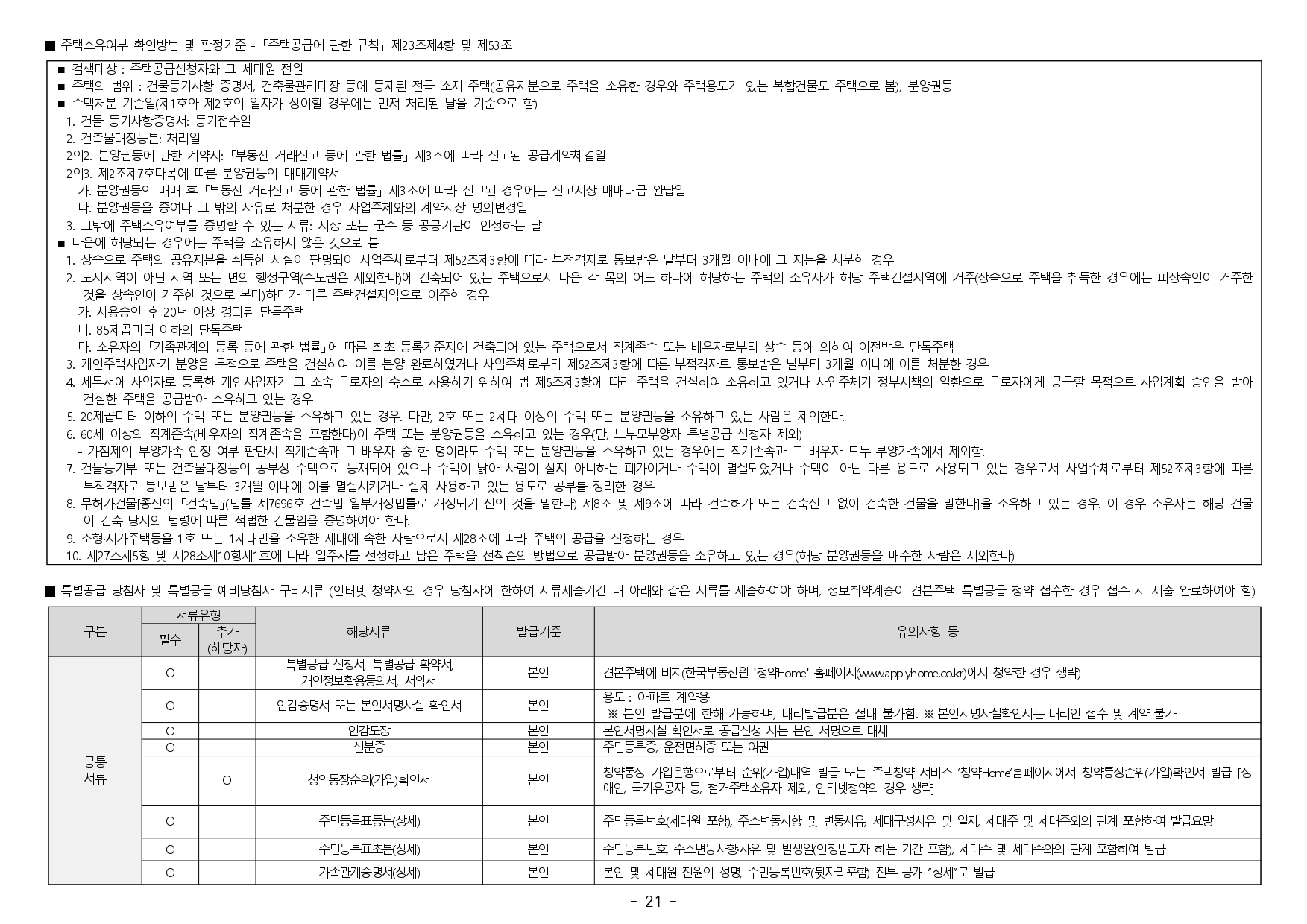 ■ 2019.11.01. 개정된 「주택공급에 관한 규칙」 제4조 제5항 및 제23조 제2항 제7호에 따라 우선공급 받으려는 경우에는 「출입국관리법」제88조의 출입국사실증명서를 사업주체에 제출하여야 합니다. 장기해외체류자는 해당 주택 건설지역 우선공급 대상자로 신청이 불가하며, 이를 위반하여 해당 주택건설지역 거주자로 청약하여 당첨된 경우에는 부적격 당첨자로 처리됩니다.