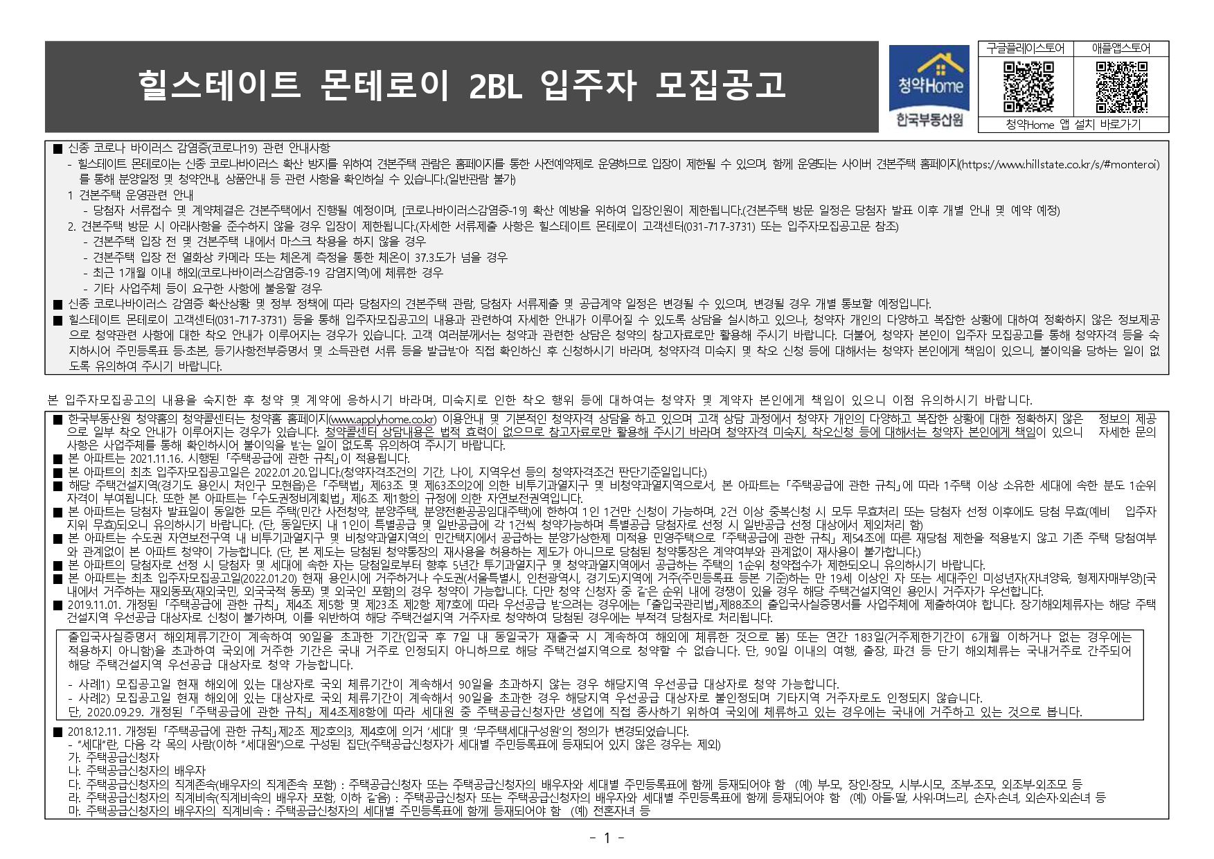 | 힐스테이트 몬테로이 1BL 입주자 모집공고 (0) | 2022.01.23 |