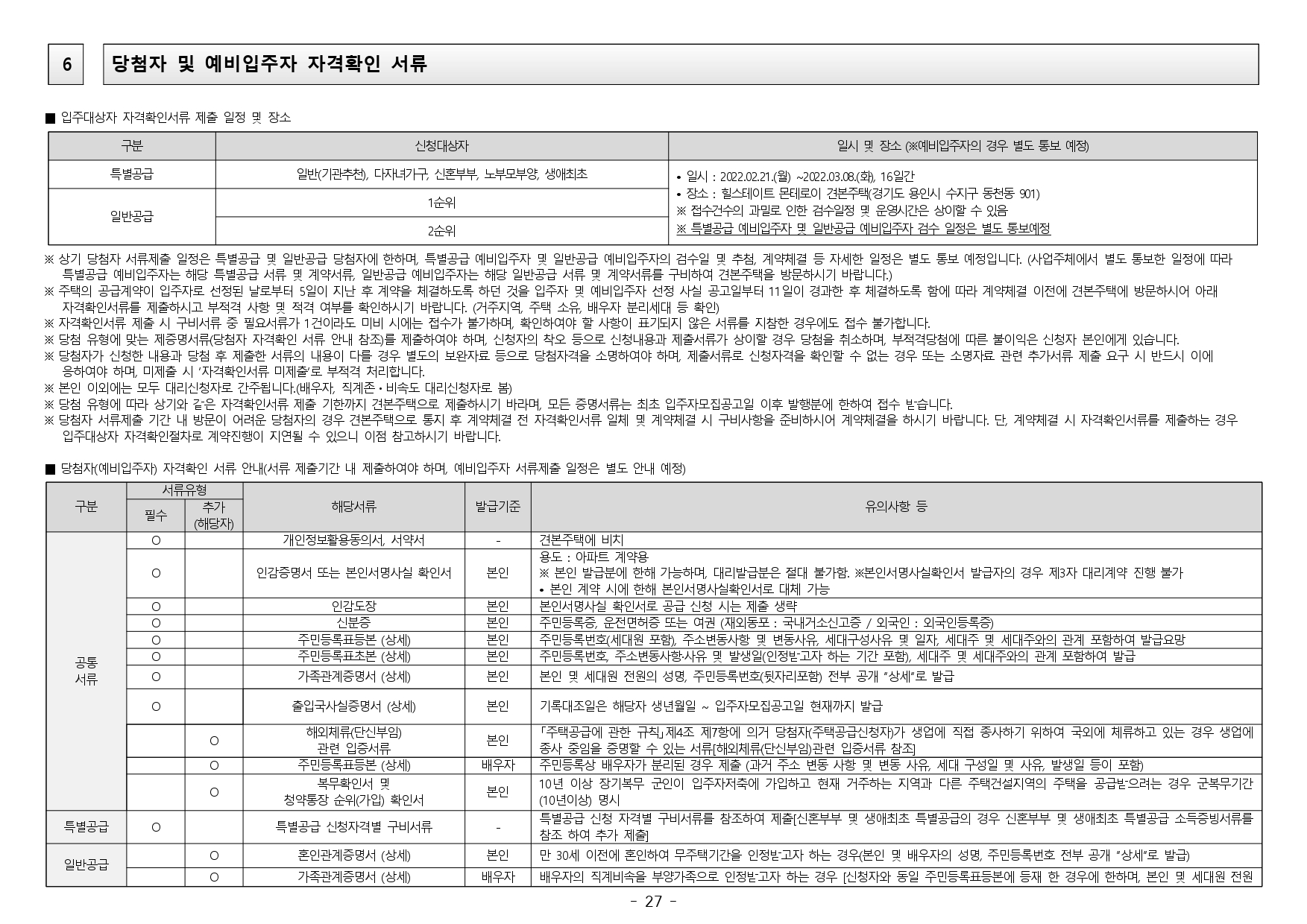 ■ 2019.11.01. 개정된 「주택공급에 관한 규칙」 제4조 제5항 및 제23조 제2항 제7호에 따라 우선공급 받으려는 경우에는 「출입국관리법」제88조의 출입국사실증명서를 사업주체에 제출하여야 합니다. 장기해외체류자는 해당 주택 건설지역 우선공급 대상자로 신청이 불가하며, 이를 위반하여 해당 주택건설지역 거주자로 청약하여 당첨된 경우에는 부적격 당첨자로 처리됩니다.