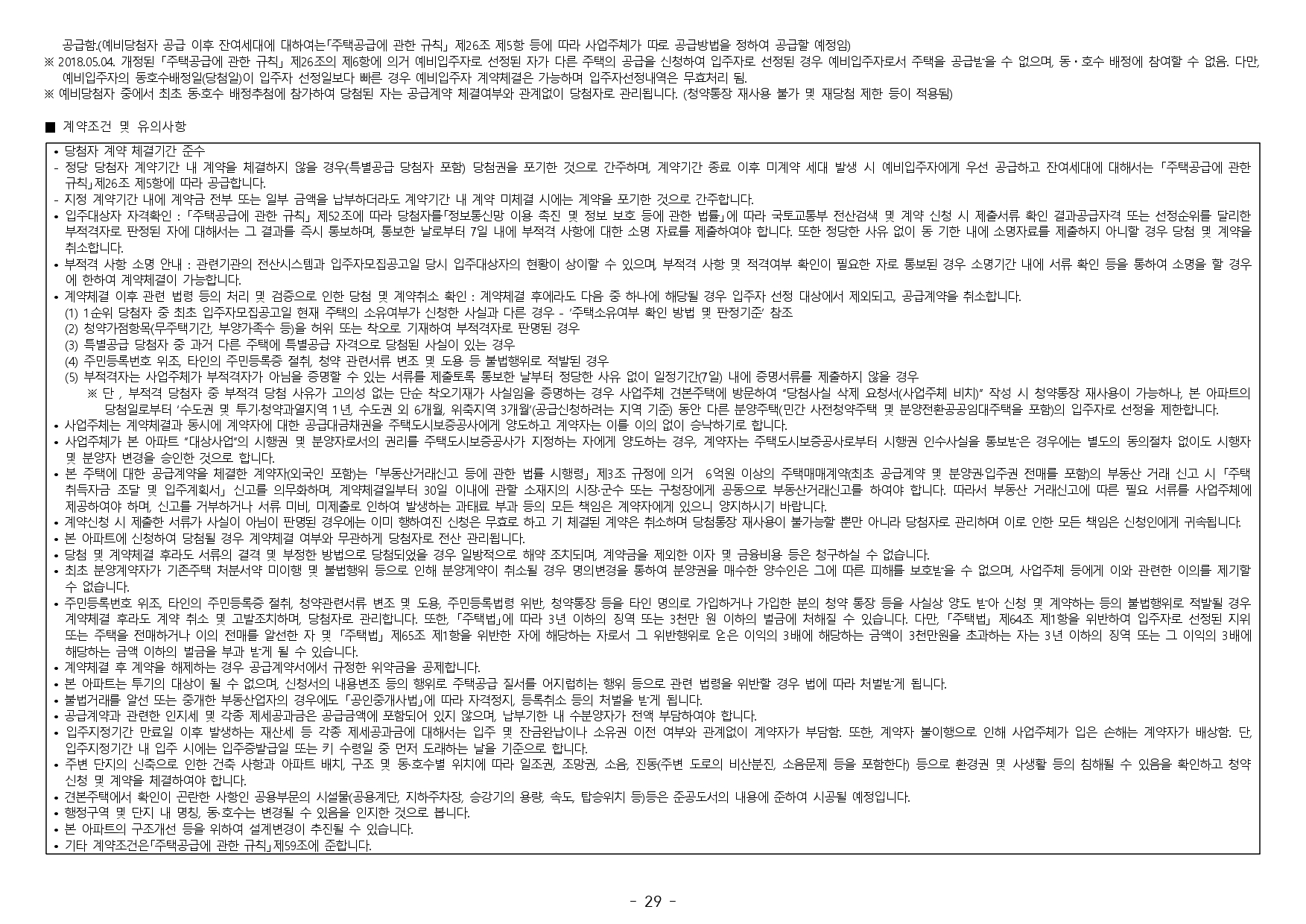 ■ 본 아파트의 당첨자로 선정 시 당첨자 및 세대에 속한 자는 당첨일로부터 향후 5년간 투기과열지구 및 청약과열지역에서 공급하는 주택의 1순위 청약접수가 제한되오니 유의하시기 바랍니다.