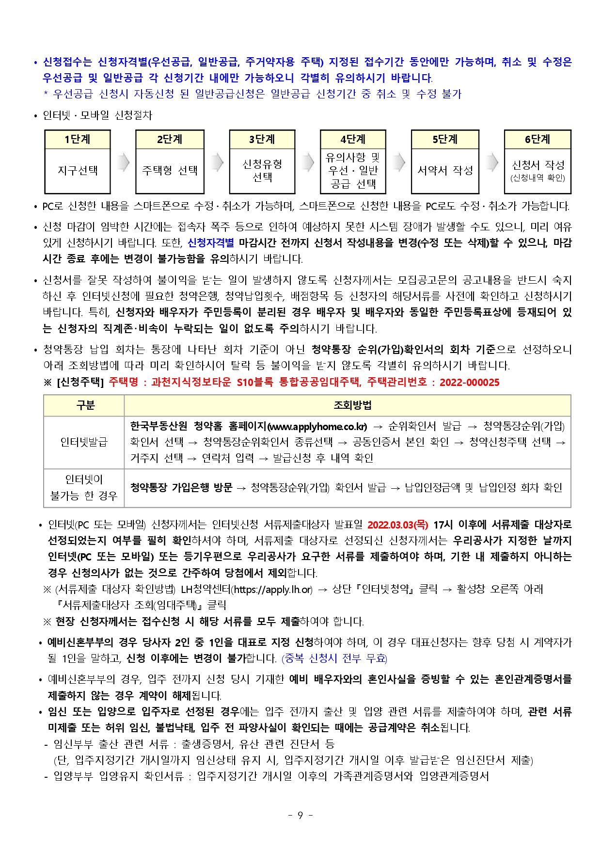과천지식정보타운 S10BL 통합공공임대주택 입주자 모집공고.