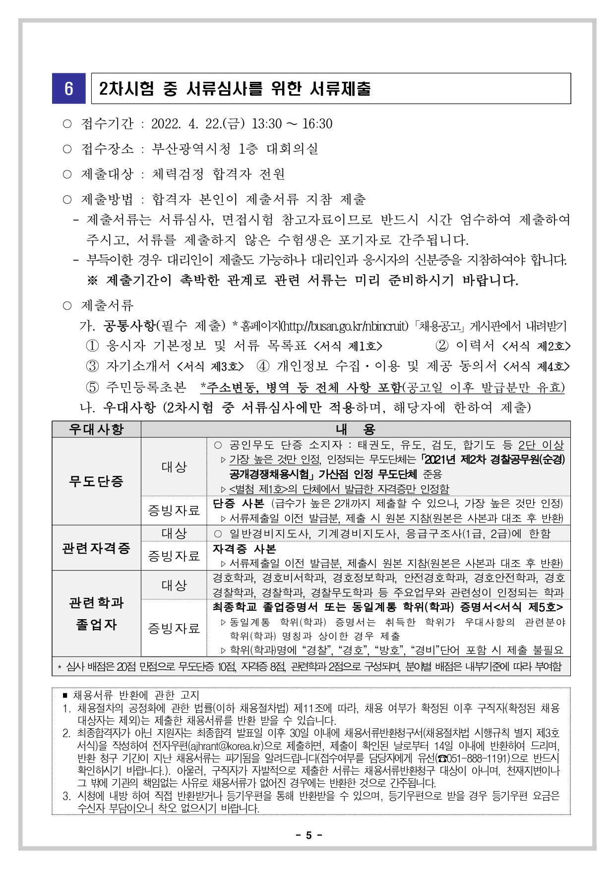 2022년 부산광역시 청원경찰 채용시험 공고입니다.