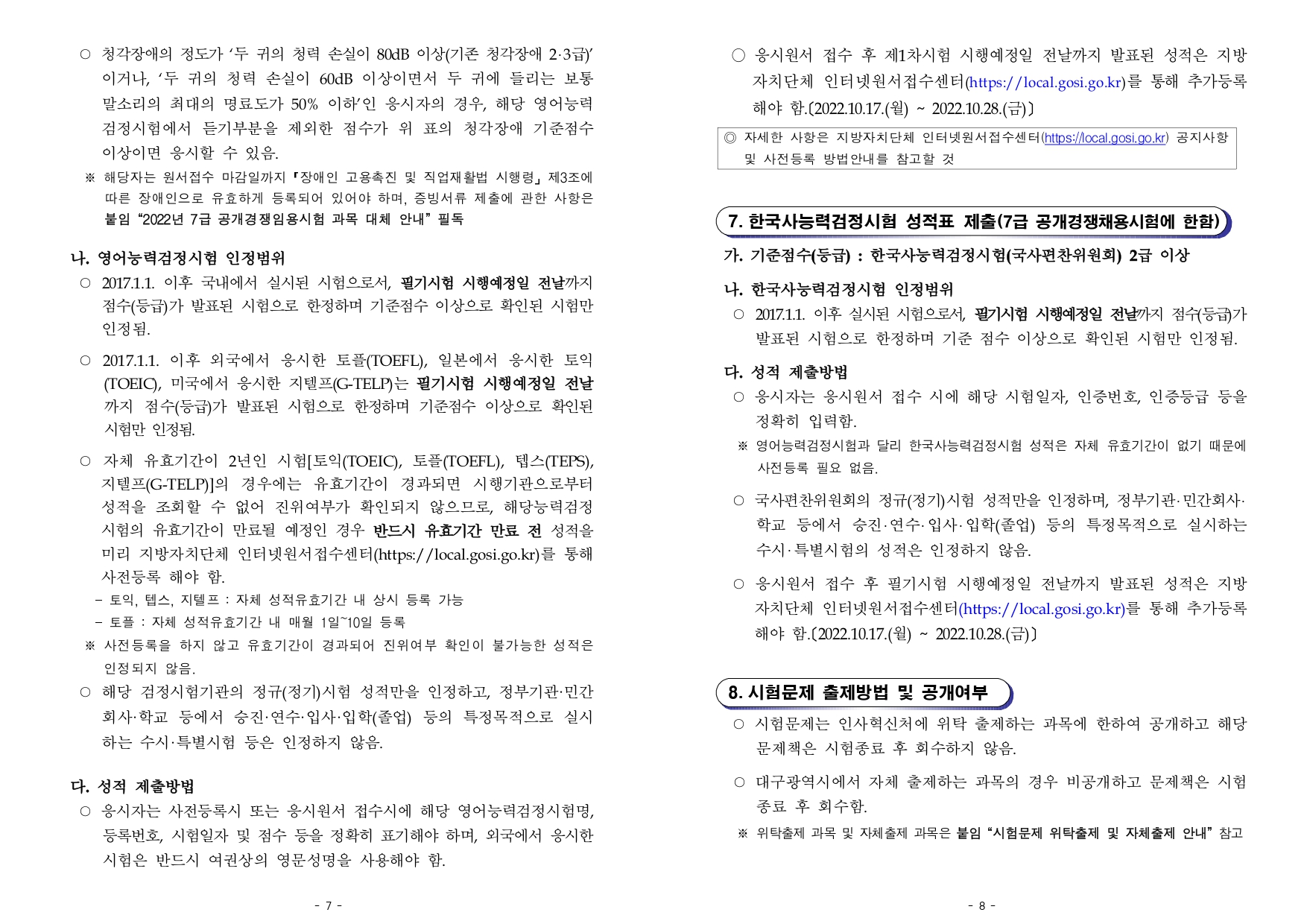 2022년도 대구광역시 지방공무원 공개경쟁임용시험 계획 공고입니다.