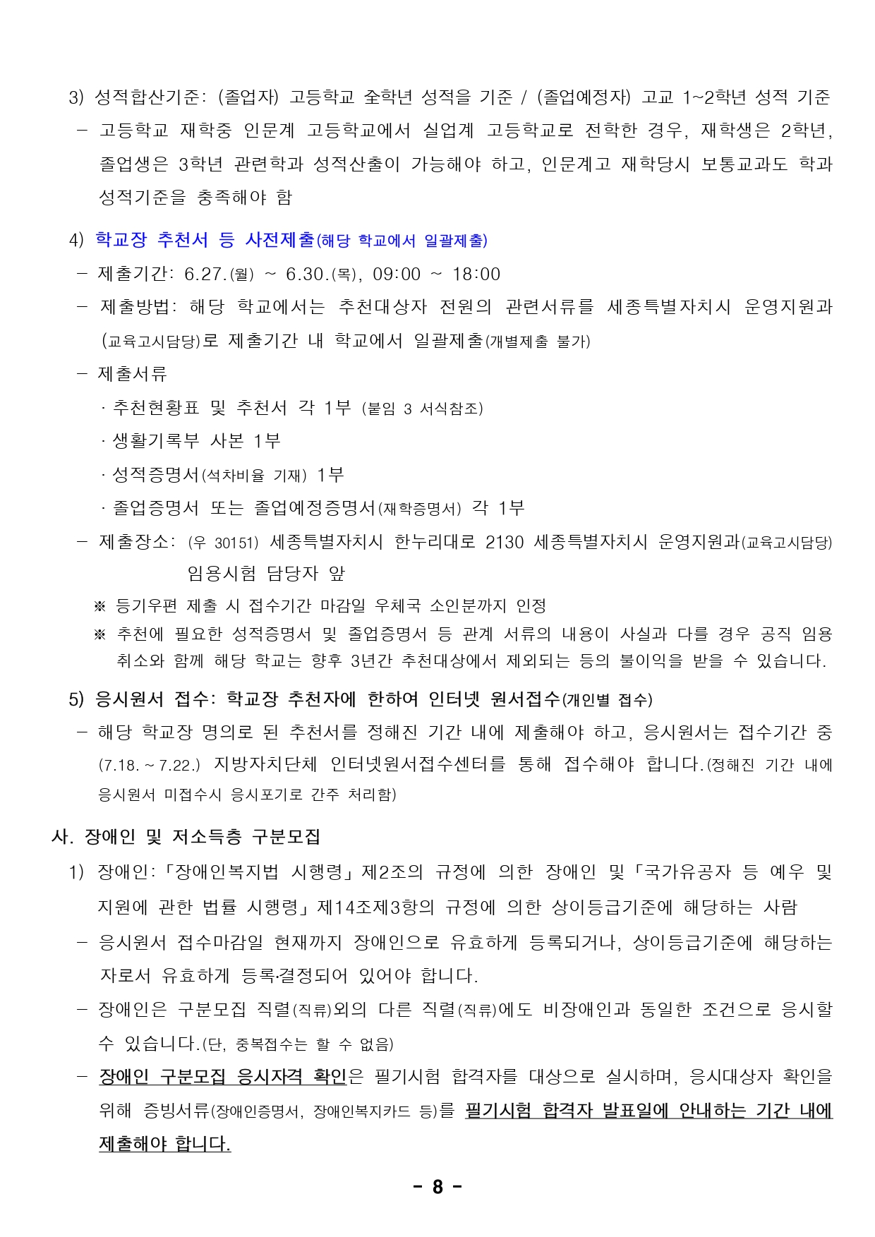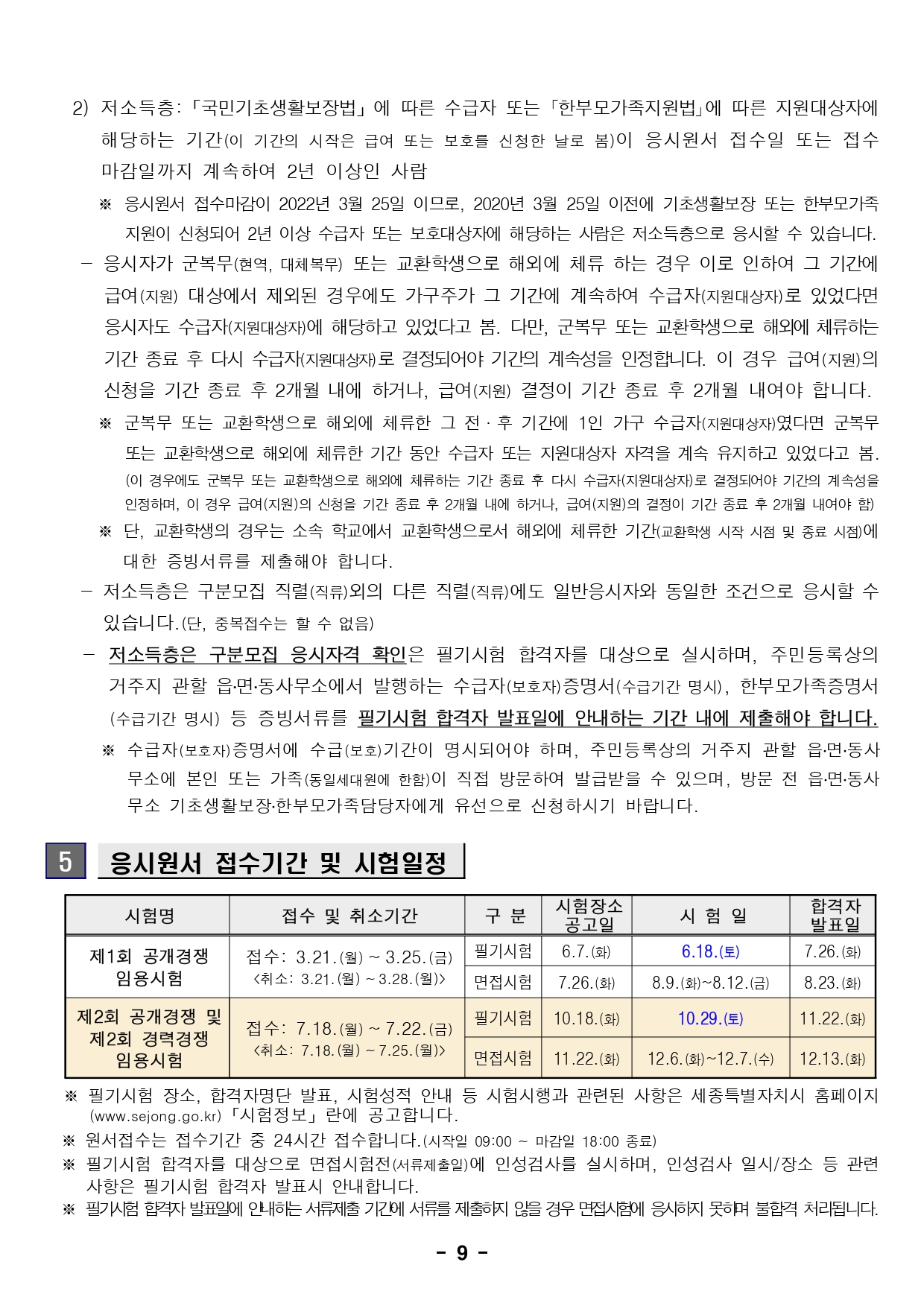 2022 세종시 지방공무원 임용시험 시행계획 공고(~3.25 / ~7.22)입니다.