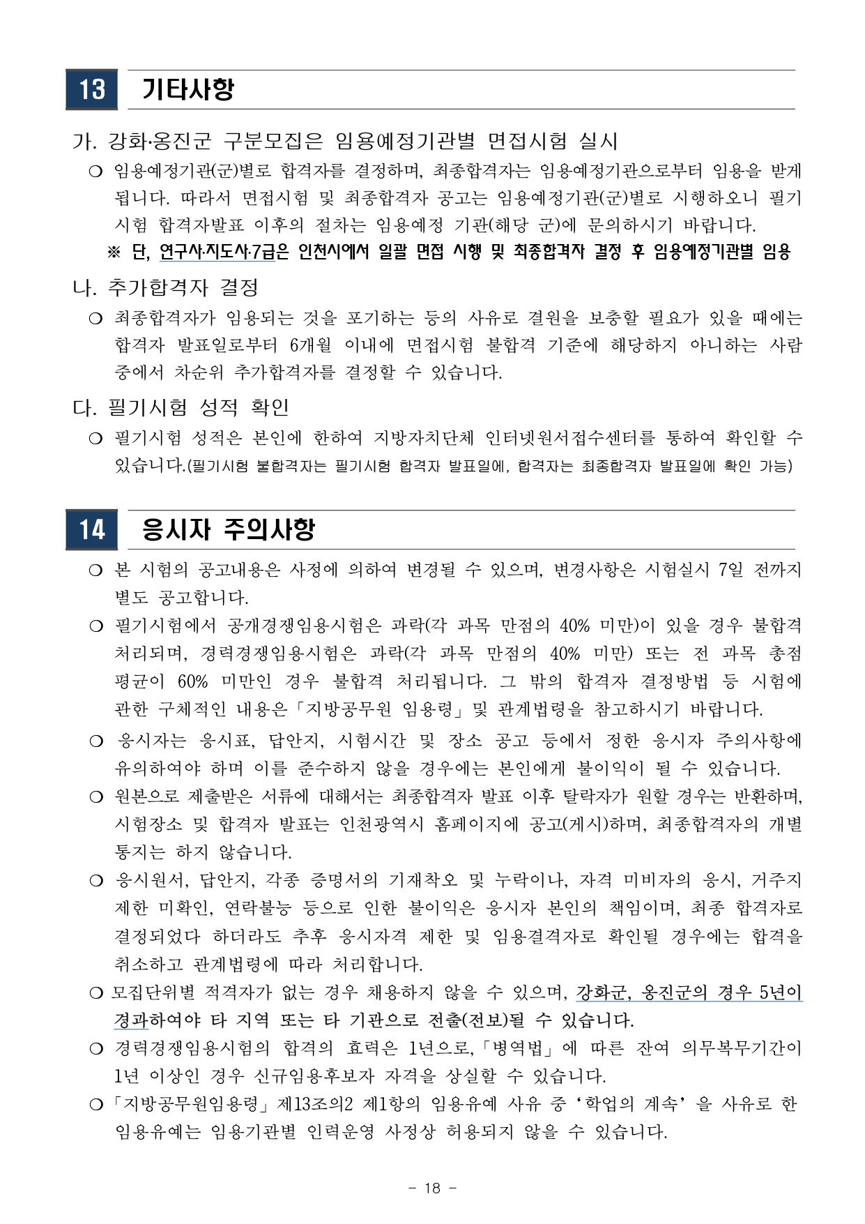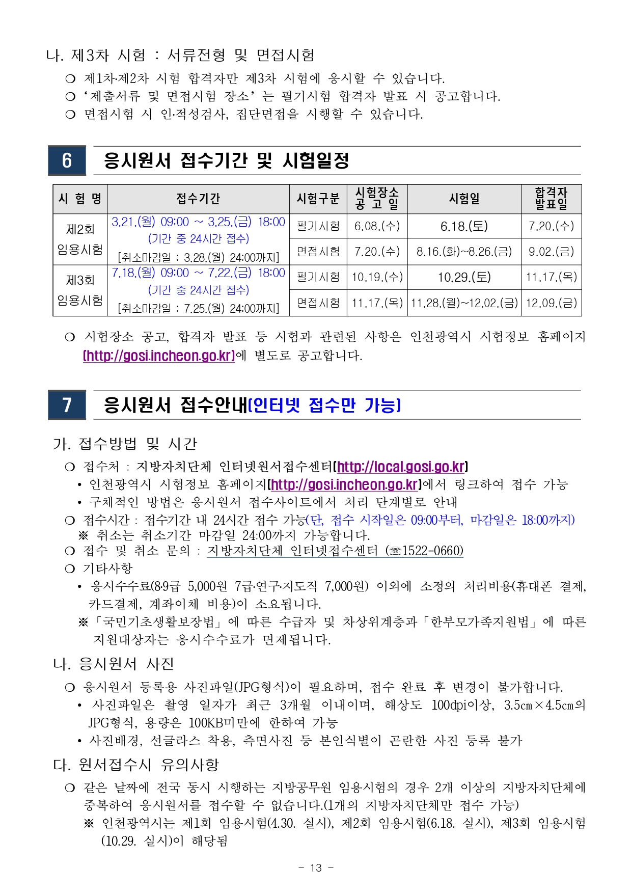 인천광역시 지방공무원 임용시험에 관심있는 분들은 아래 공고문을 참고하시기 바랍니다.