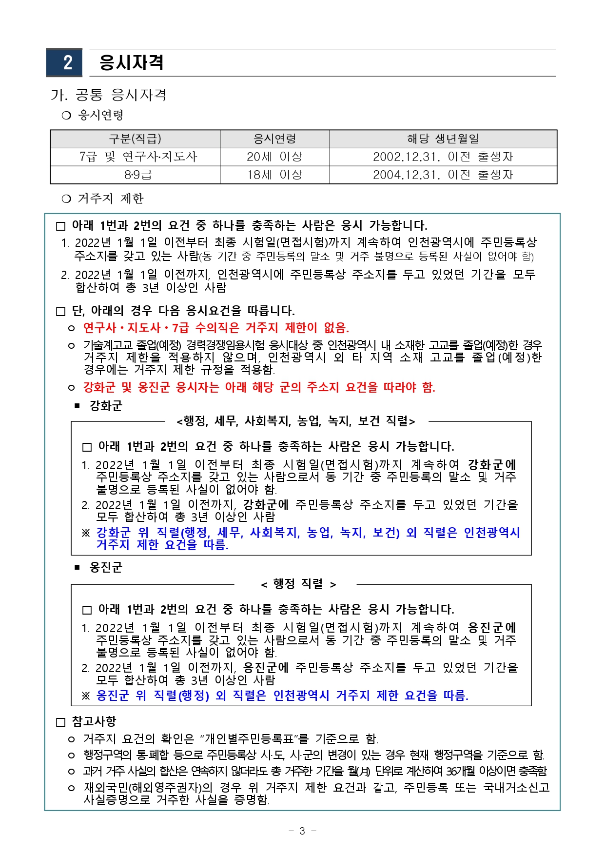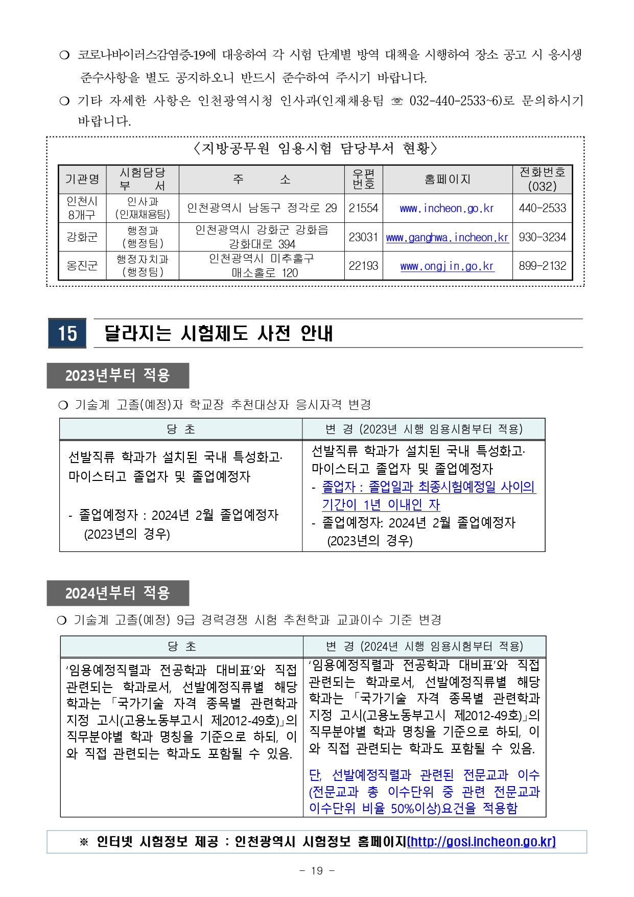 2022년도 제2,3회 인천광역시 지방공무원 임용시험 시행계획 공고입니다.