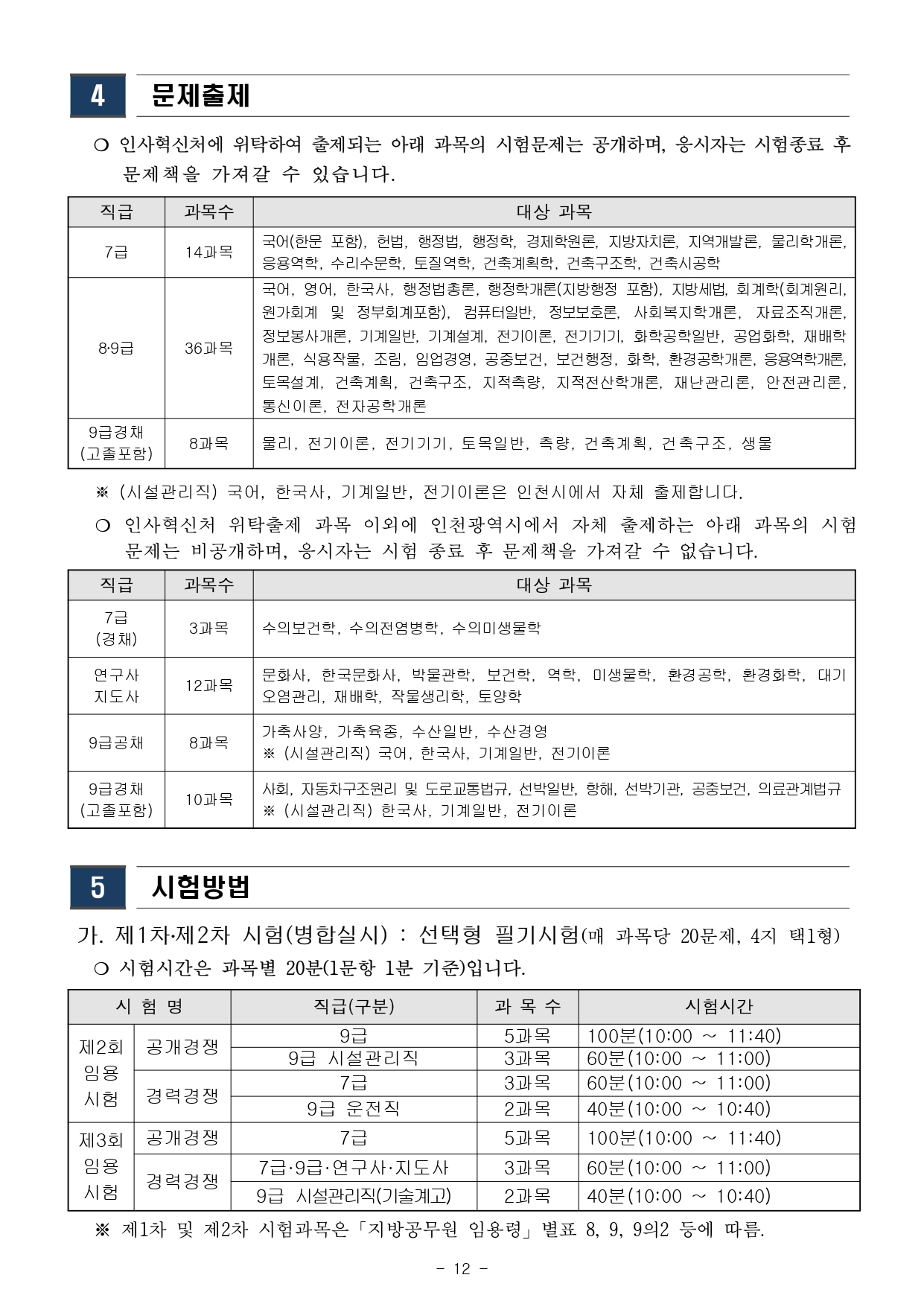 2022년도 제2,3회 인천광역시 지방공무원 임용시험 시행계획 공고입니다.