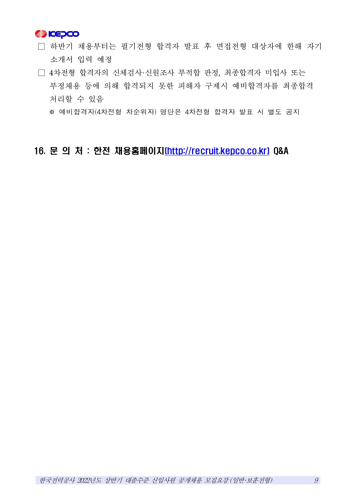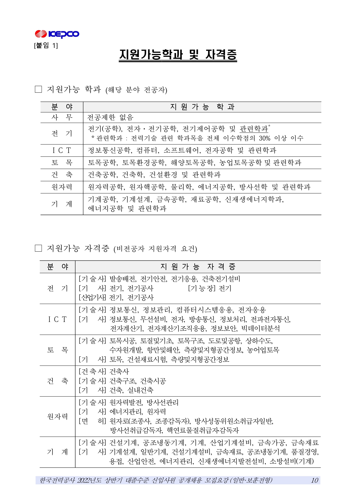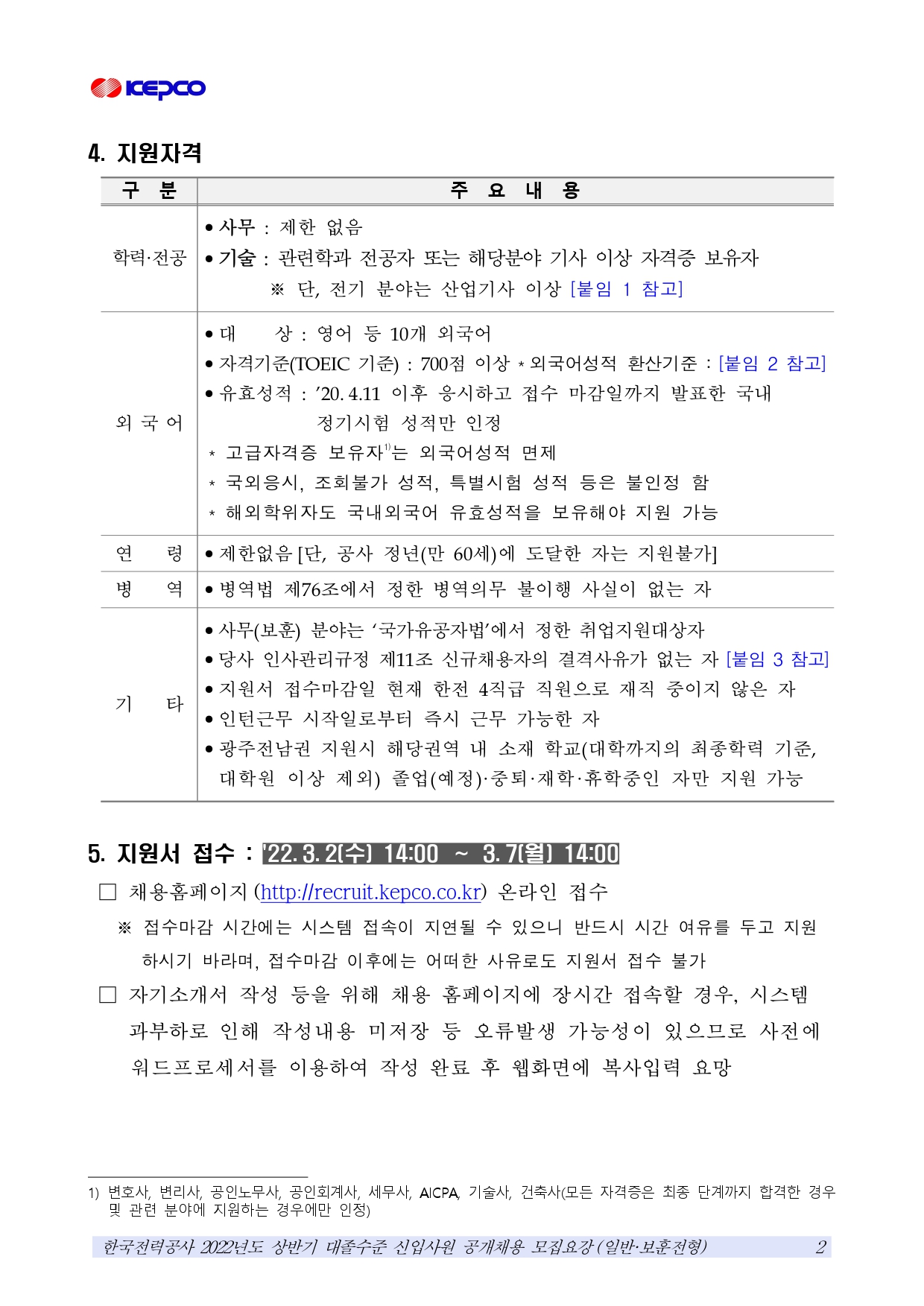 2022년도 상반기 대졸공채 모집요강(일반·보훈전형)입니다.