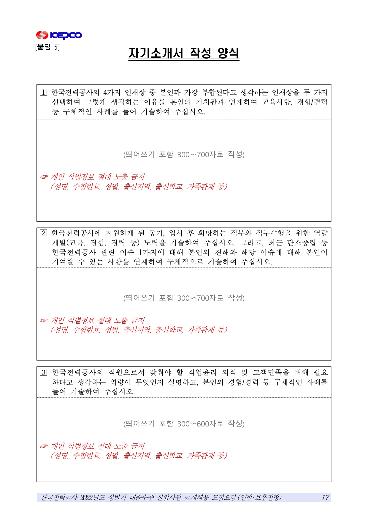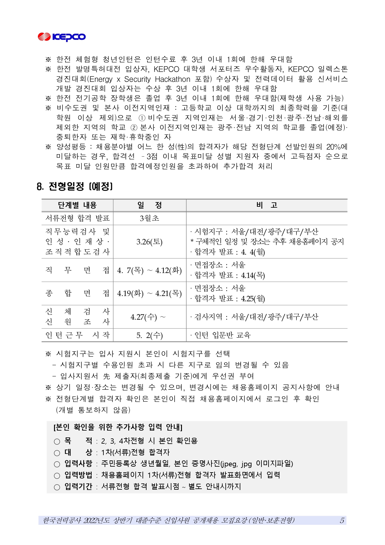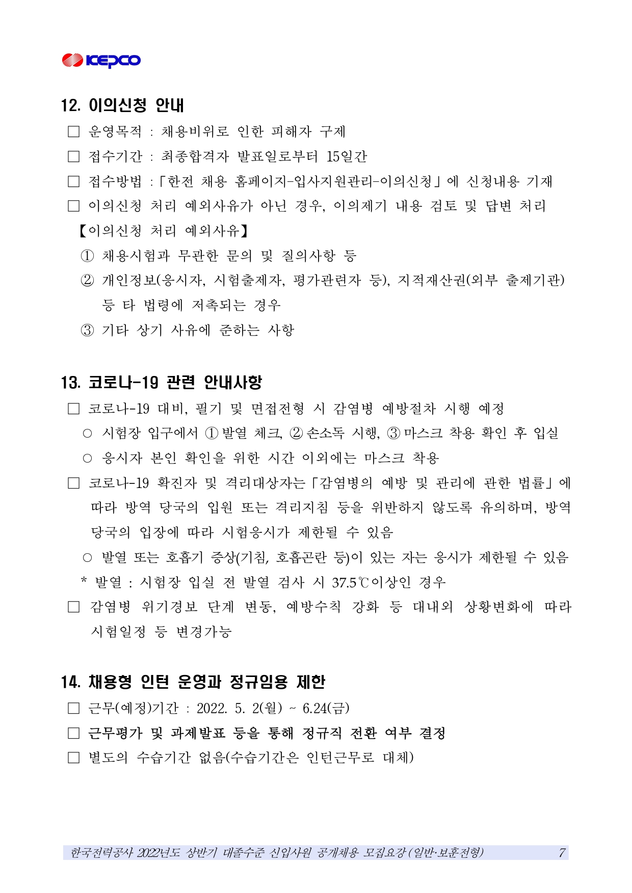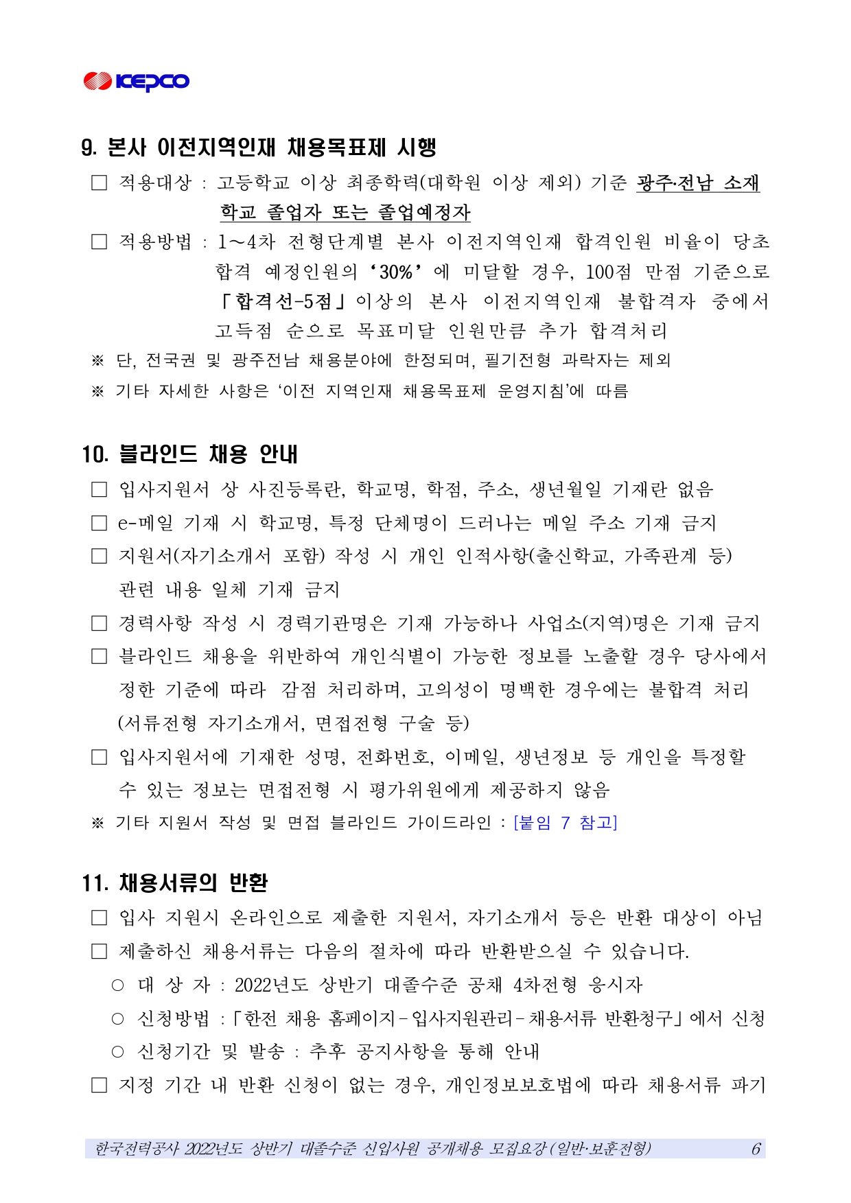 2022년도 상반기 대졸공채 모집요강(일반·보훈전형)입니다.