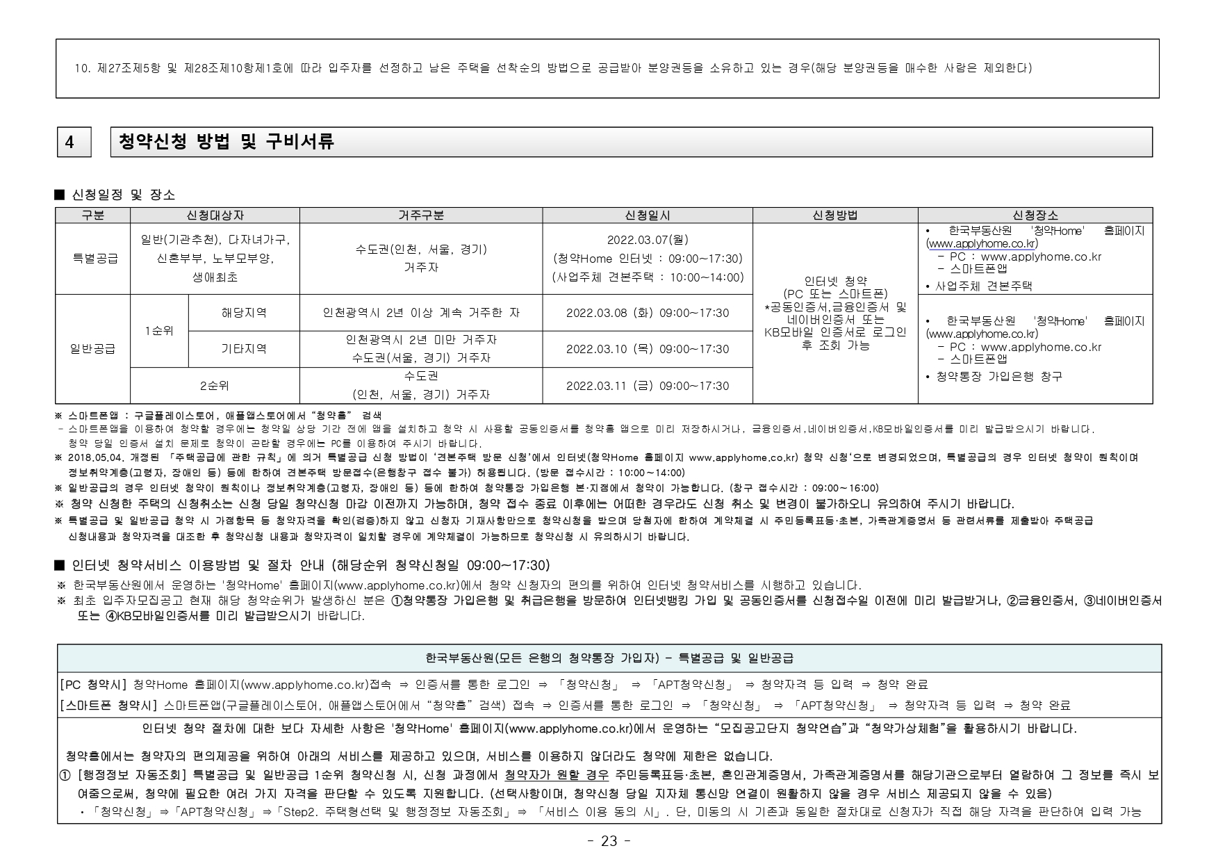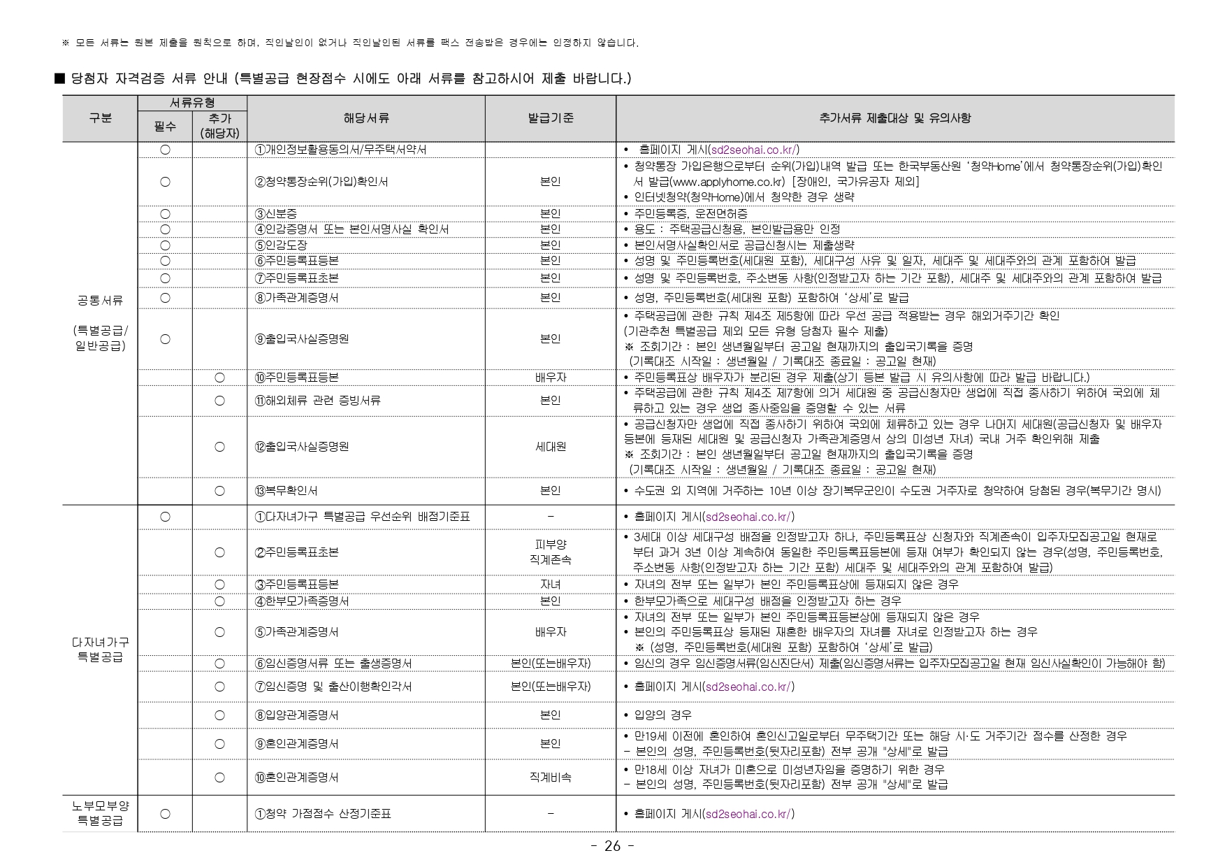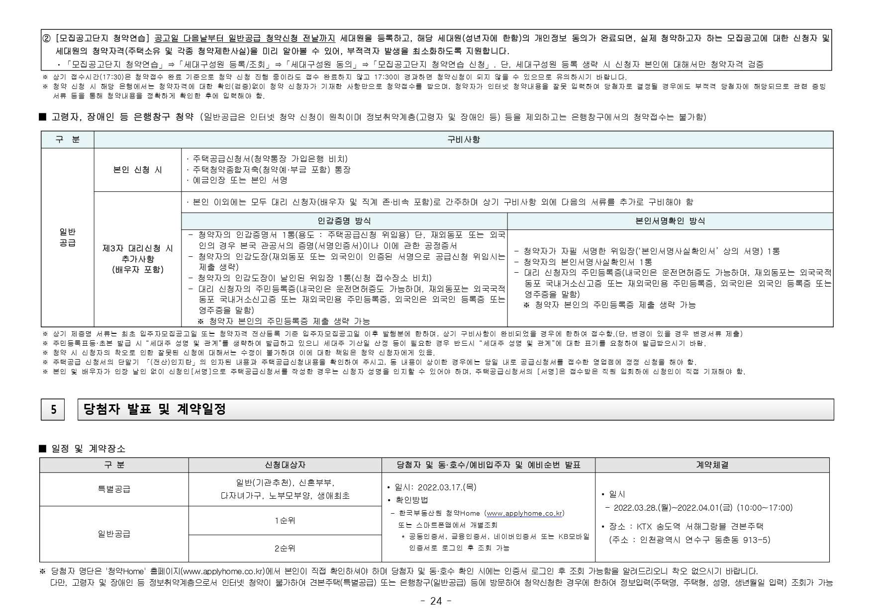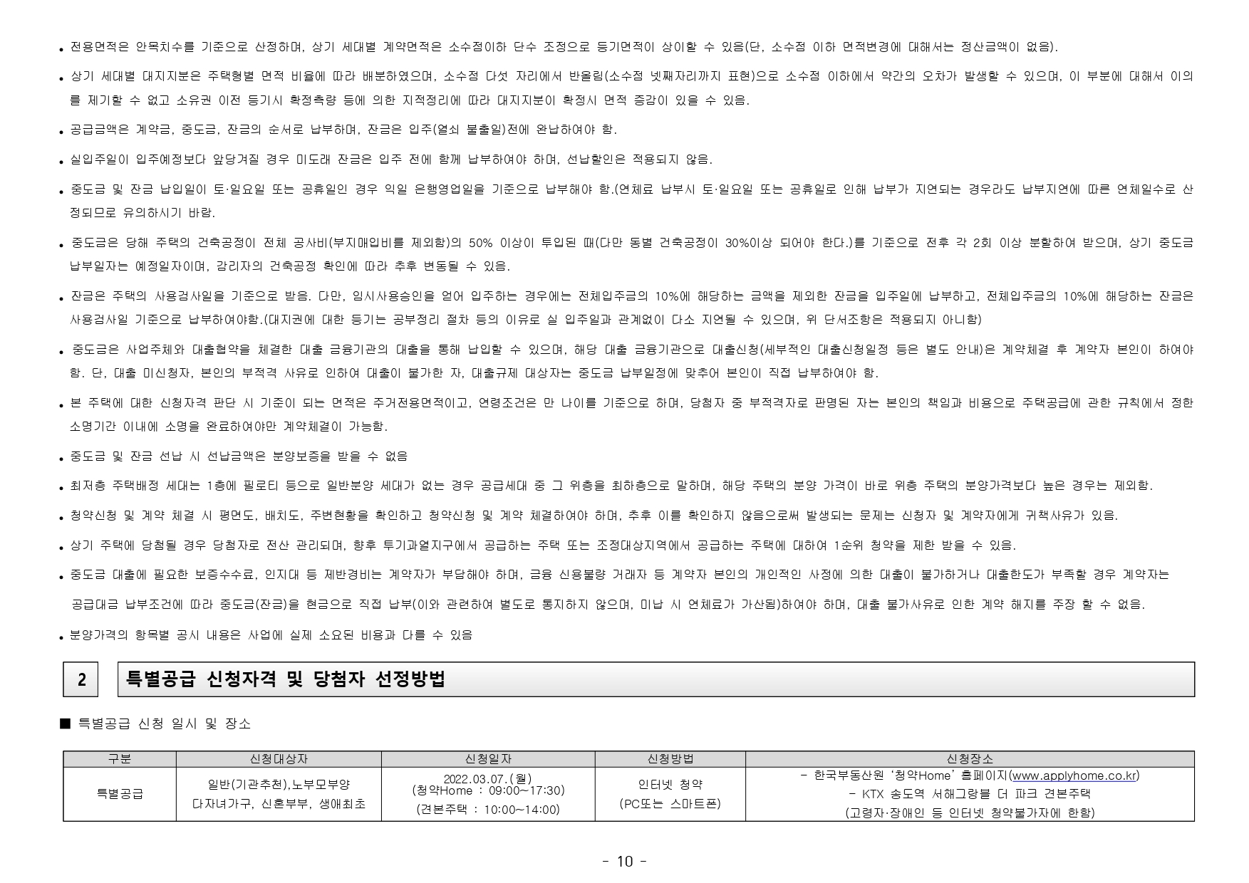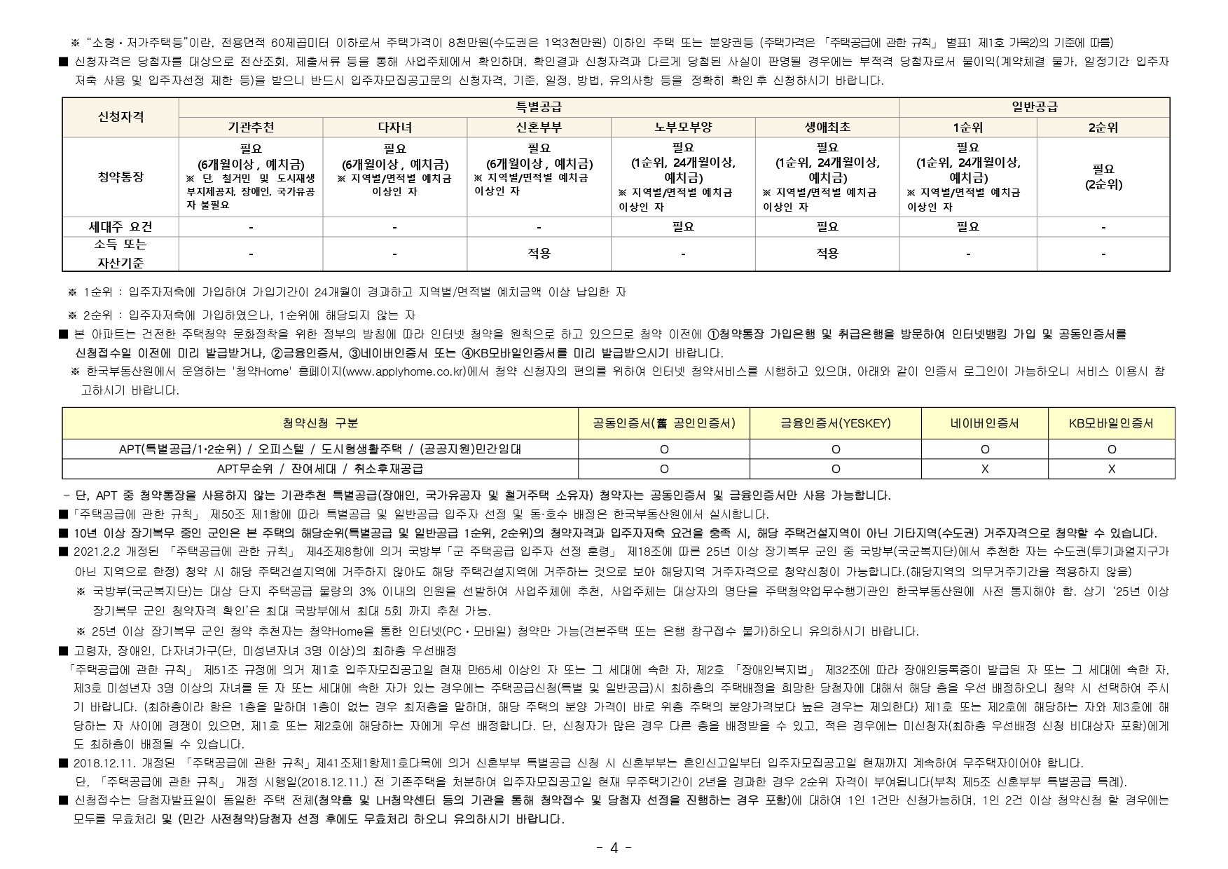 ■ 본 아파트는 당첨자 발표일이 동일한 모든 주택(민간 사전청약, 분양주택, 분양전환공공임대주택)에 한하여 1인 1건만 신청이 가능하며, 2건 이상 중복신청 시 모두 무효처리 또는 당첨자 선정 이후에도 당첨 무효(예비입주자 지위 무효)되오니 유의하시기 바랍니다. (단, 동일단지 내 1인이 특별공급 및 일반공급에 각 1건씩 청약가능하며 특별공급 당첨자로 선정 시 일반공급 선정 대상에서 제외처리 함)