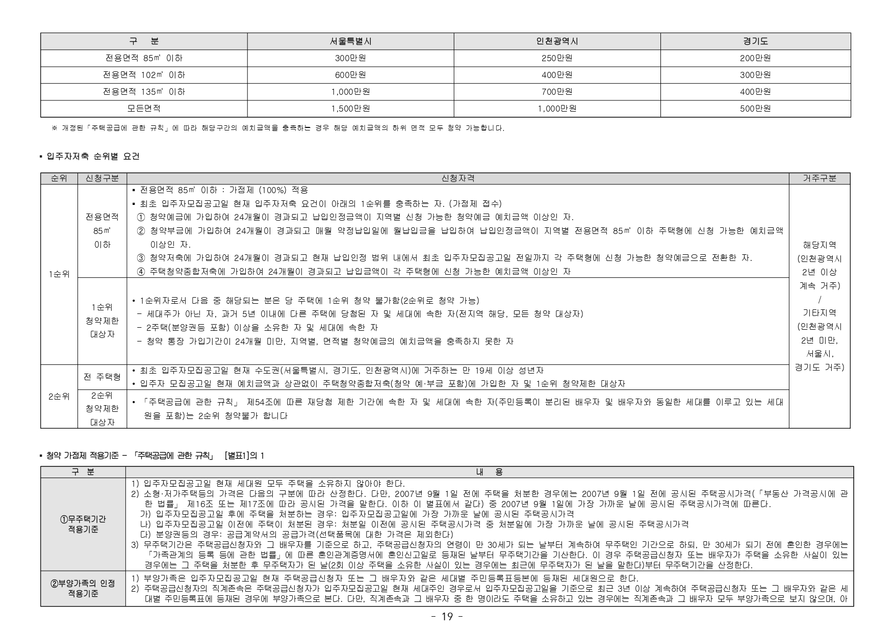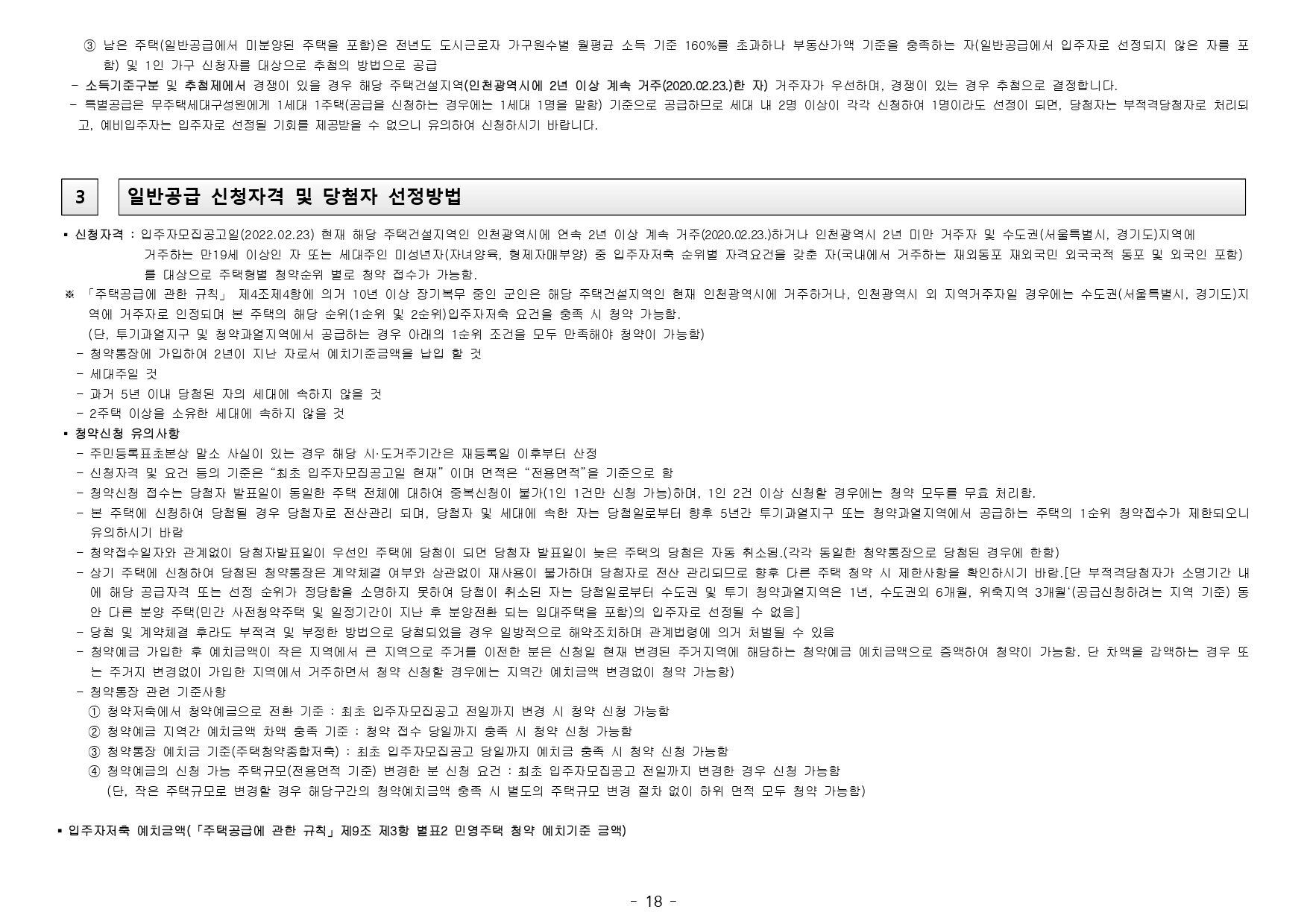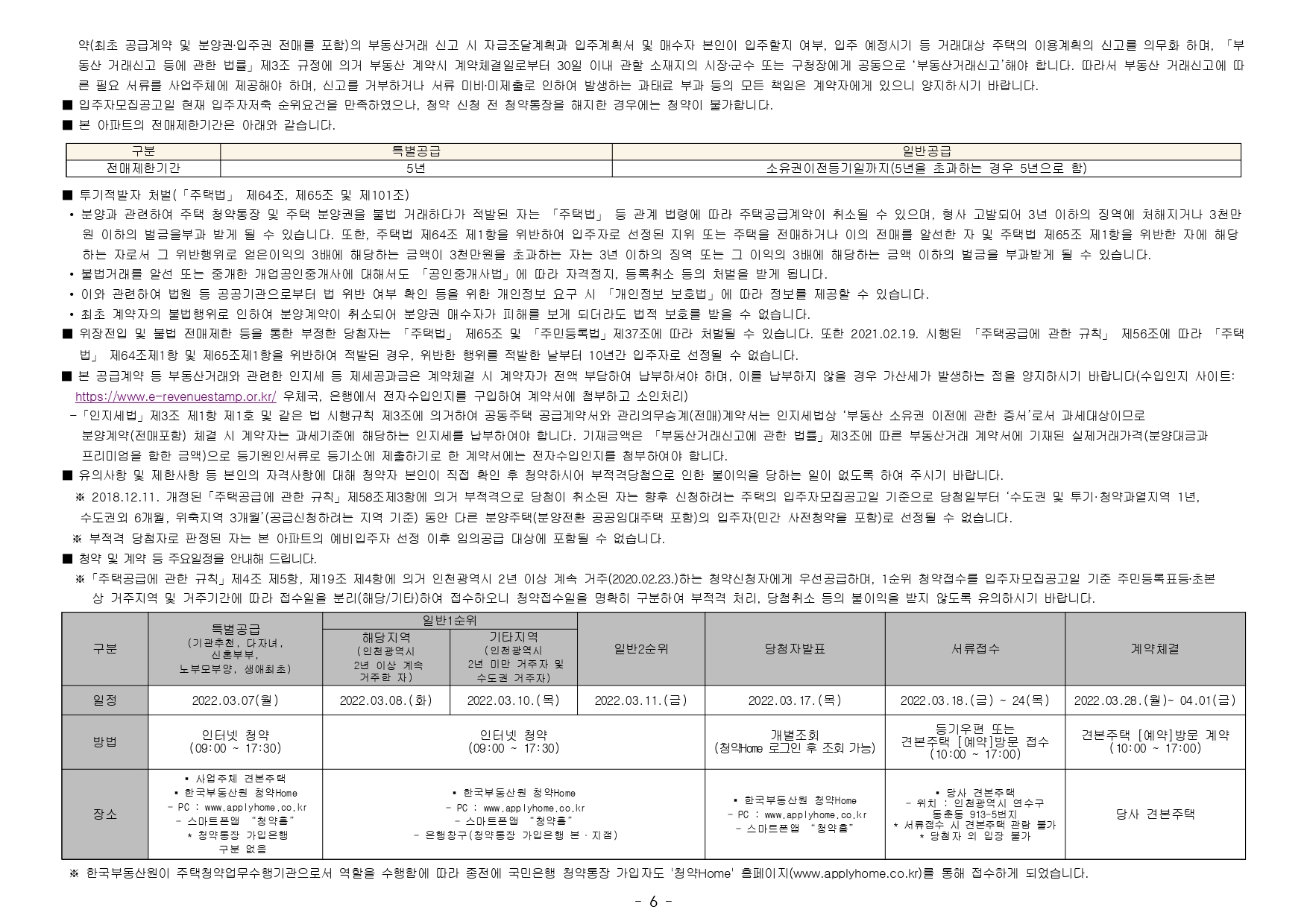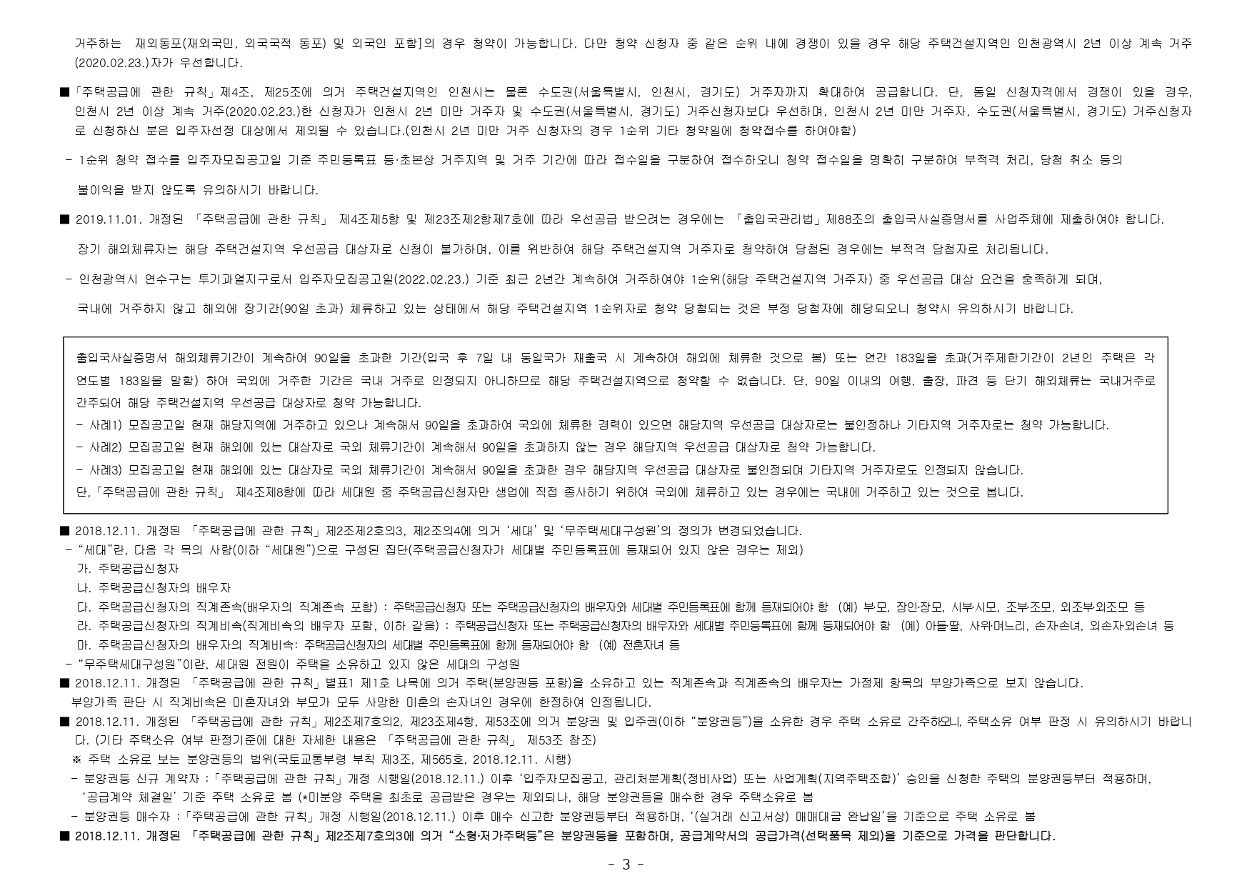 ■ 해당 주택건설지역(인천광역시 연수구)은 「주택법」 제63조 및 제63조의2에 의한 투기과열지구 및 청약과열지역으로서, 본 아파트는 「주택공급에 관한 규칙」에 따라 1주택 이상 소유한 세대에 속한 분은 1순 위 가점제 청약이 불가하며, 2주택 이상 소유한 세대에 속한 분은 1순위 자격에서 제외됩니다.