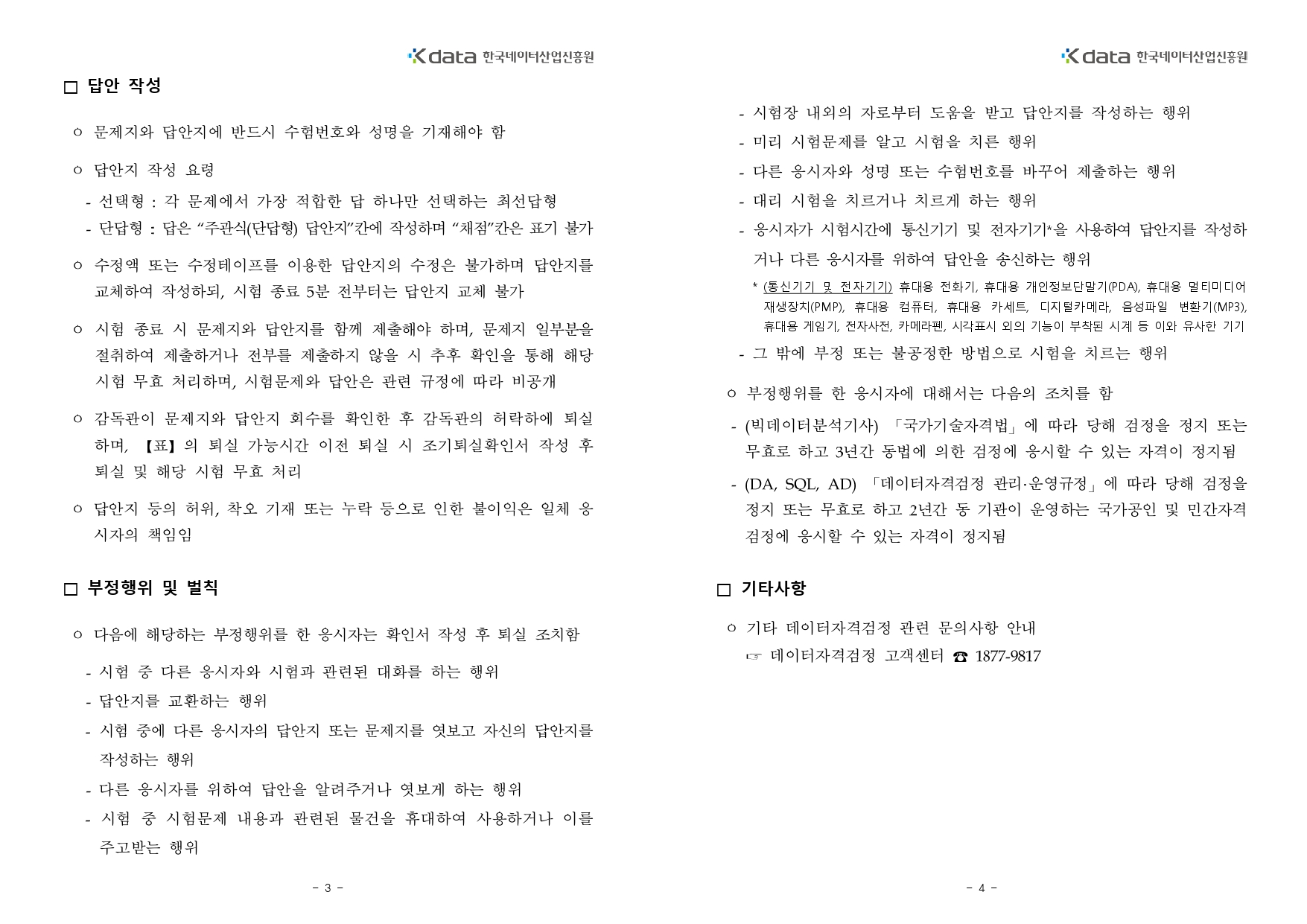2022년 데이터자격검정 응시자 유의 사항입니다.