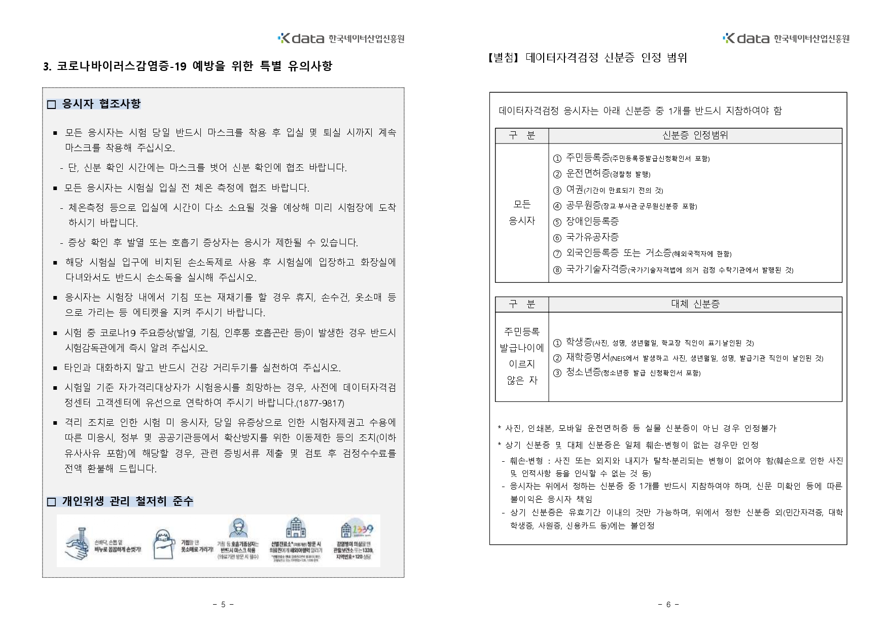 반드시 규정된 신분증을 지참하여 시험에 응시하시기 바랍니다.