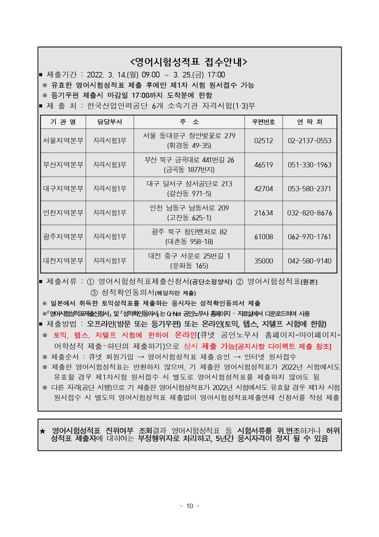 | 2022년 기사 제1회 필기시험(기사·서비스, 산업기사) 수험자 안내 (0) | 2022.03.01 |