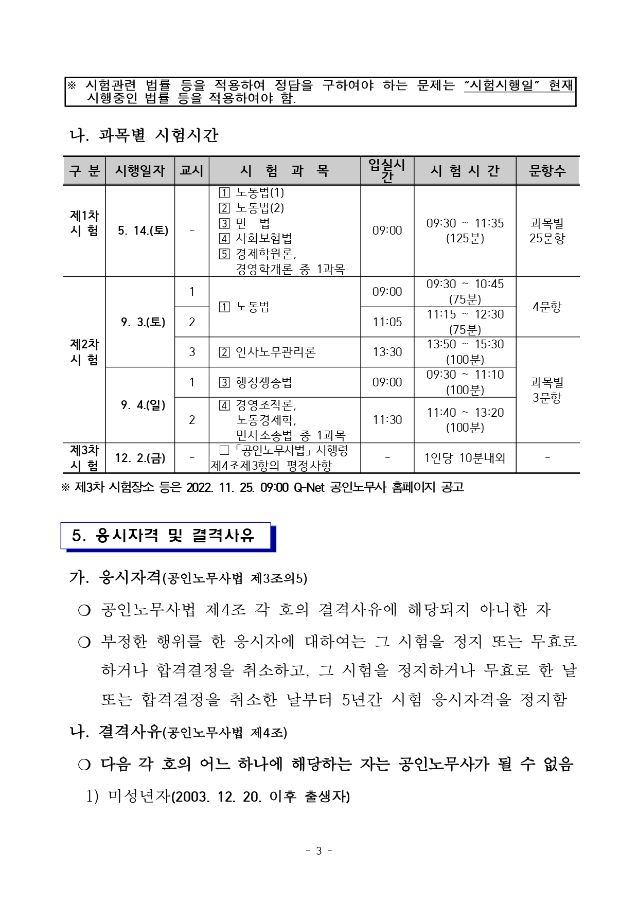 공인노무사법 시행령 제10조 및 제26조에 따라 2022년도 제31회 공인노무사 국가자격시험 시행계획을 다음과 같이 공고합니다.