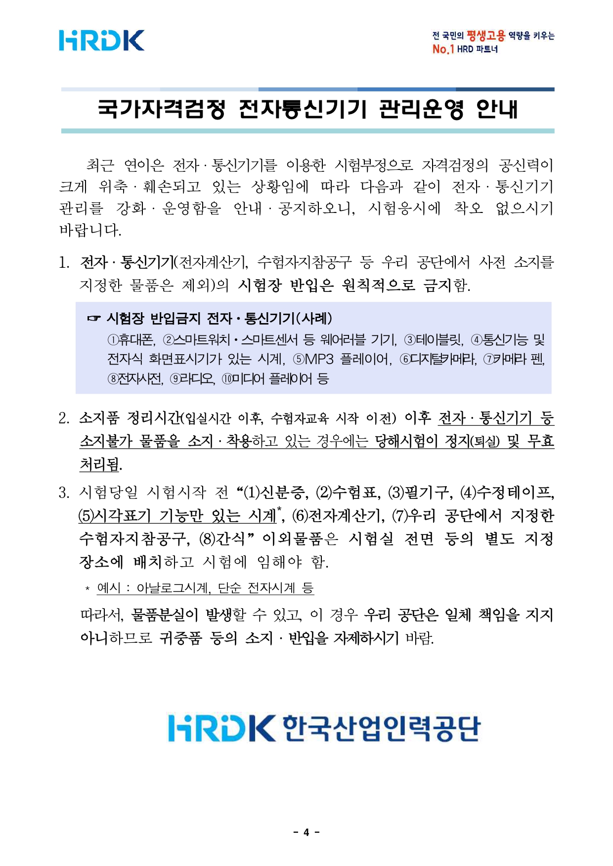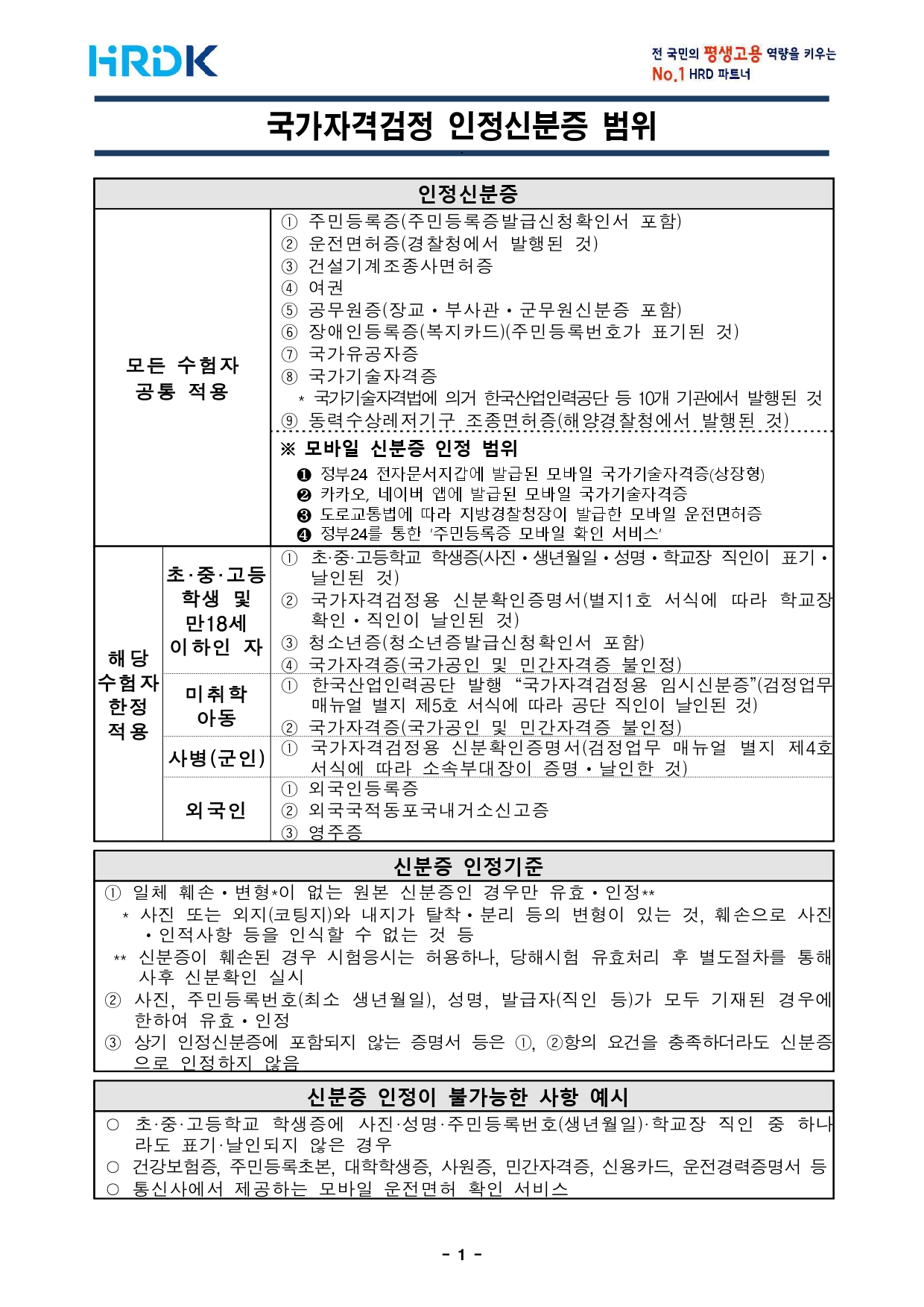 기사 제1회 필기시험(기사·서비스, 산업기사) 수험자 안내입니다.