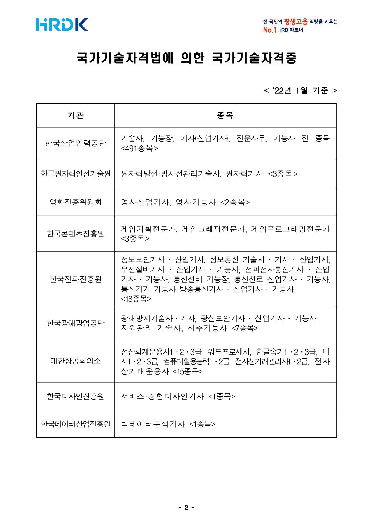 2022년 기사 제1회 필기시험(기사·서비스, 산업기사) 수험자 안내