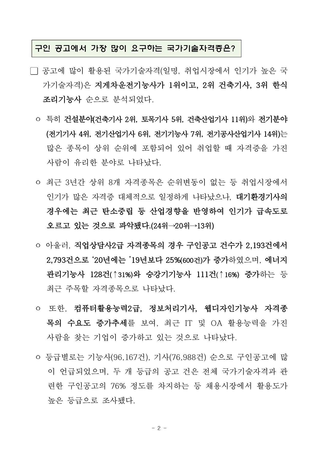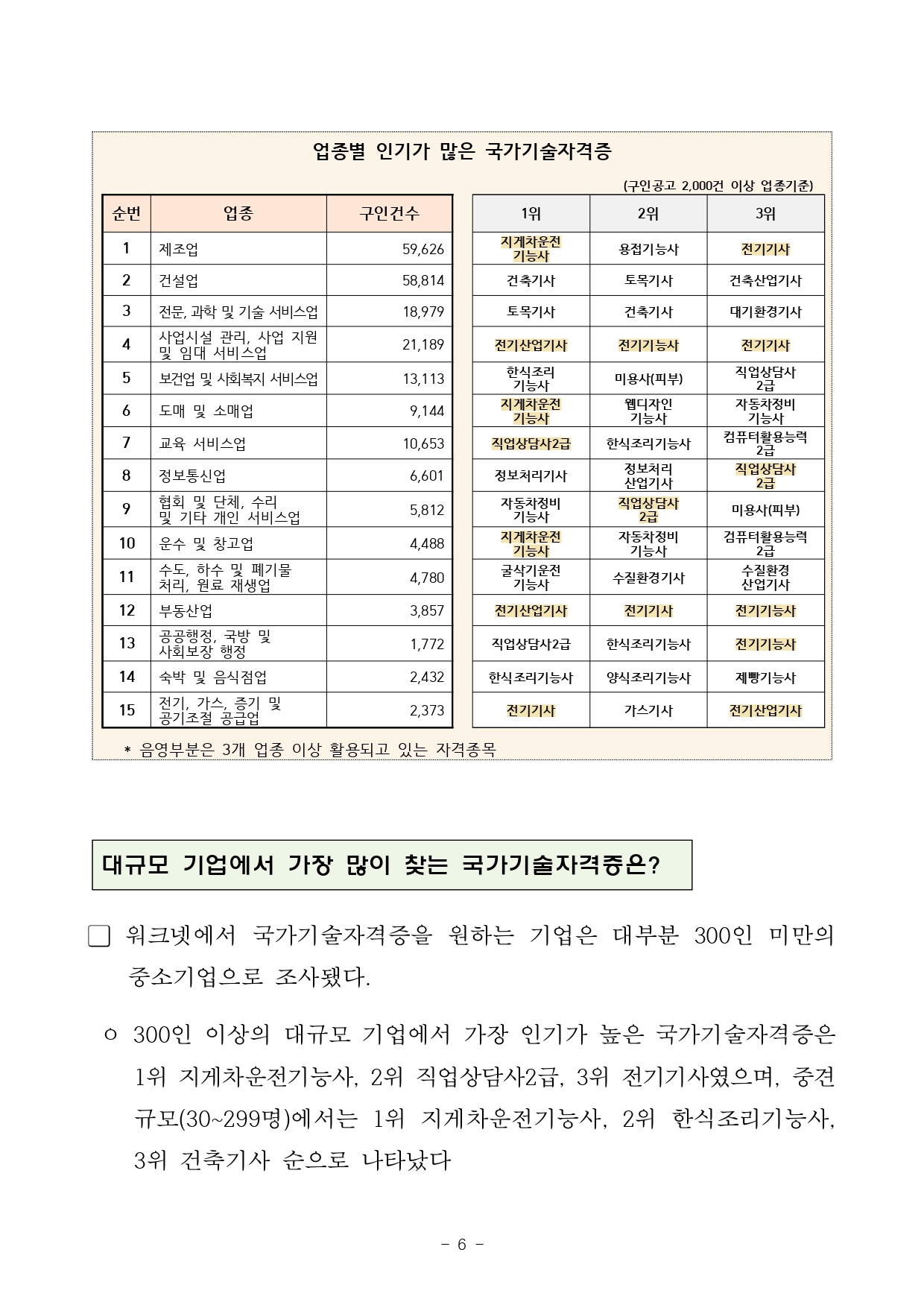 한국산업인력공단(이사장 어수봉)이 공개한 국가기술자격 종목별 채용시장 활용현황에 대한 조사결과입니다.