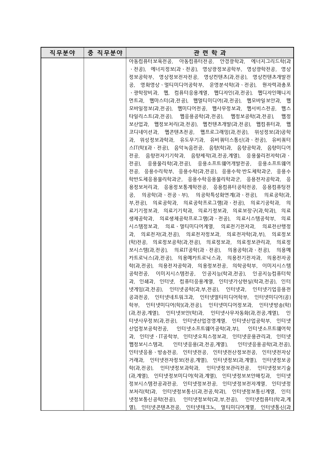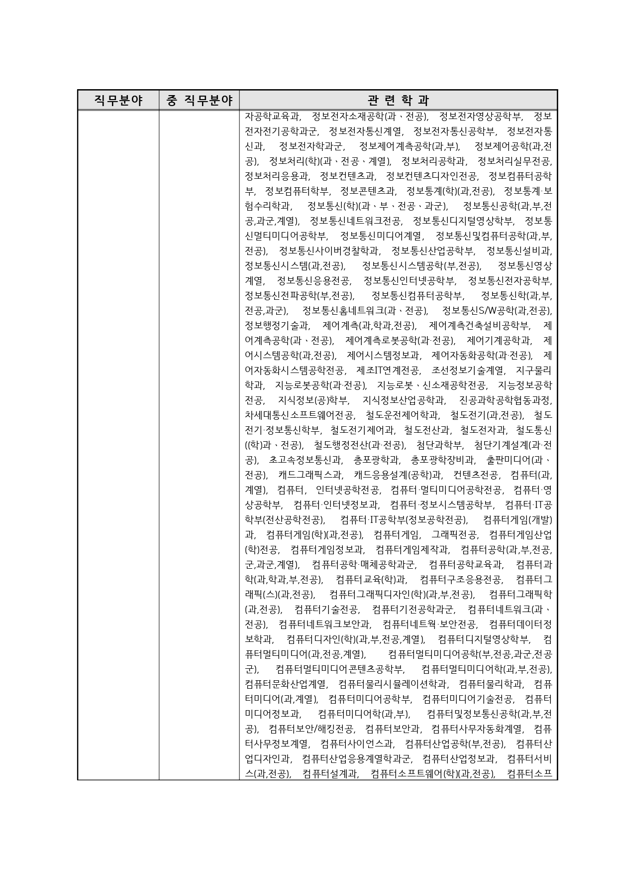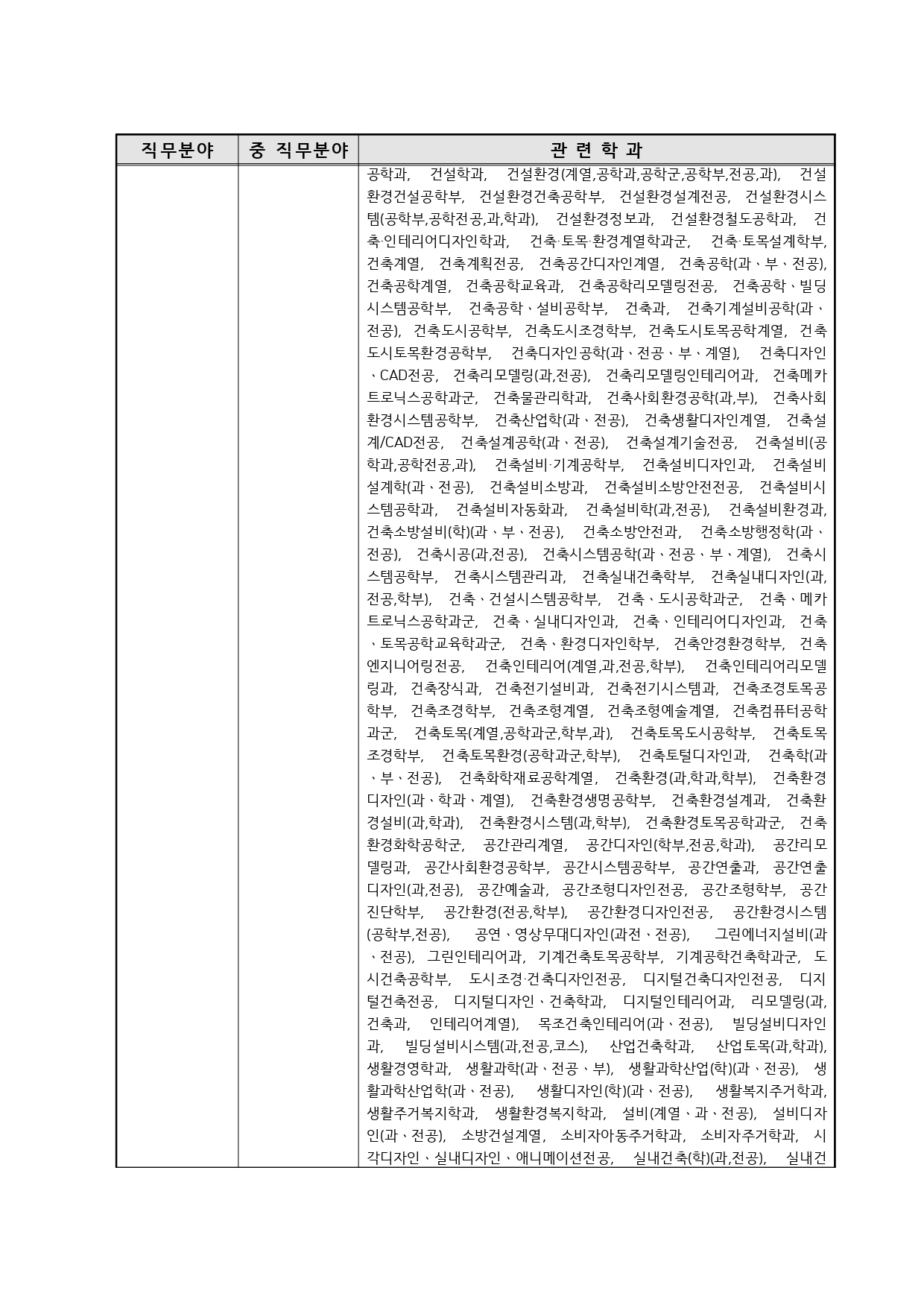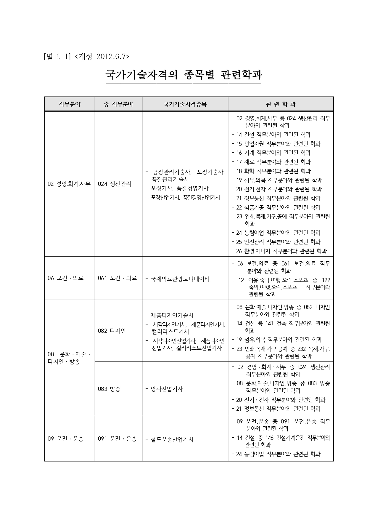 국가기술자격의 종목별 관련학과 안내.