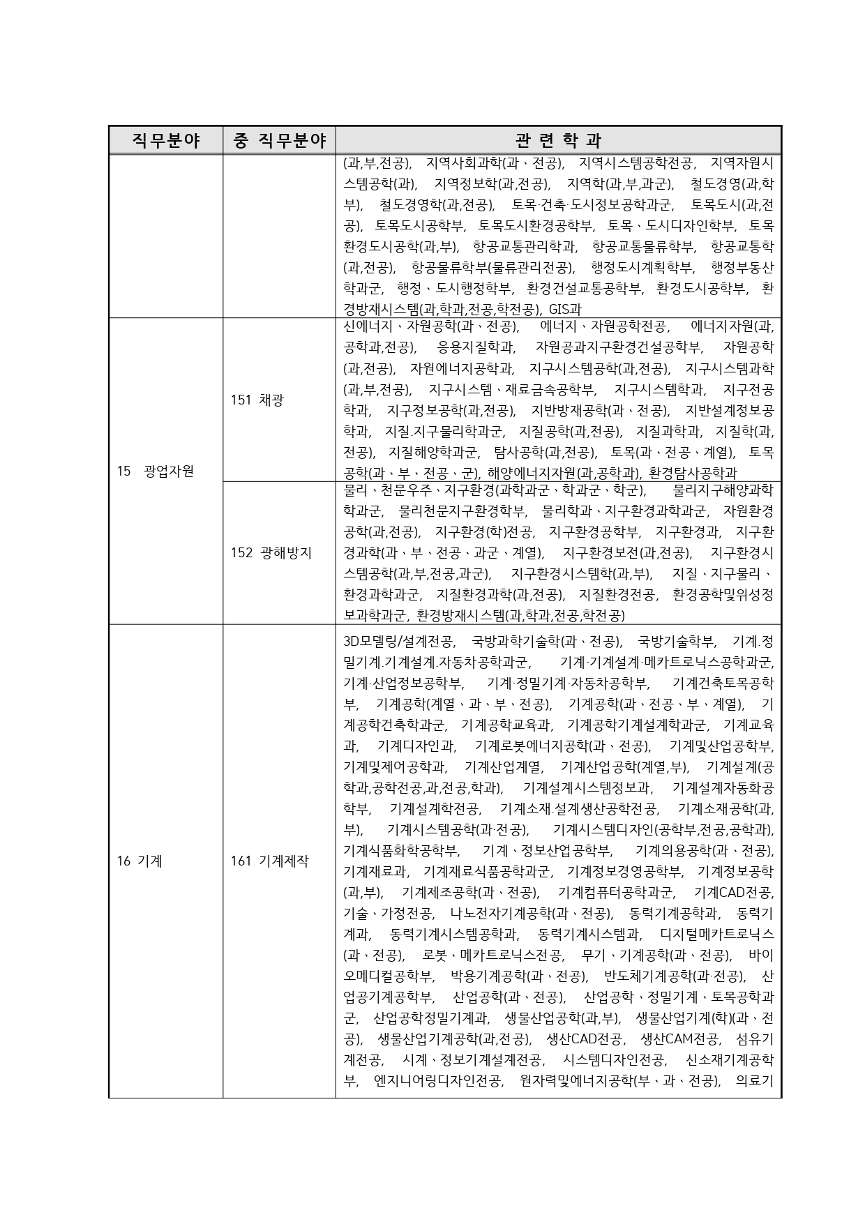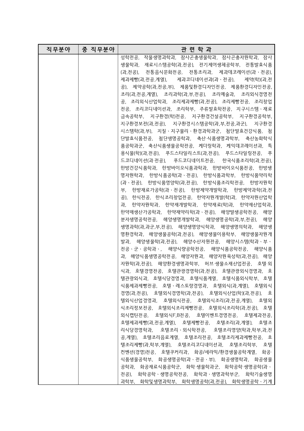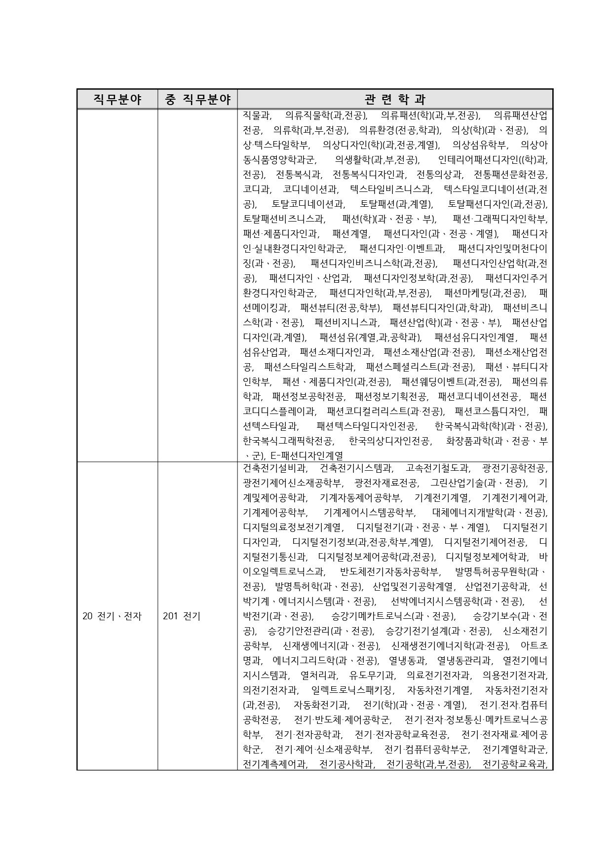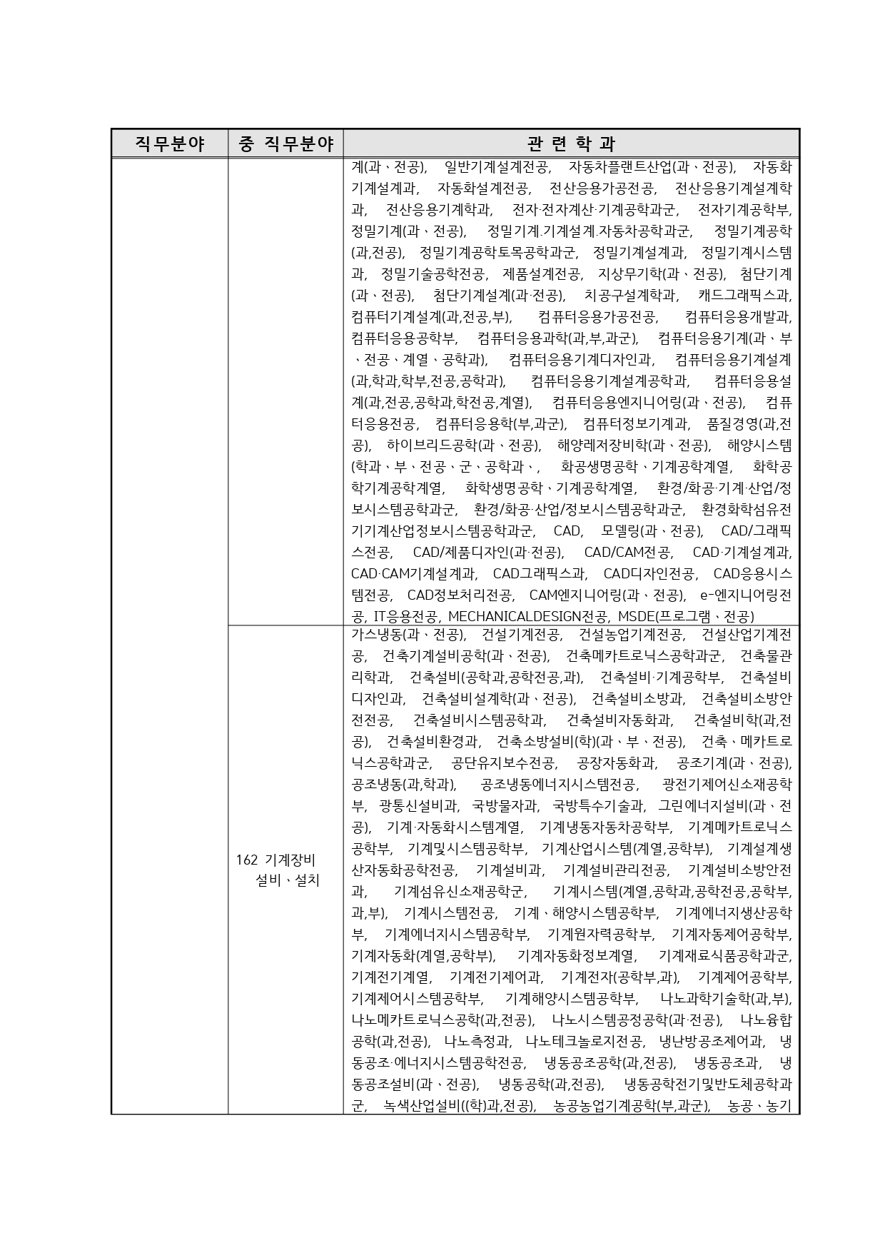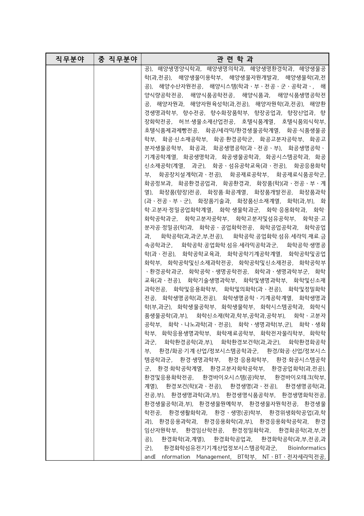 국가기술자격의 종목별 관련학과 안내.