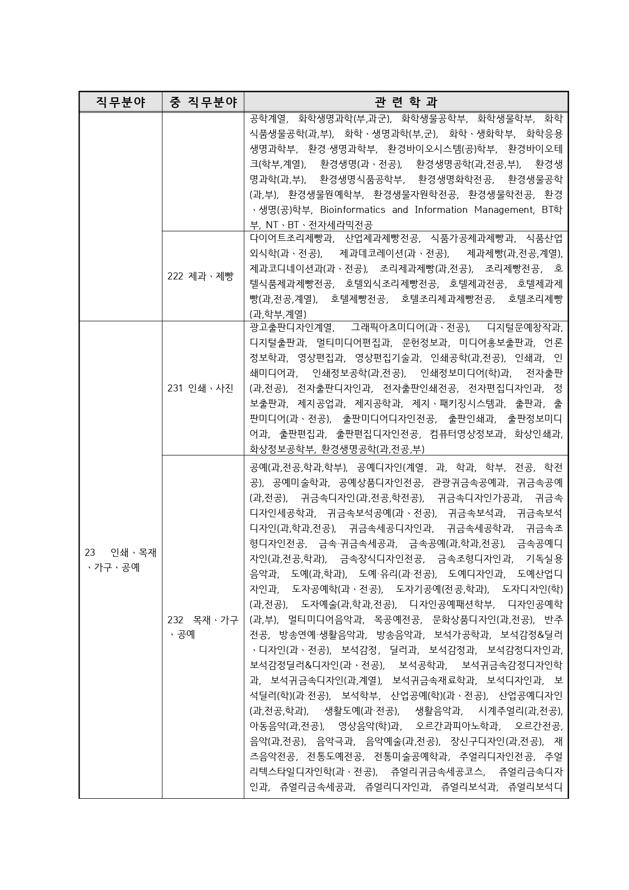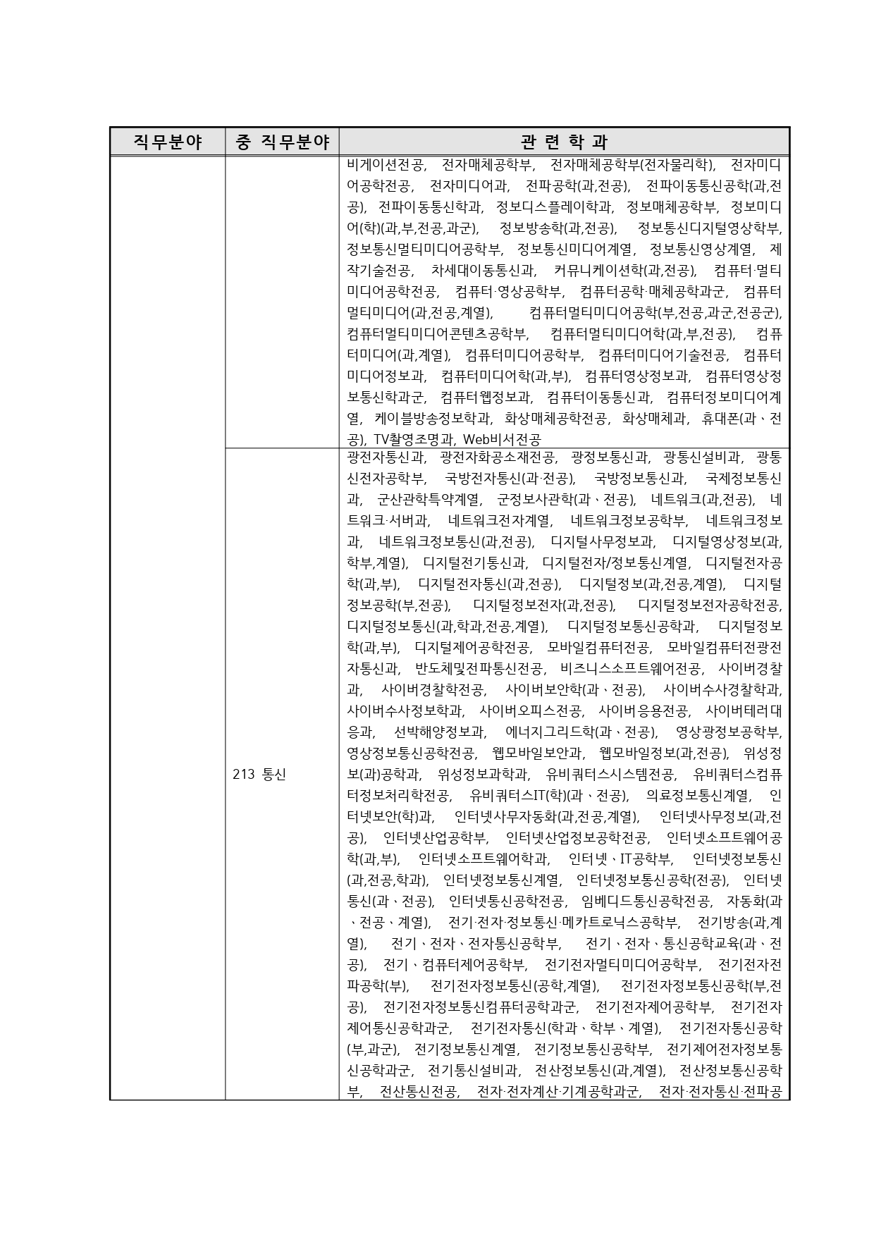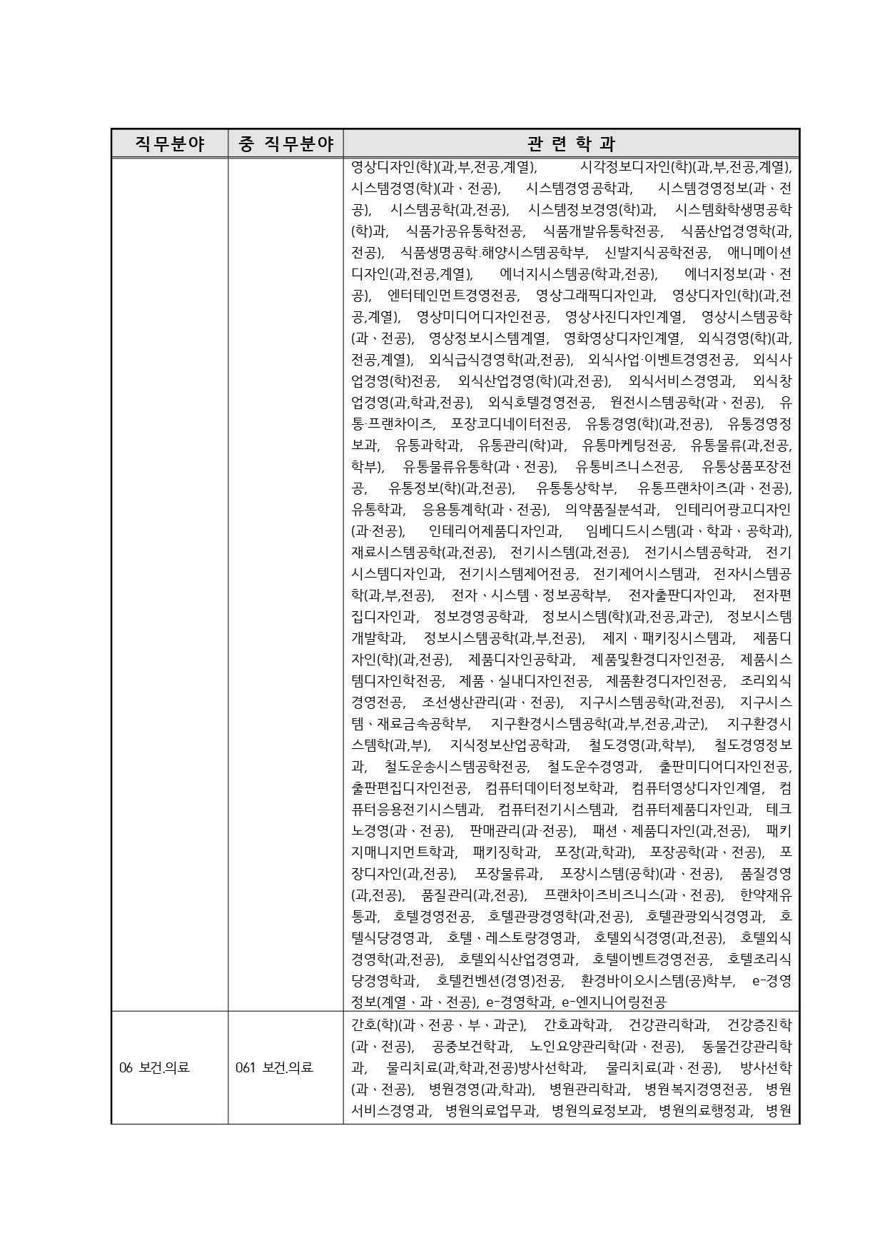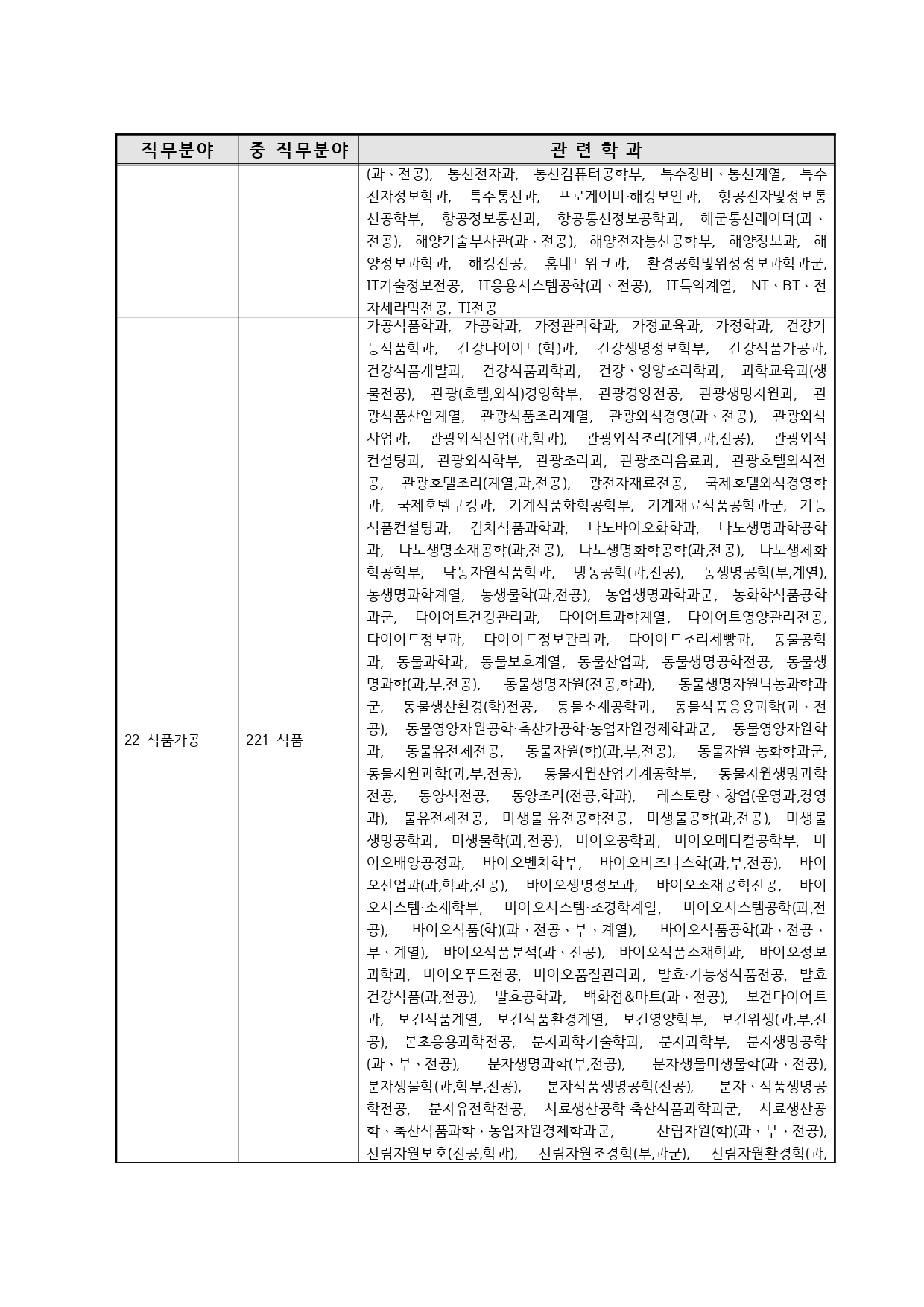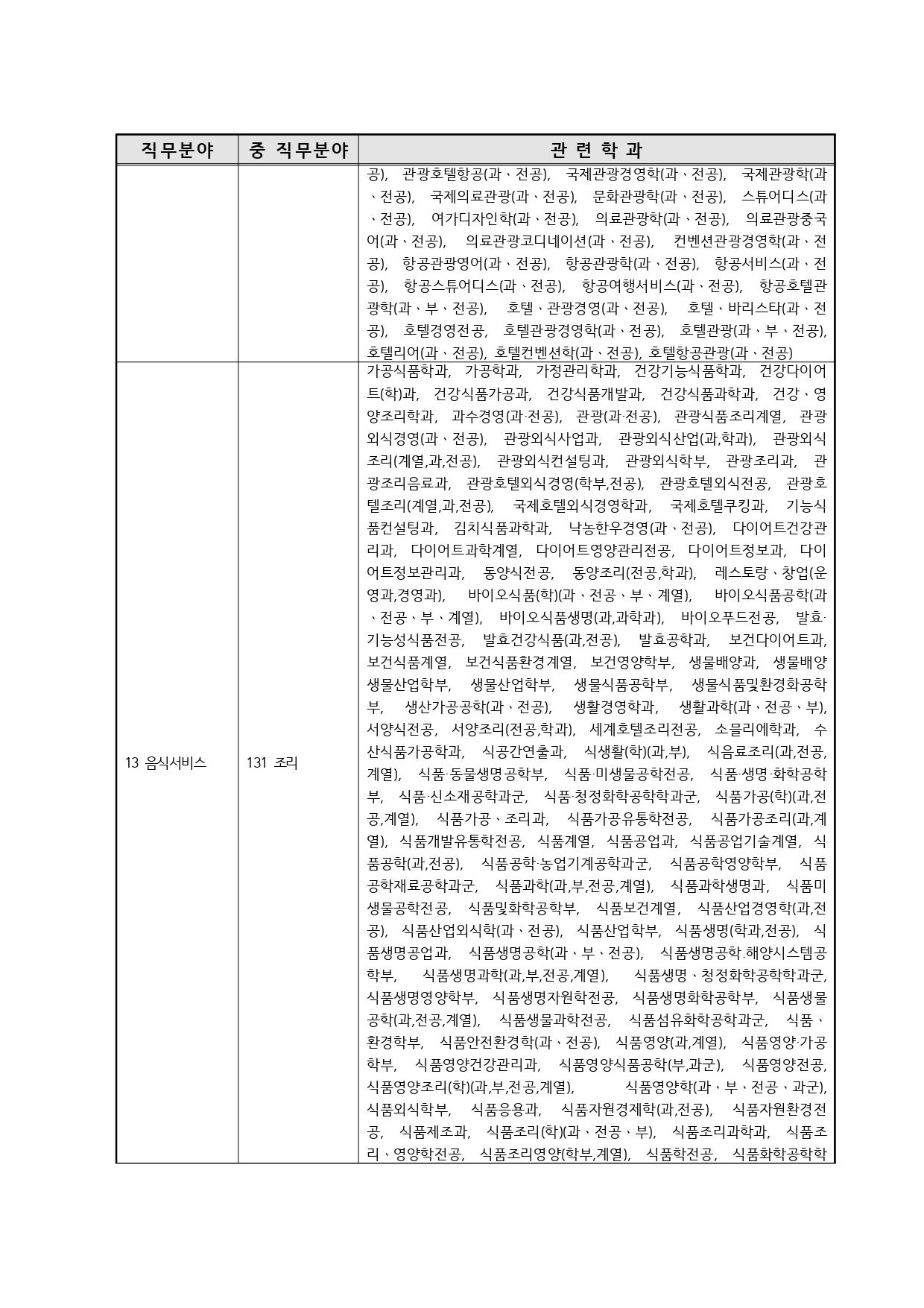 국가기술자격의 종목별 관련학과 안내.