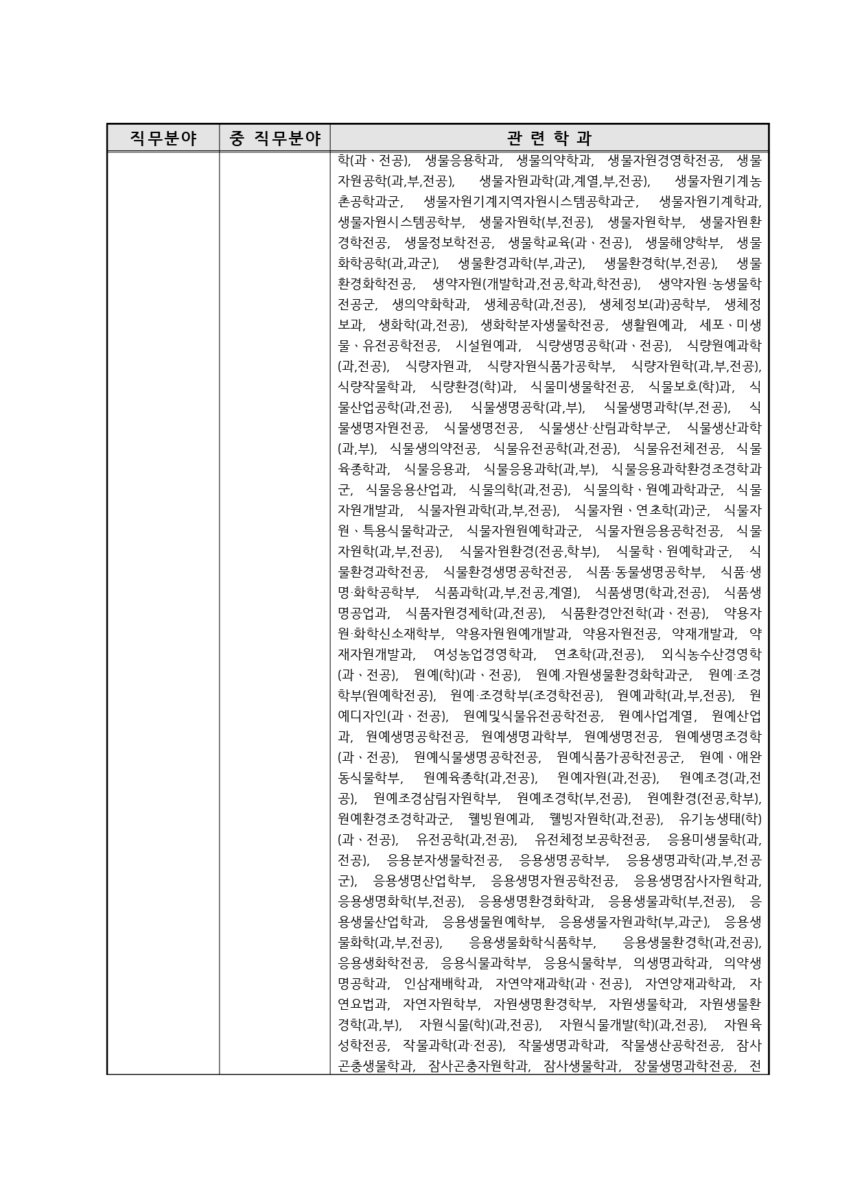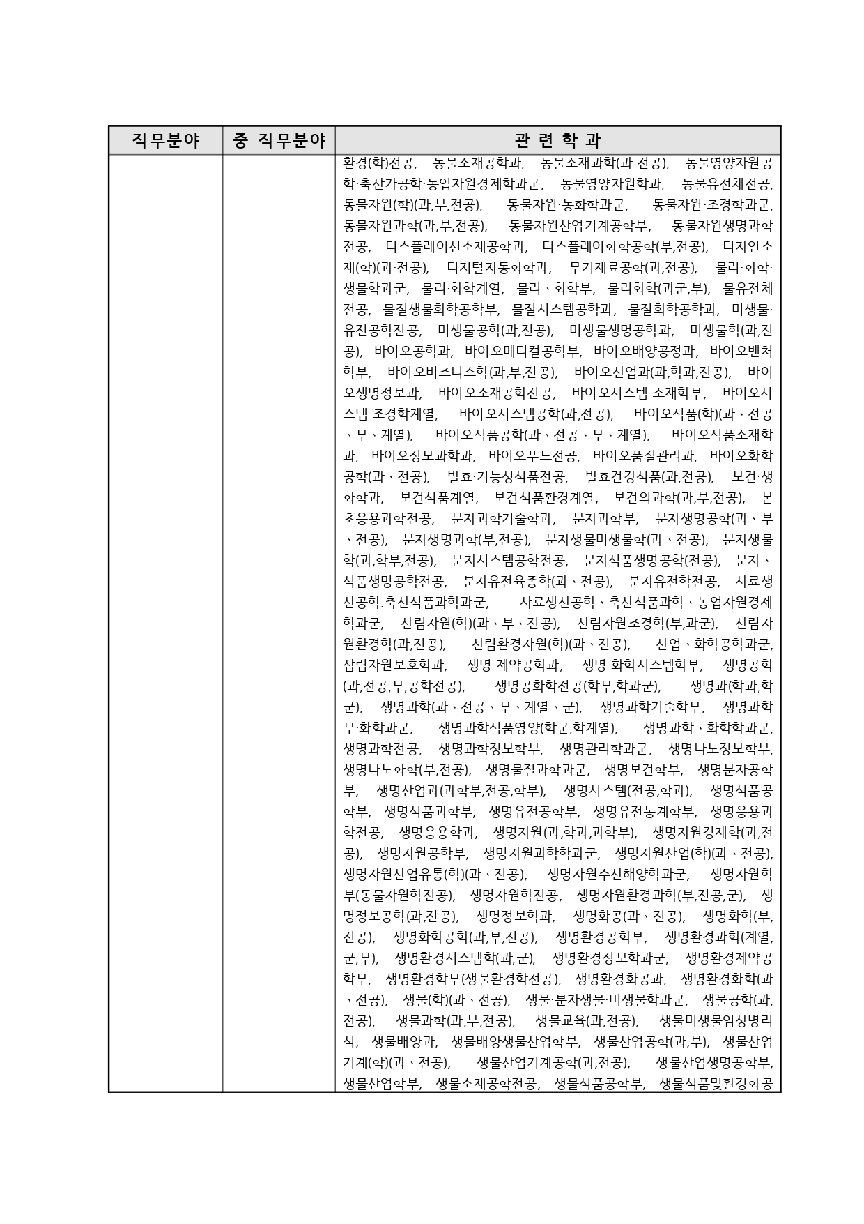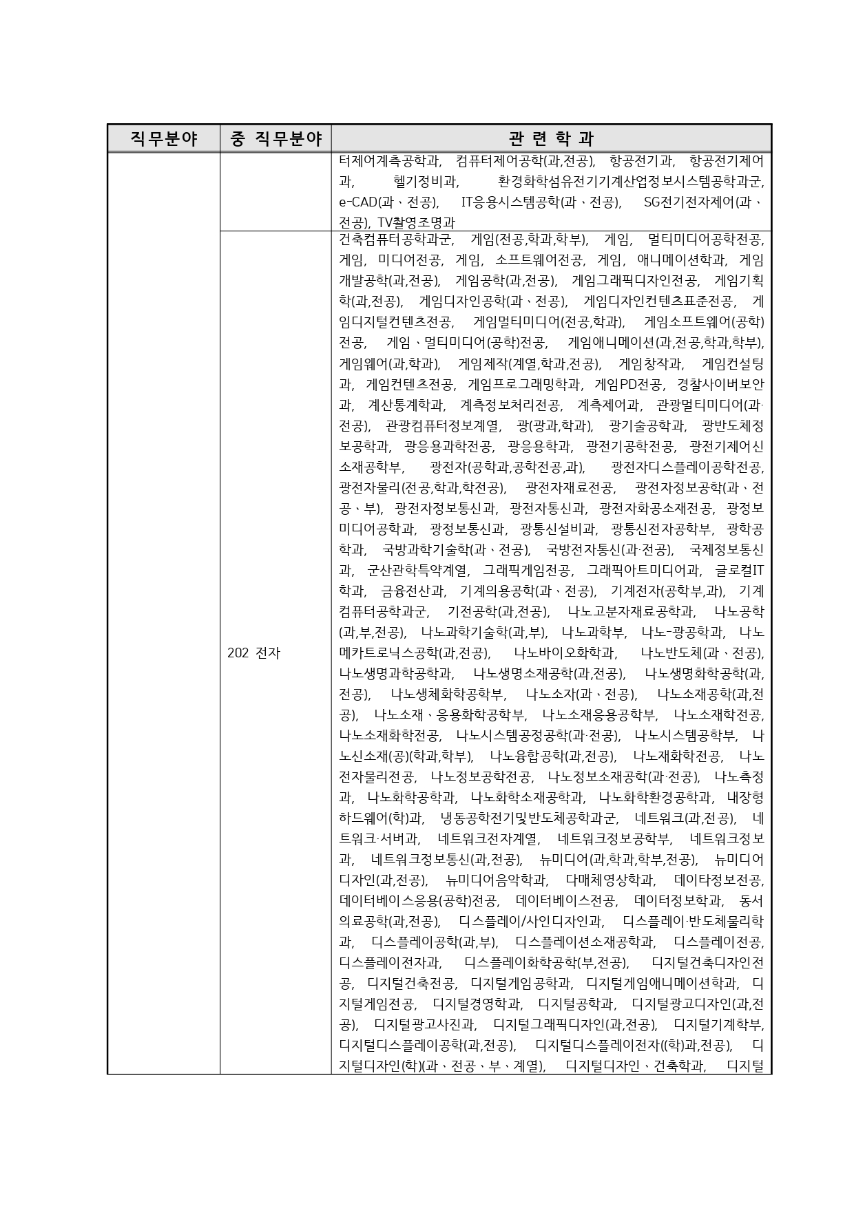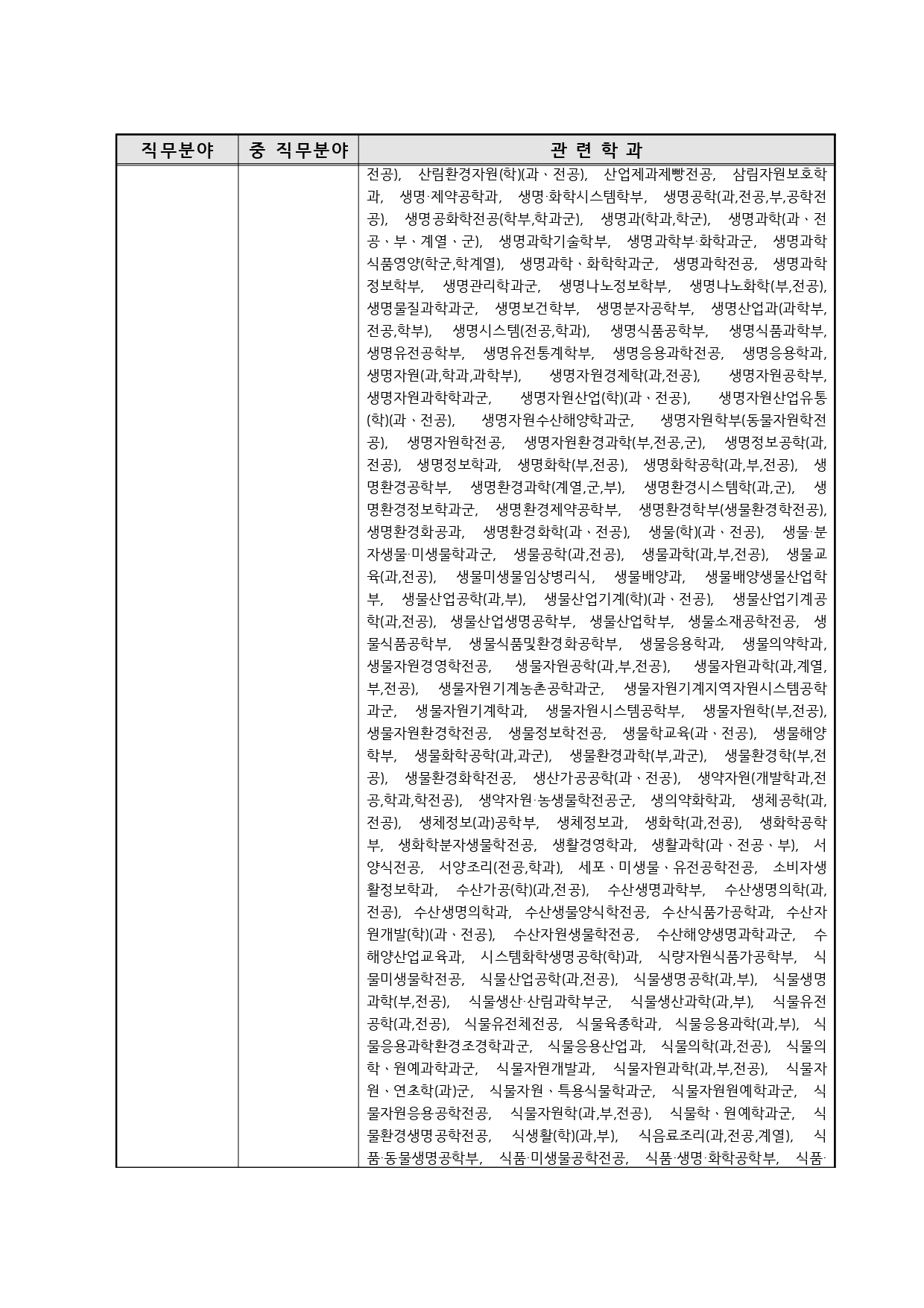 국가기술자격의 종목별 관련학과 안내.