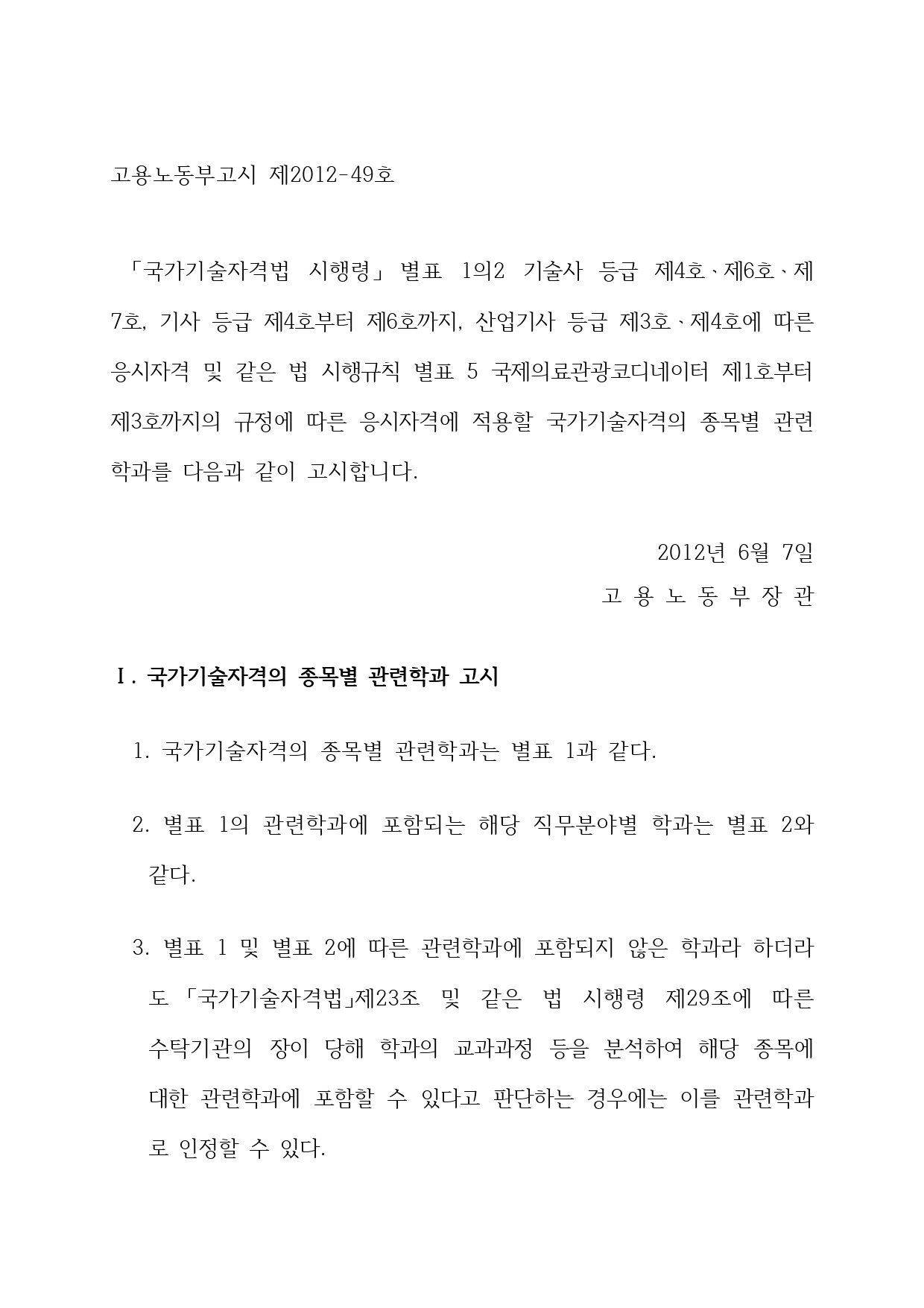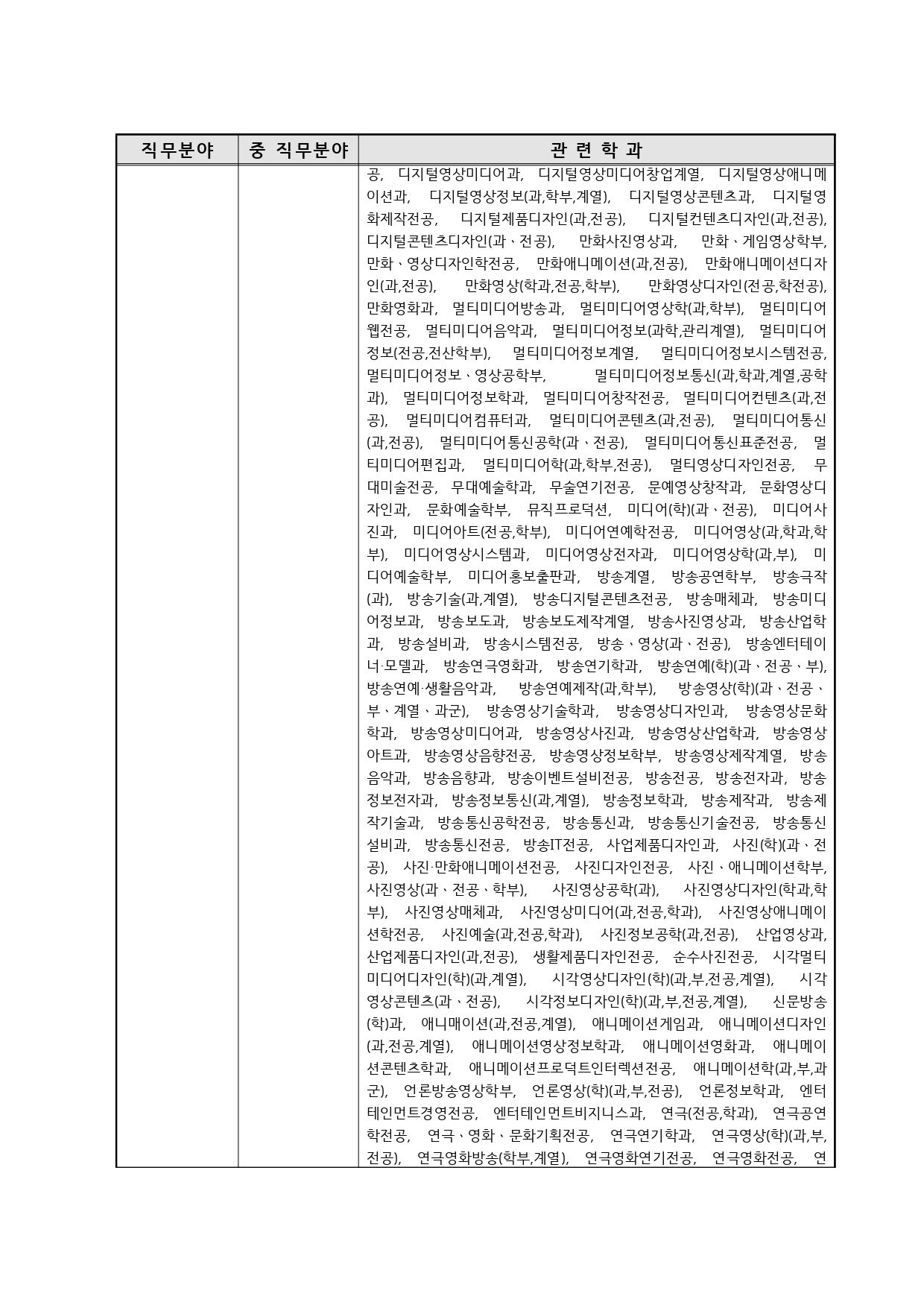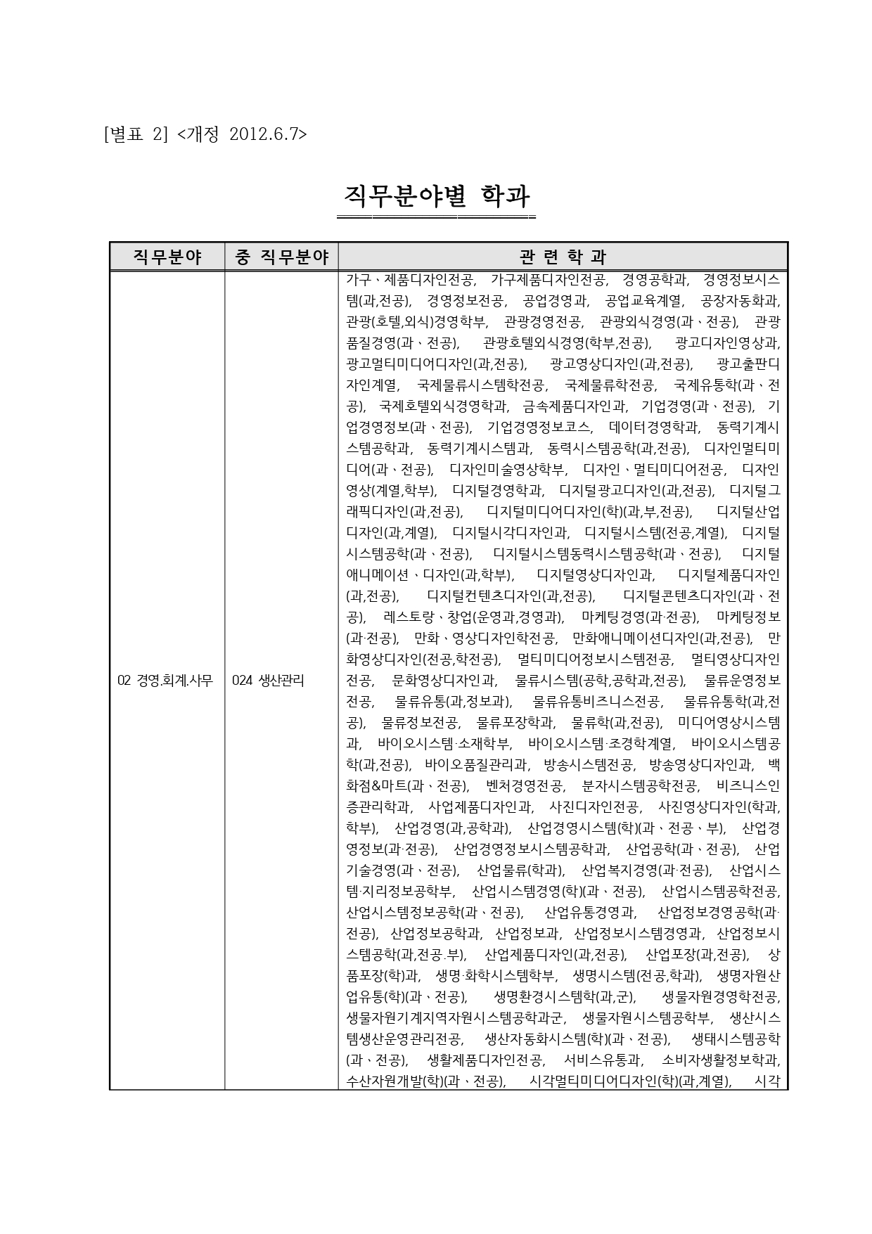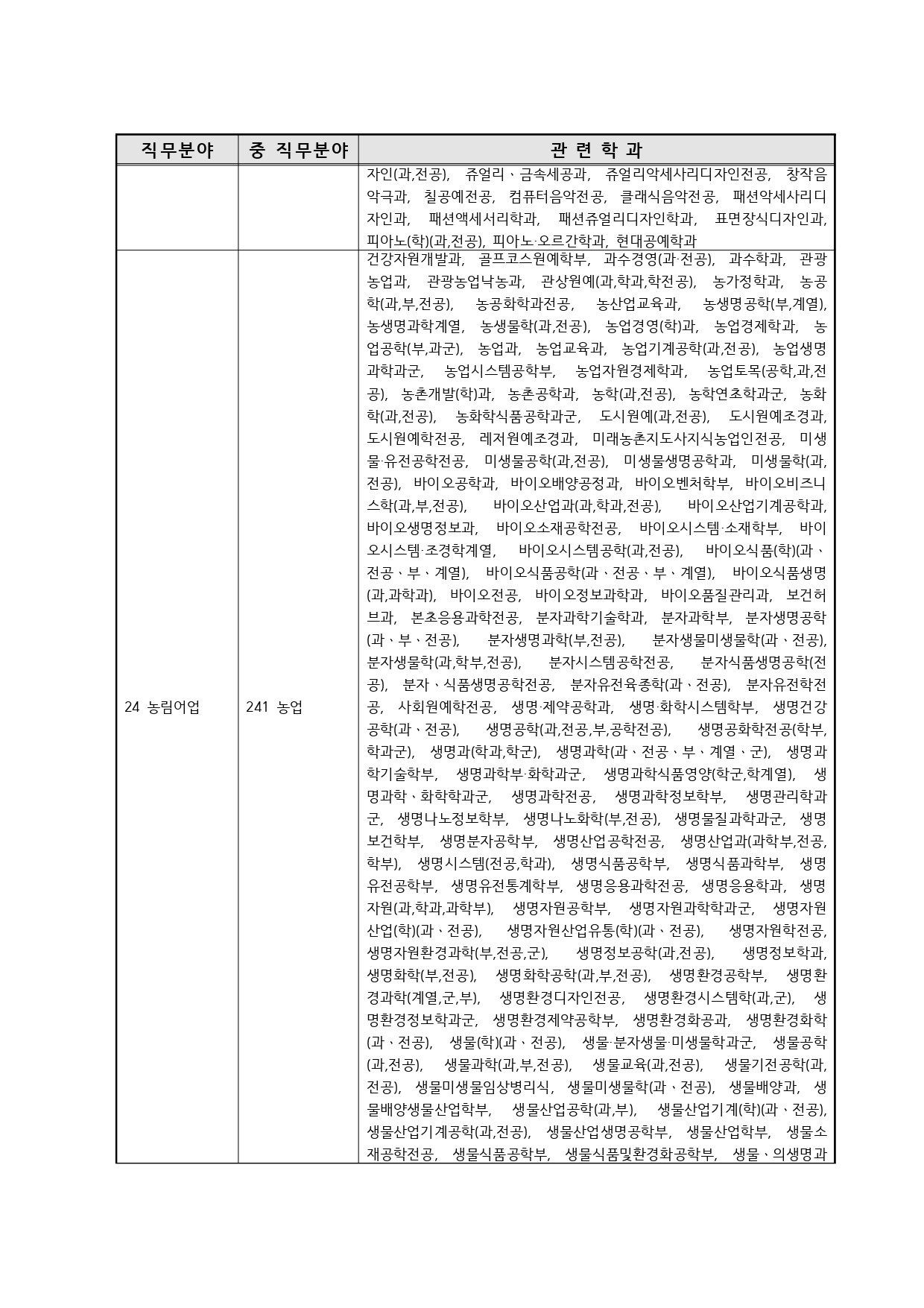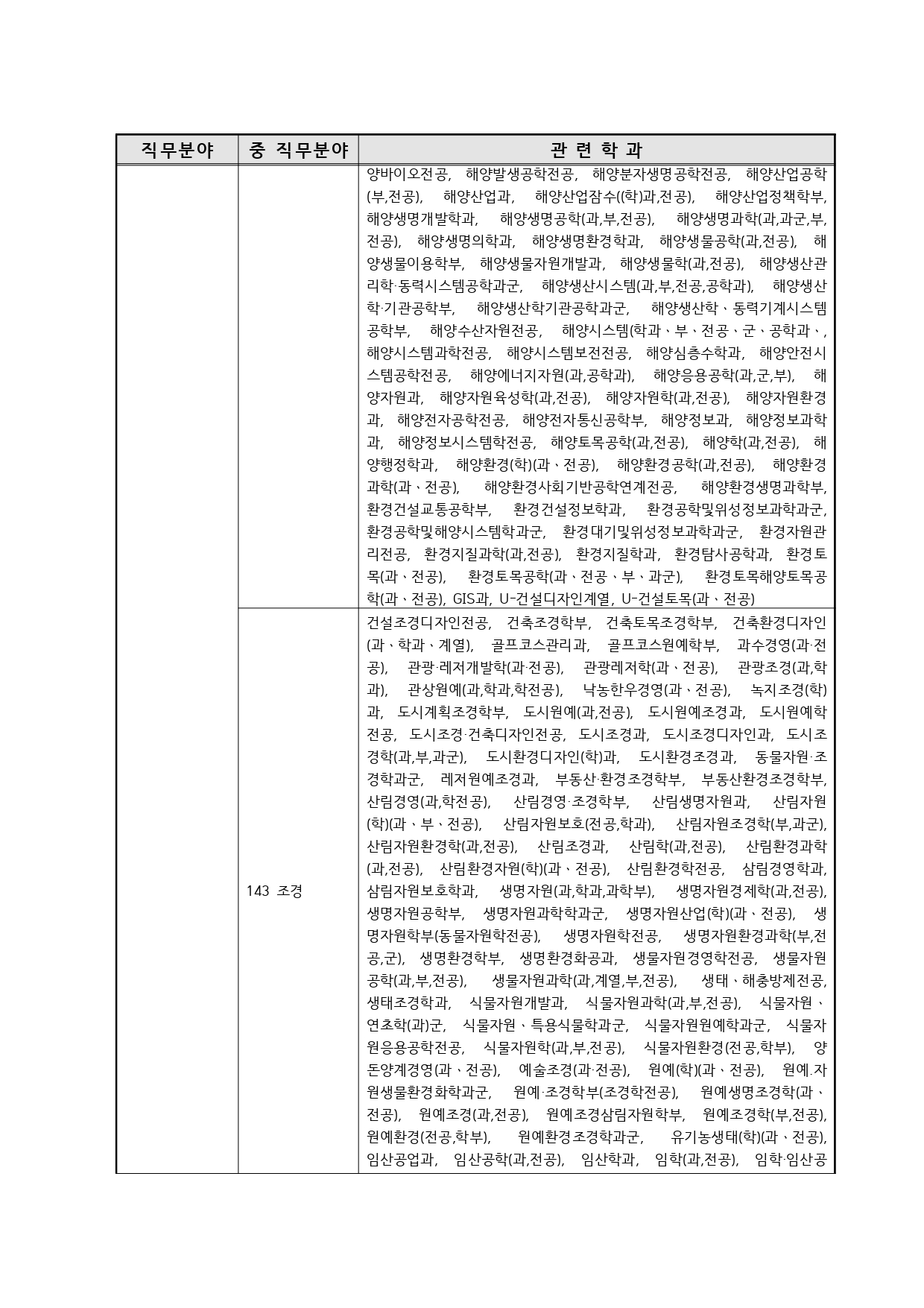 국가기술자격의 종목별 관련학과 안내.