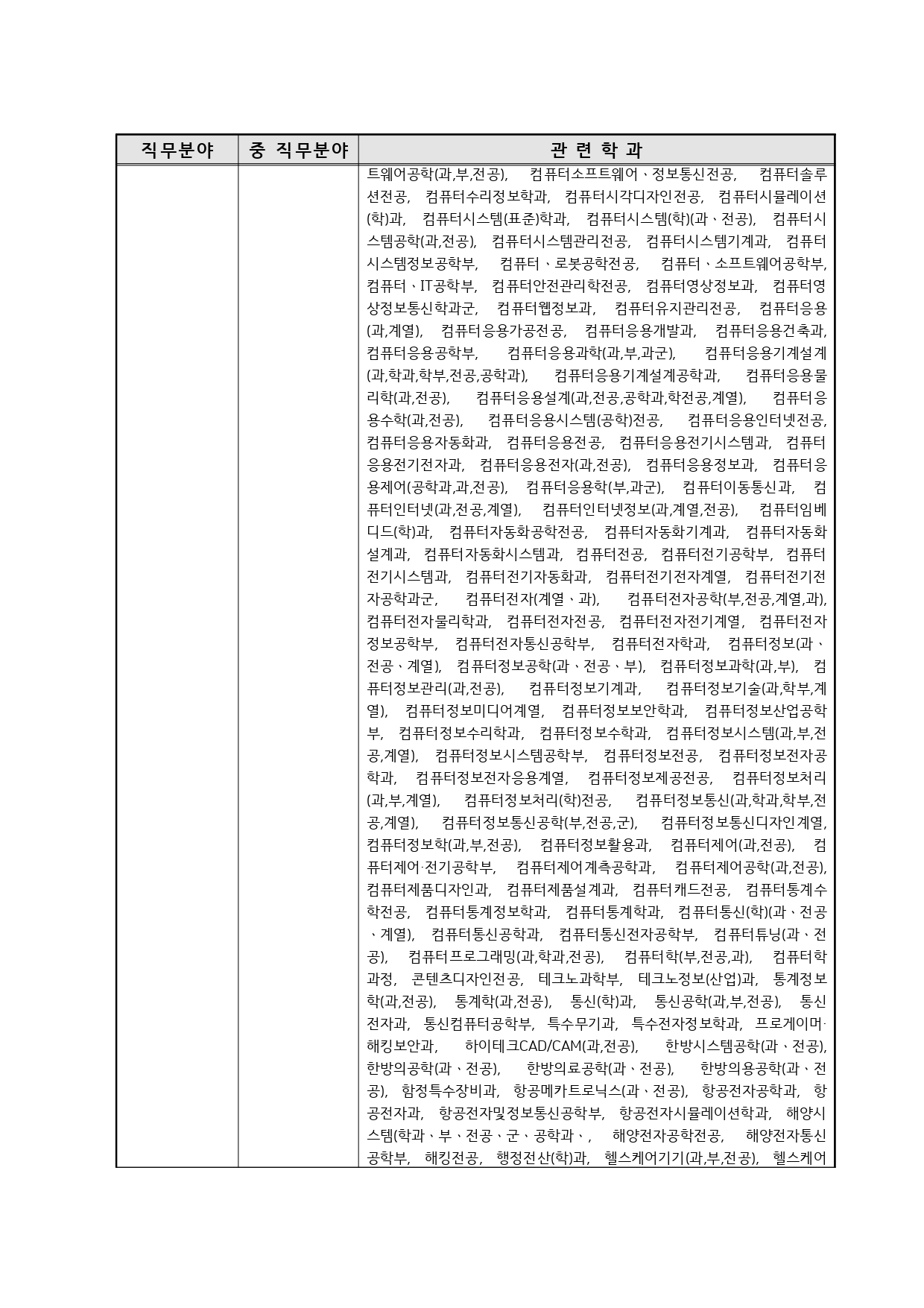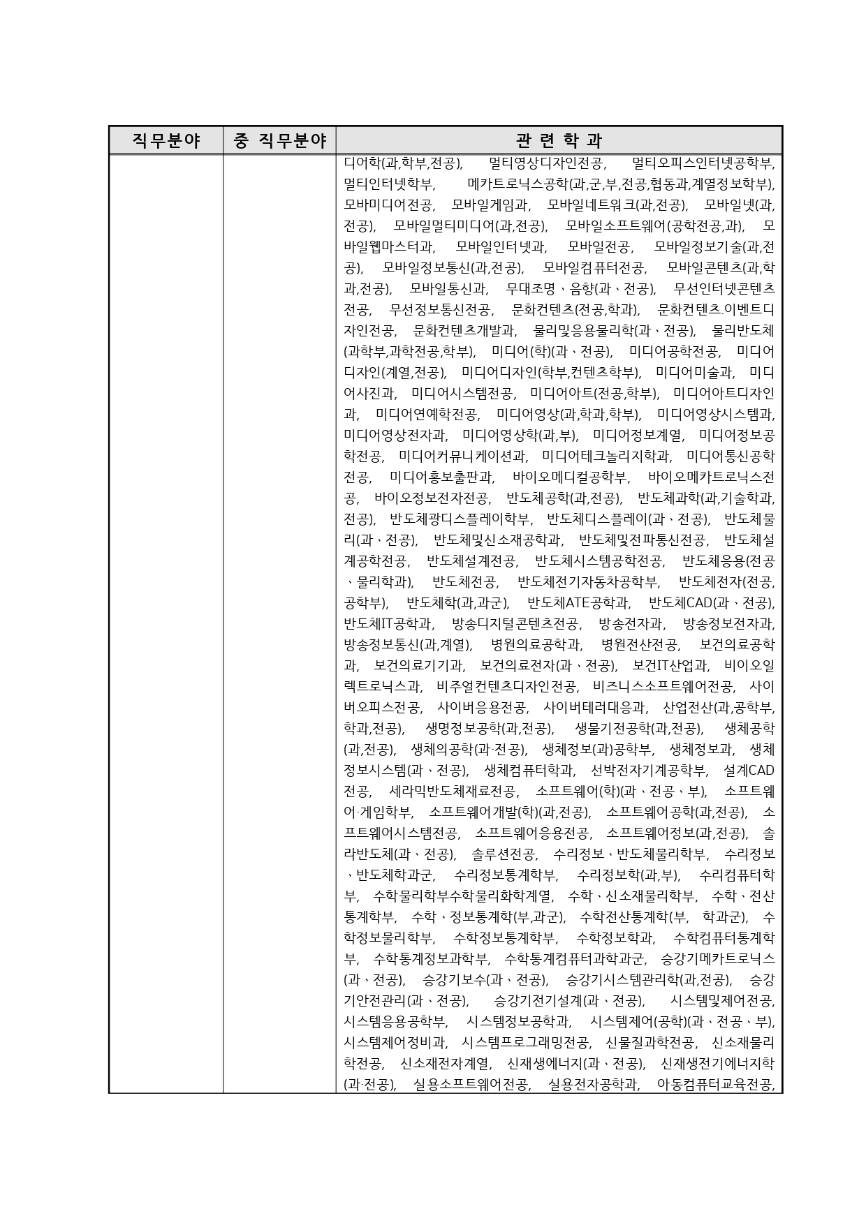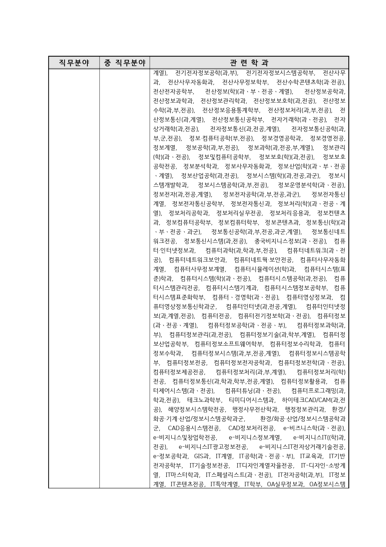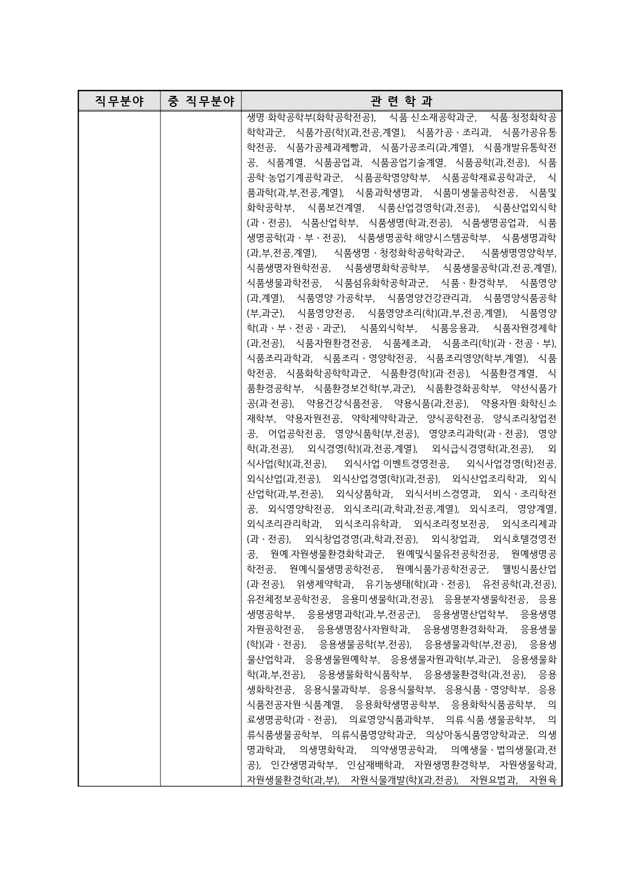 국가기술자격의 종목별 관련학과 안내.