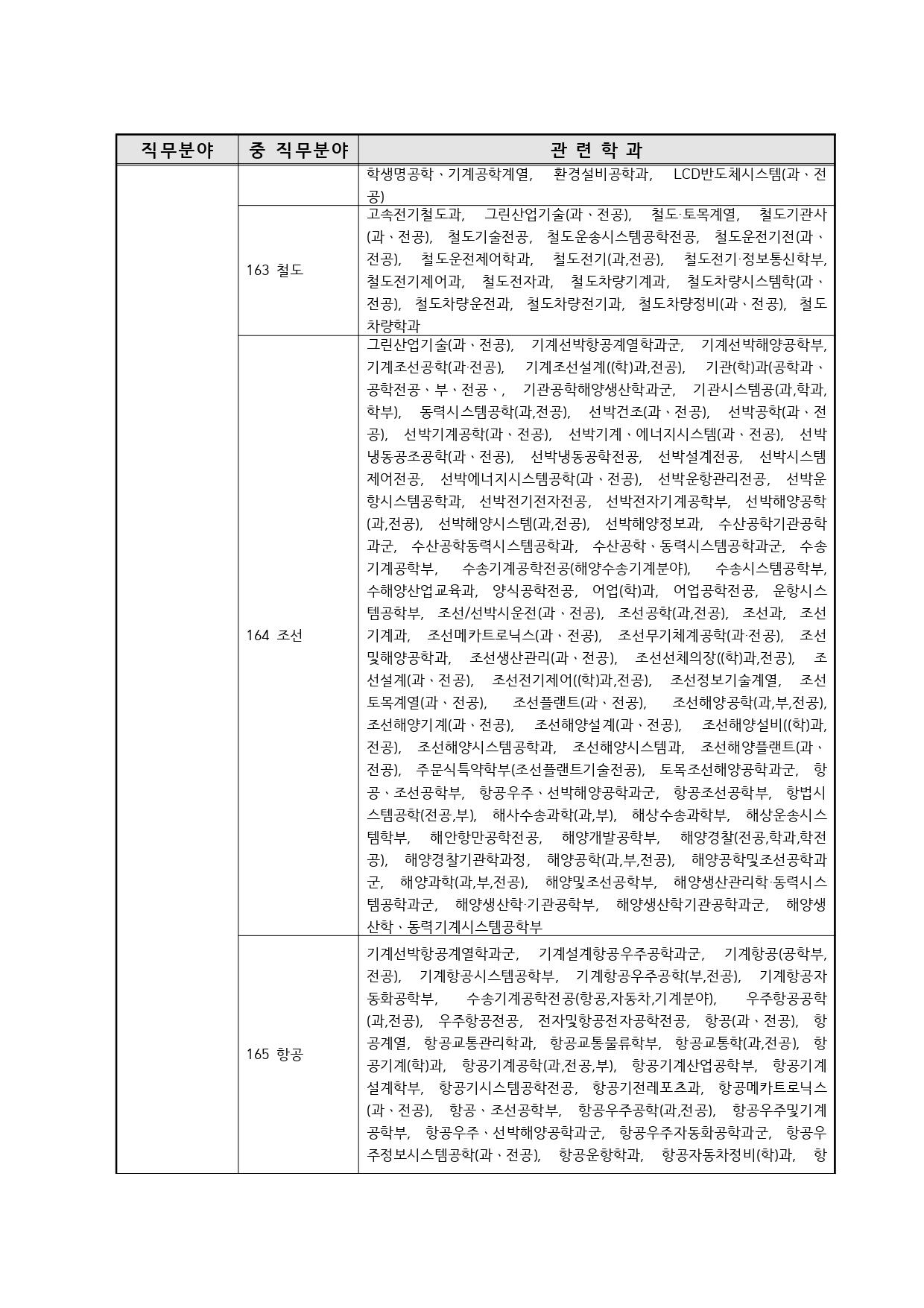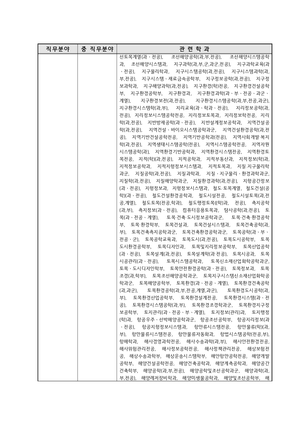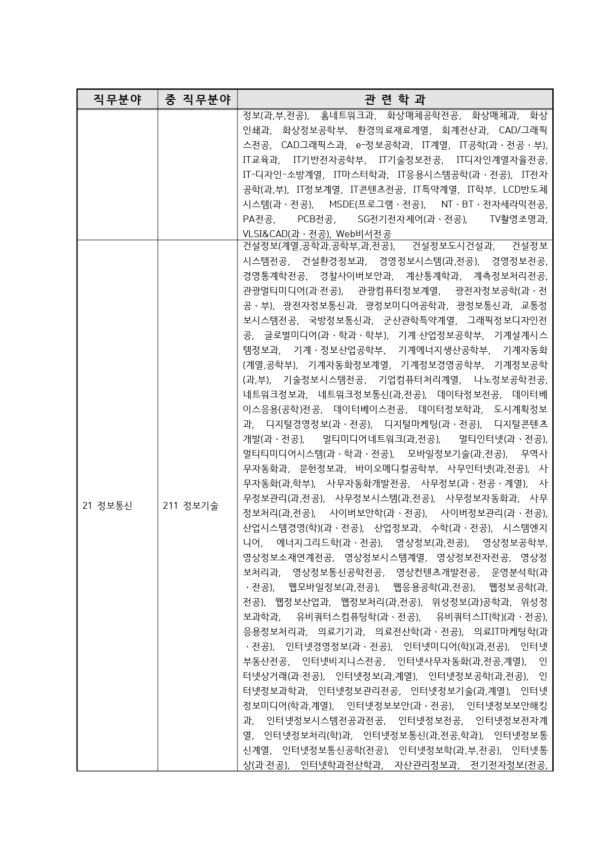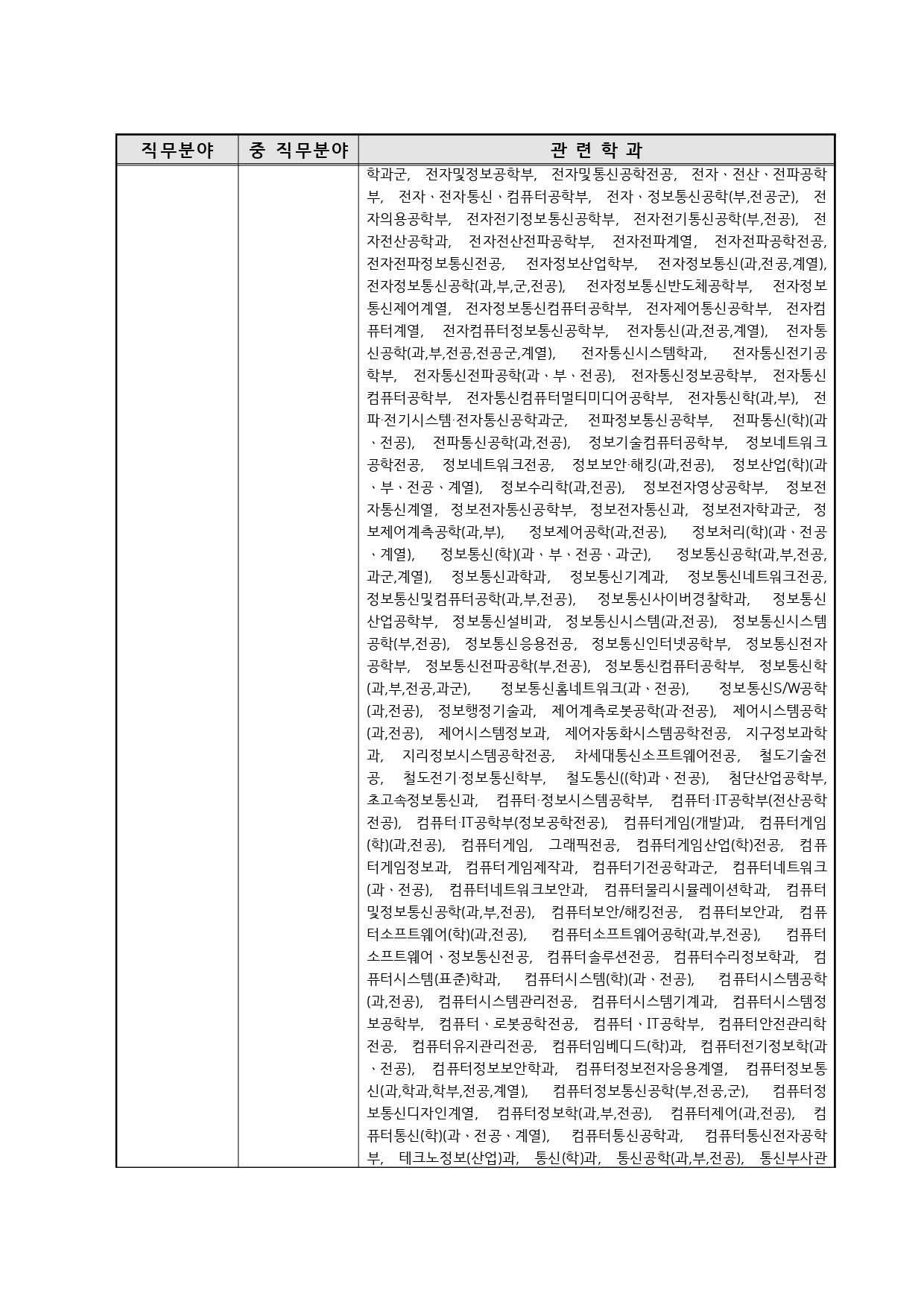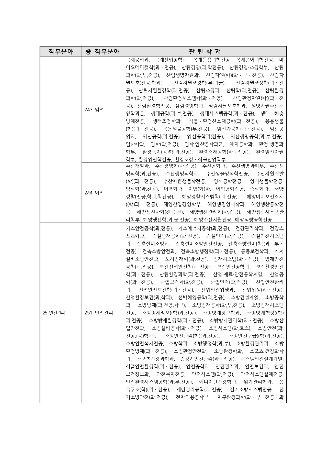 국가기술자격의 종목별 관련학과 안내.